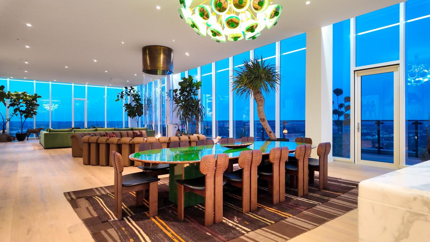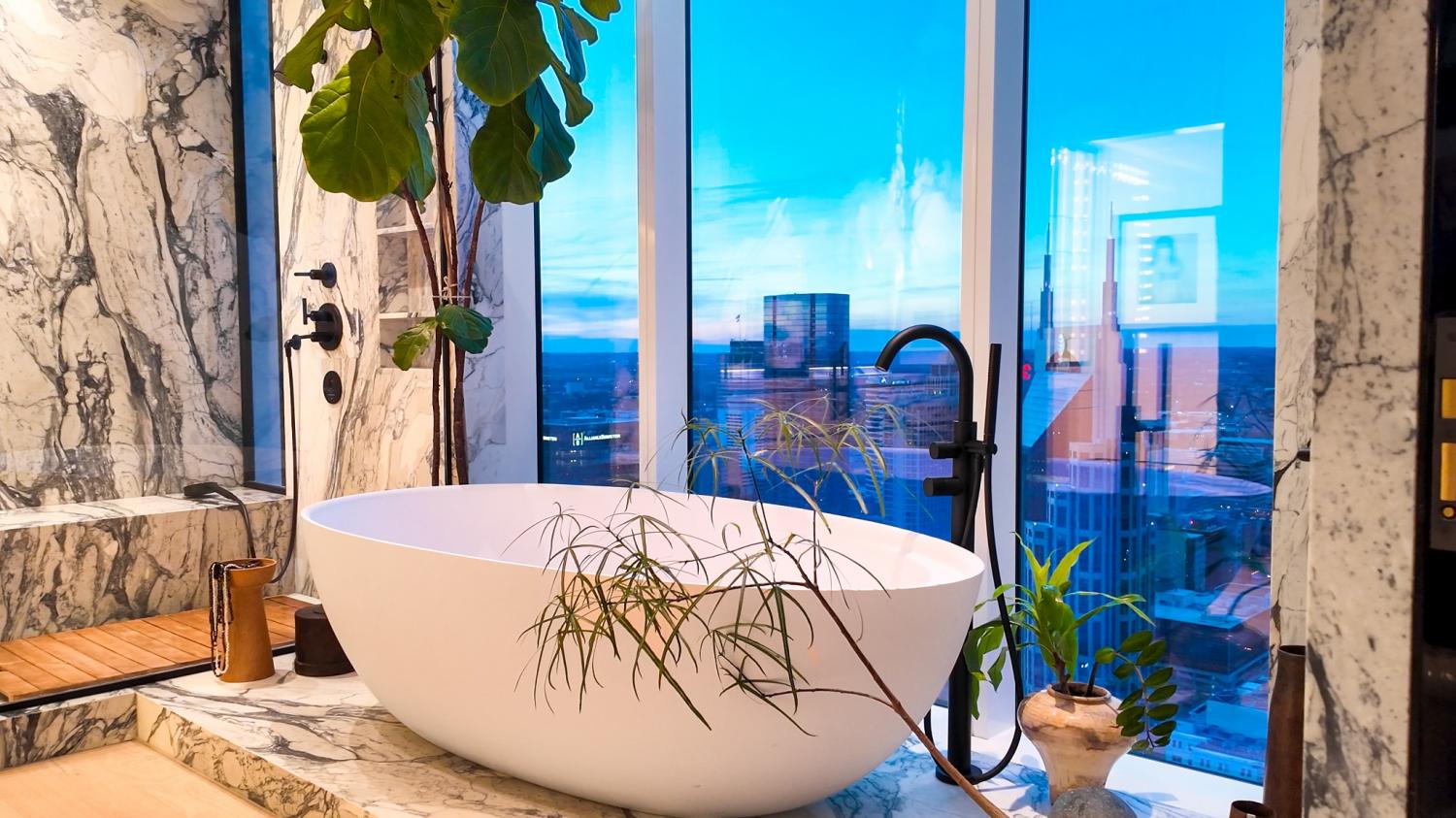 Forty stories above downtown Nashville, this ultra-luxury Penthouse at the Four Seasons ranks among the most exceptional residences ever offered in the city. Spanning just under 5,000 sf, with a deep outdoor deck running the full length of the penthouse, this home blends custom craftsmanship with the full benefits of world-class Four Seasons service in an unmatched location. Every inch of this penthouse has been meticulously curated, engineered, and executed at a level that surpasses anything else in the city. At the center of the home, a handcrafted 16-foot curved Calacatta marble island resembles a single, seamless floating sculpture. Hidden drawers, integrated cabinetry, sleek high-gloss finishes, and fully concealed appliances preserve a minimalist, gallery-style look. A secondary service kitchen, entirely clad in stainless steel, supports both everyday living and large-scale entertaining. Anchoring the main living area is a custom gas fireplace crafted in France by Bloch Designs - a true statement piece in copper, curved glass, brass, and marble with sculptural presence and refined artistry. The Gathering Room transforms into a private theater featuring a 120-inch floating screen with laser projector, concealed within a motorized mirror-drop mechanism, creating a cinematic environment that rivals professional screening rooms without compromising aesthetics when not in use. The primary bedroom suite is a sanctuary unto itself, featuring dual closets, an Antonio Lupi bathtub, and Fantini Rubinetti fixtures. Secondary bathrooms also feature exquisite Italian marble with Waterworks selections. This fully automated smart home features Control4 Automation and Josh.ai voice control, enabling effortless management of lighting, audio, video, and climate. With five-star Four Seasons service, residents-only amenities, and a 40th-floor vantage point, this Penthouse is a one-of-one offering—the pinnacle of urban luxury in Nashville and a lifestyle reserved for a select few.
