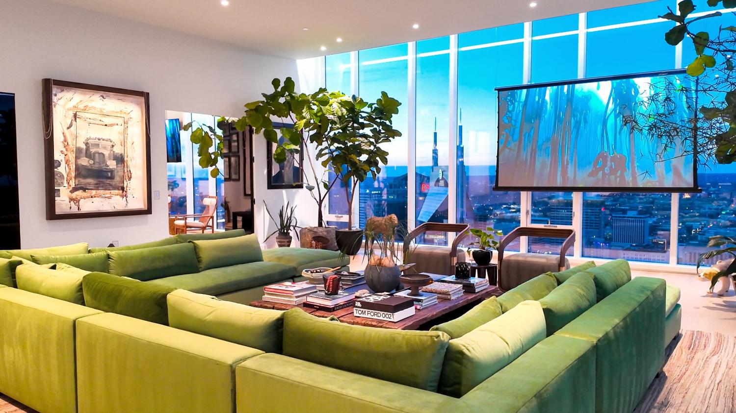 PLEASE NOTE, LIST PRICE IS PER WEEK. MONTHLY LEASE IS $200,000. Perched above downtown Nashville, the 40th floor Grand Penthouse at the Four Seasons is among the most exceptional residences ever offered in the city. Nearly 5,000 sq ft with a full length balcony, it blends custom craftsmanship with world class Four Seasons service in an unrivaled location. Every inch has been meticulously curated, engineered, and executed. On entry, eastern exposure frames the Cumberland River, Nissan Stadium, Ascend Amphitheater, and the anticipated East Bank development. Enjoy Nashville’s iconic fireworks show from your residence. The living area is anchored by a custom fireplace crafted in France by Bloch Designs, a statement in copper, curved glass, brass, and marble for the residence named “Art in the Sky.” In the kitchen, a handcrafted 16 ft curved Calacatta marble island reads as a single, seamless floating sculpture. Hidden drawers, integrated cabinetry, high gloss finishes, and fully concealed appliances preserve a minimalist, gallery style look. A secondary service kitchen, fully clad in stainless steel, supports daily living and large scale entertaining. The Gathering Room converts into a private theater with a 120 in floating screen and laser projector housed in a motorized mirror drop system, delivering cinema without compromising design. The primary suite, with views of the Batman Building, is a sanctuary with dual closets, an Antonio Lupi tub, marble cased openings, and Fantini Rubinetti fixtures. Secondary baths continue with Italian marble and curated Waterworks selections. This fully automated smart home includes $1M+ in features, with Control4 automation and Josh.ai voice control for lighting, audio, video, and climate. With five star Four Seasons service, residents only amenities, and a 40th floor vantage point, this Penthouse is a one of one offering, the pinnacle of urban luxury in Nashville and a lifestyle reserved for a select few. Also for sale at $34,000,000