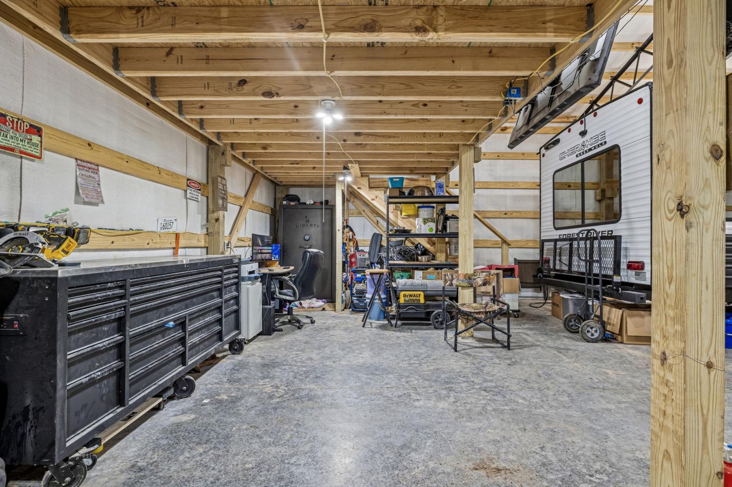 Set on 20 private acres in Nunnelly, Tennessee, this 2016 built modular home offers space, flexibility, and a true rural lifestyle outside city limits. The 1,860 sq ft, 3-bedroom, 2-bath residence features an open, functional layout with all-electric utilities and fiber-optic internet, providing reliable high-speed connectivity for work or home use. The property is exceptionally well improved with two insulated barns on concrete slabs, offering outstanding versatility. The first barn, 25’x30’, built in 2016, includes power and ample workspace. The second barn, 30'x50', built in 2025, is equipped with 100-amp electrical service, Ethernet connectivity, and a wood-burning stove, making it ideal for a workshop, business use, or year-round workspace. Additional features include an automatic electric front gate with keypad access, enhancing privacy and security, as well as included appliances and a Pelican whole-home water filtration system for improved water quality. The property also features a chicken coop, fenced garden area, fruit trees, and an enclosed, cross-fenced yard. The land is a standout feature, 20 acres of wooded, rolling Tennessee countryside offering privacy, freedom, and room to expand. Located outside city limits, the property benefits from fewer restrictions and no city taxes, allowing greater flexibility for agricultural use, animals, workshops, and rural living. The acreage may qualify for Tennessee Greenbelt status, which can significantly reduce property taxes by valuing the land based on agricultural use rather than market value, offering long-term tax advantages for qualifying owners. Enjoy the balance of privacy and accessibility at 7 miles from I-40, approximately 5 miles to Piney River Resort, 20 minutes to Dickson or Centerville, and less than an hour to Downtown Nashville, Columbia, Franklin, or Spring Hill, along with convenient access to BNA International Airport. Ideal as a primary residence, weekend retreat, or multi-use rural property.