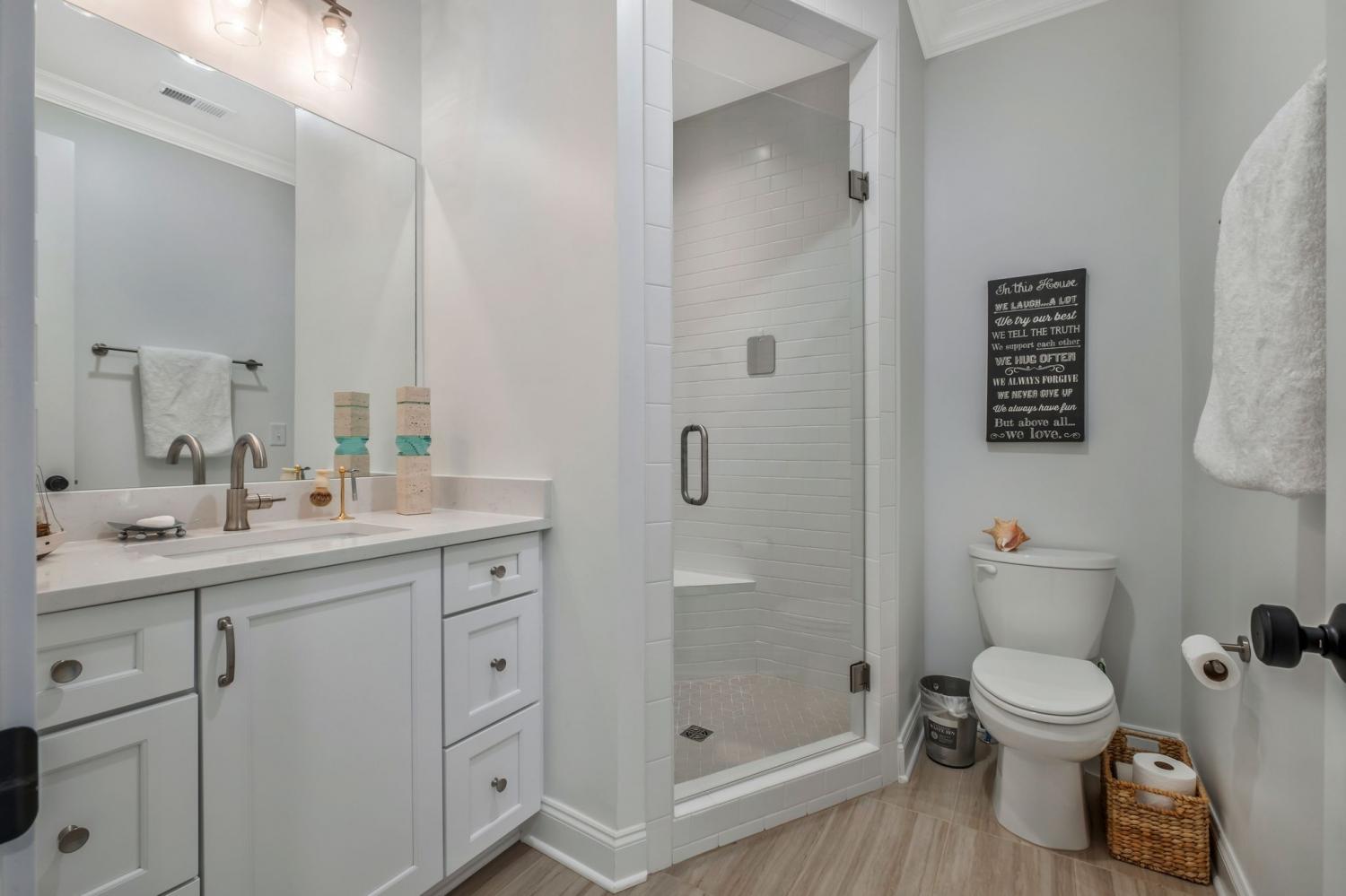 Beautifully upgraded home in sought-after Southbrooke and currently the ONLY single-family home available in the neighborhood. Over 3000 ft of luxury, including an added and customized fully heated hot yoga space / gym with floor-to-ceiling mirrors. Open, light-filled floor plan with the primary suite on the main level, plus a powder room off the living area. Two additional bedrooms upstairs with a secondary living room offer flexible living space. Seller upgrades include over $20,000 in custom plantation shutters throughout, whole-home water filtration with reverse osmosis, alarm/security system, and over $4,000 in designer Serena & Lily lighting. Thoughtfully curated finishes elevate this home beyond builder standard. Located in highly desirable Franklin, just minutes from Downtown Franklin and Cool Springs.