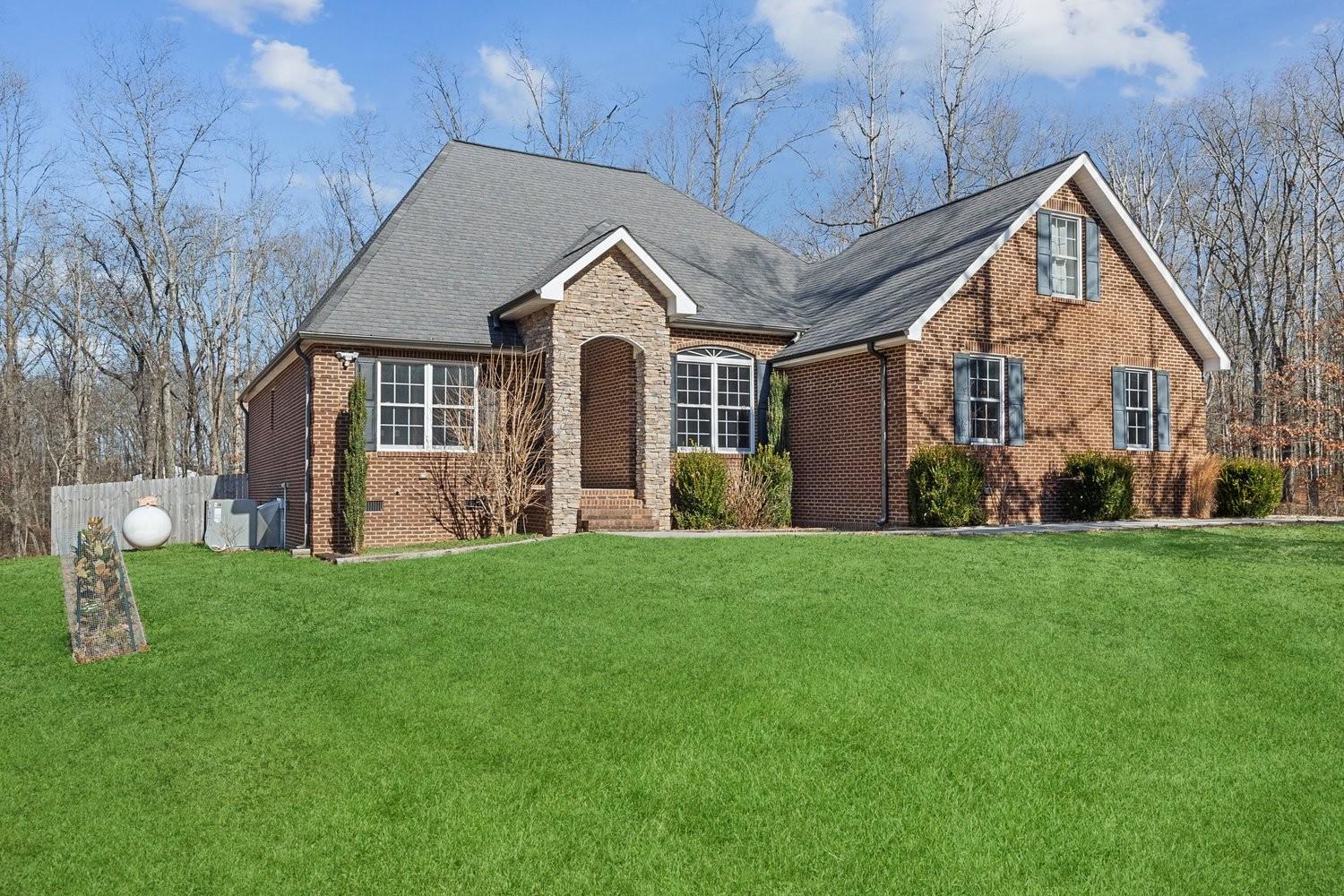 Set on an exceptionally private, beautifully landscaped one-acre homesite, this brick and stone residence offers timeless craftsmanship paired with thoughtful modern updates. Rich hardwood floors and a striking stone fireplace anchor the main living space, creating a refined yet inviting setting for quiet evenings or meaningful gatherings. The kitchen blends elegance and function with granite countertops, stainless steel appliances, and tile flooring, flowing seamlessly into well-proportioned living and dining areas. The primary suite includes a remodeled closet, while ceiling fans throughout enhance year-round comfort. Both bathrooms feature classic tile finishes, and a spacious utility room—complete with washer and dryer—adds everyday convenience. Upstairs, a fully carpeted bonus room or den with its own mini-split system offers flexible space for guests, work, or leisure. Outdoor living is equally considered. A patio and deck overlook the fully privacy-fenced backyard, framed by mature trees that provide a sense of calm and seclusion. The copper-ionized above-ground pool offers low-maintenance, chemical-free enjoyment. A storage shed conveys, and the two-car garage includes an additional stainless refrigerator. Recent improvements include a newer HVAC system (2023), upgraded garage lighting, enhanced landscaping, and other quality updates throughout. Just minutes away, Laurel Lake offers fishing and kayaking, while nearby South Cumberland State Park provides miles of scenic hiking trails, waterfalls, and overlooks. Private, well-maintained, and thoughtfully updated, this home offers a refined retreat with easy access to both nature and town conveniences. SELLER HAS AN ACCEPTED OFFER WITH A 72-HOUR RIGHT OF FIRST REFUSAL CONTINGENCY.