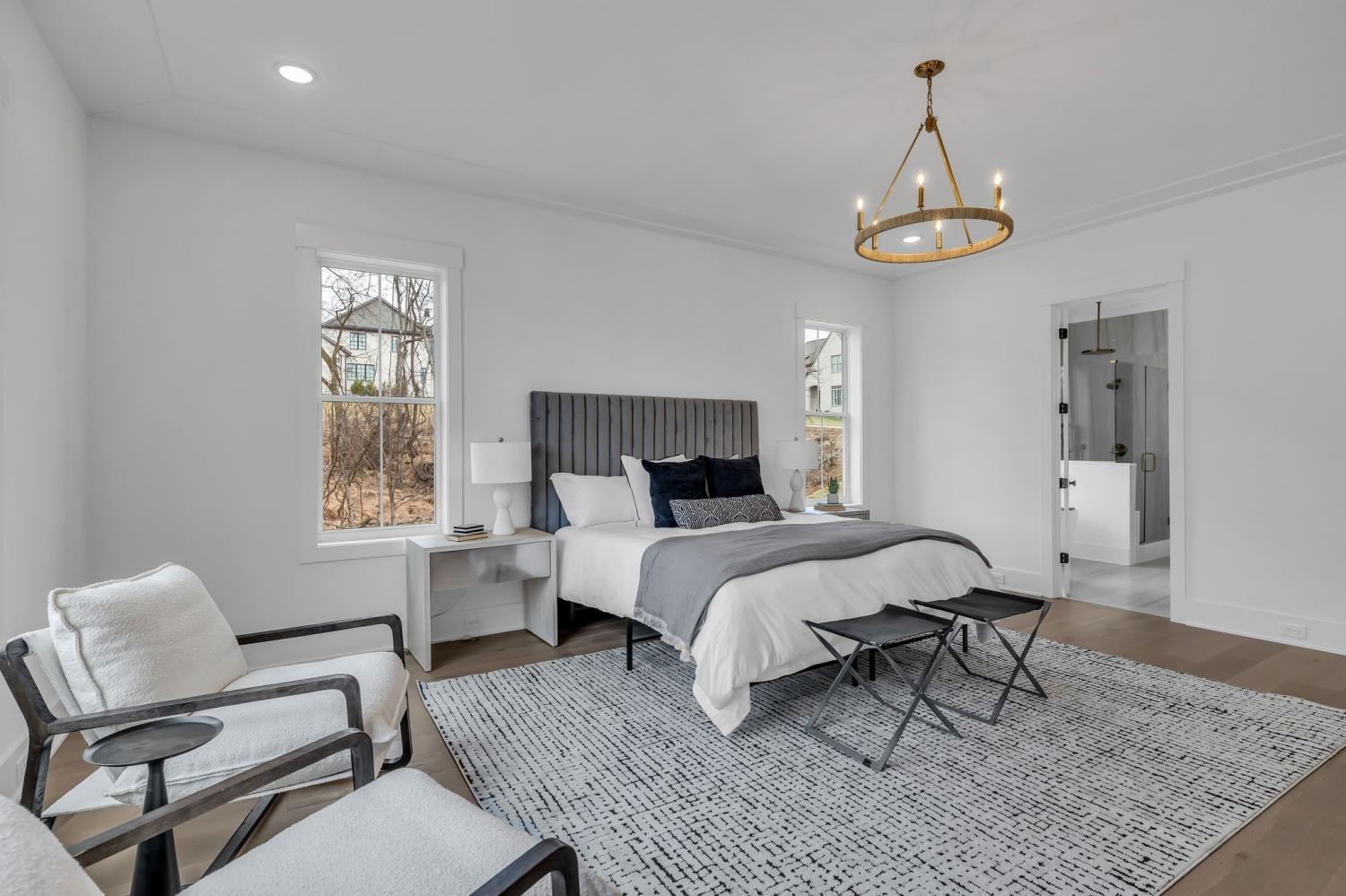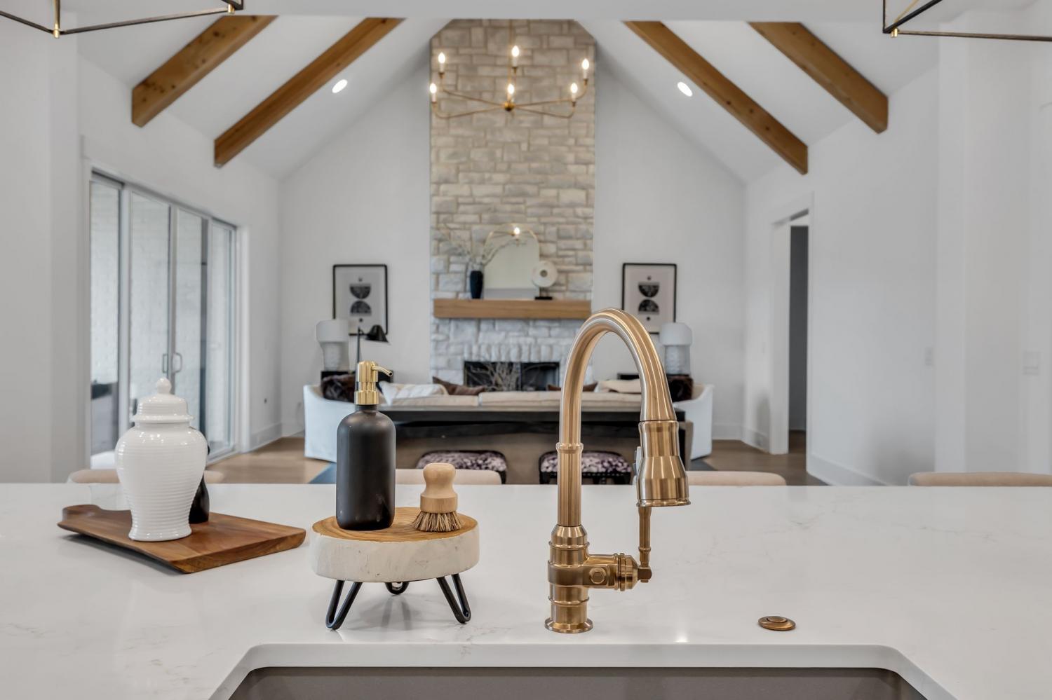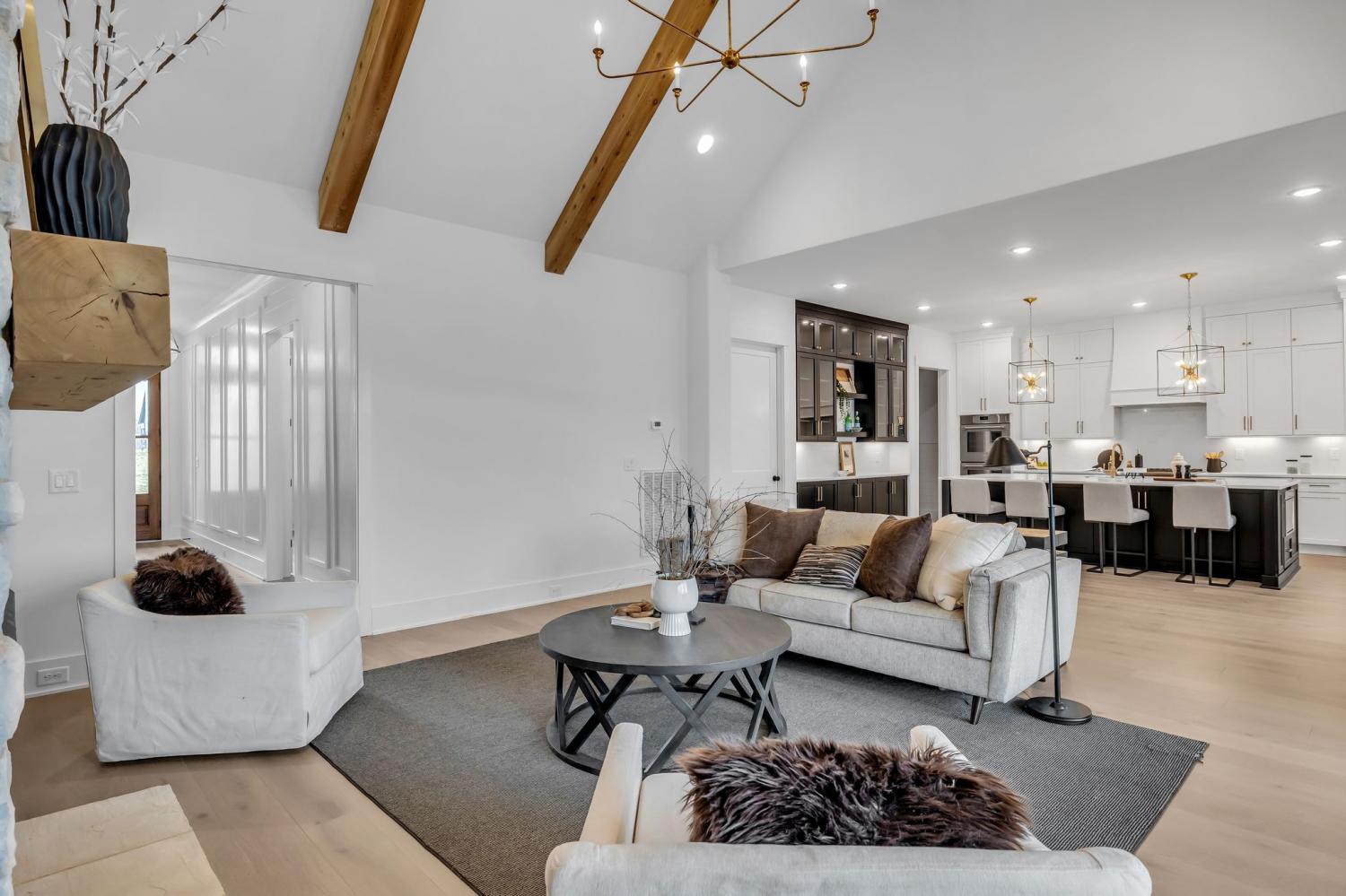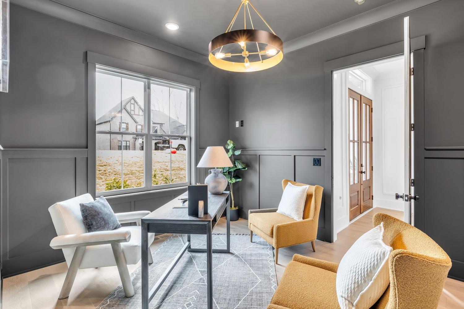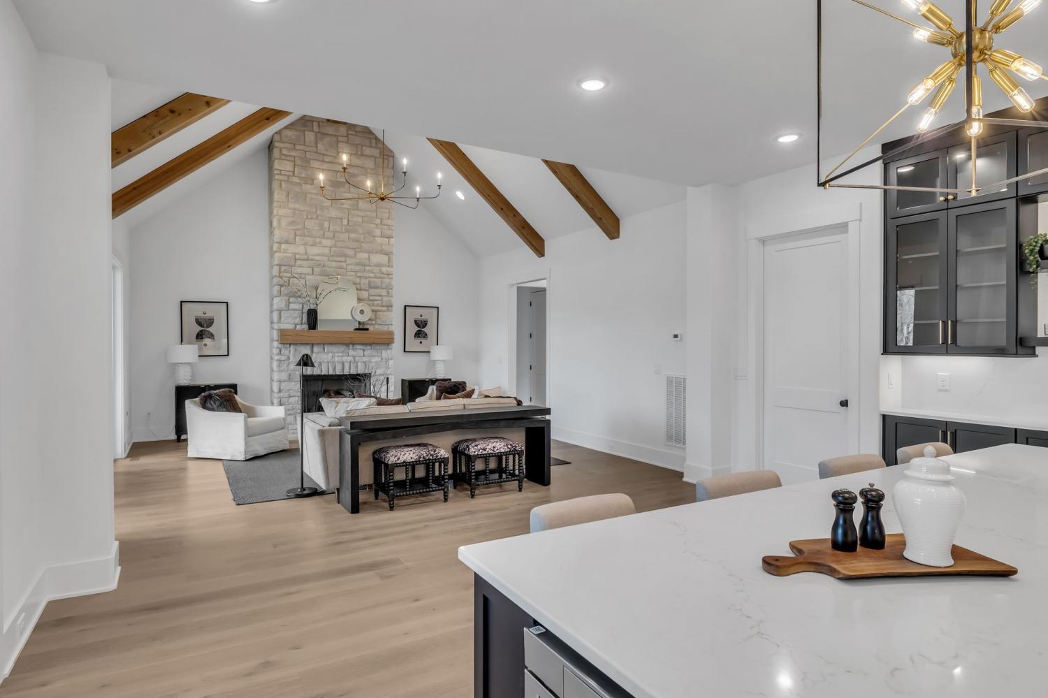 Welcome to your dream home in the prestigious Kings’ Chapel Community! This stunning, brand-new custom home by RG Custom Homes, offers unparalleled luxury and thoughtful design across three levels. Step onto the charming covered front porch and enter to the foyer where you will find a sophisticated study and a convenient guest suite. The heart of the home is the chef’s kitchen, featuring high-end Thermador built-in appliances, seamlessly flowing into the elegant dining room and vaulted living room. Cozy up by the gorgeous stone fireplace in the living room or the additional fireplace in the dining area. Entertain in style on the covered patio, complete with a gas fireplace. Enjoy the practicality of a mudroom off the kitchen leading to separate one- and two-car garages. The expansive primary suite is a true retreat, boasting a freestanding soaking tub, dedicated water closet, private first-floor laundry, and a large walk-in closet. The walk-out basement offers a spacious bonus room with access to a lower patio, two bedrooms, a full bathroom, and ample storage. Upstairs, discover a versatile bonus space with a powder room, a second laundry room, and three additional bedrooms—one with an en-suite bath and two sharing a sizable bathroom with dual vanities. This exquisite home combines modern elegance with functional living, all in the coveted Kings’ Chapel Community. Don’t miss the opportunity to own this masterpiece!