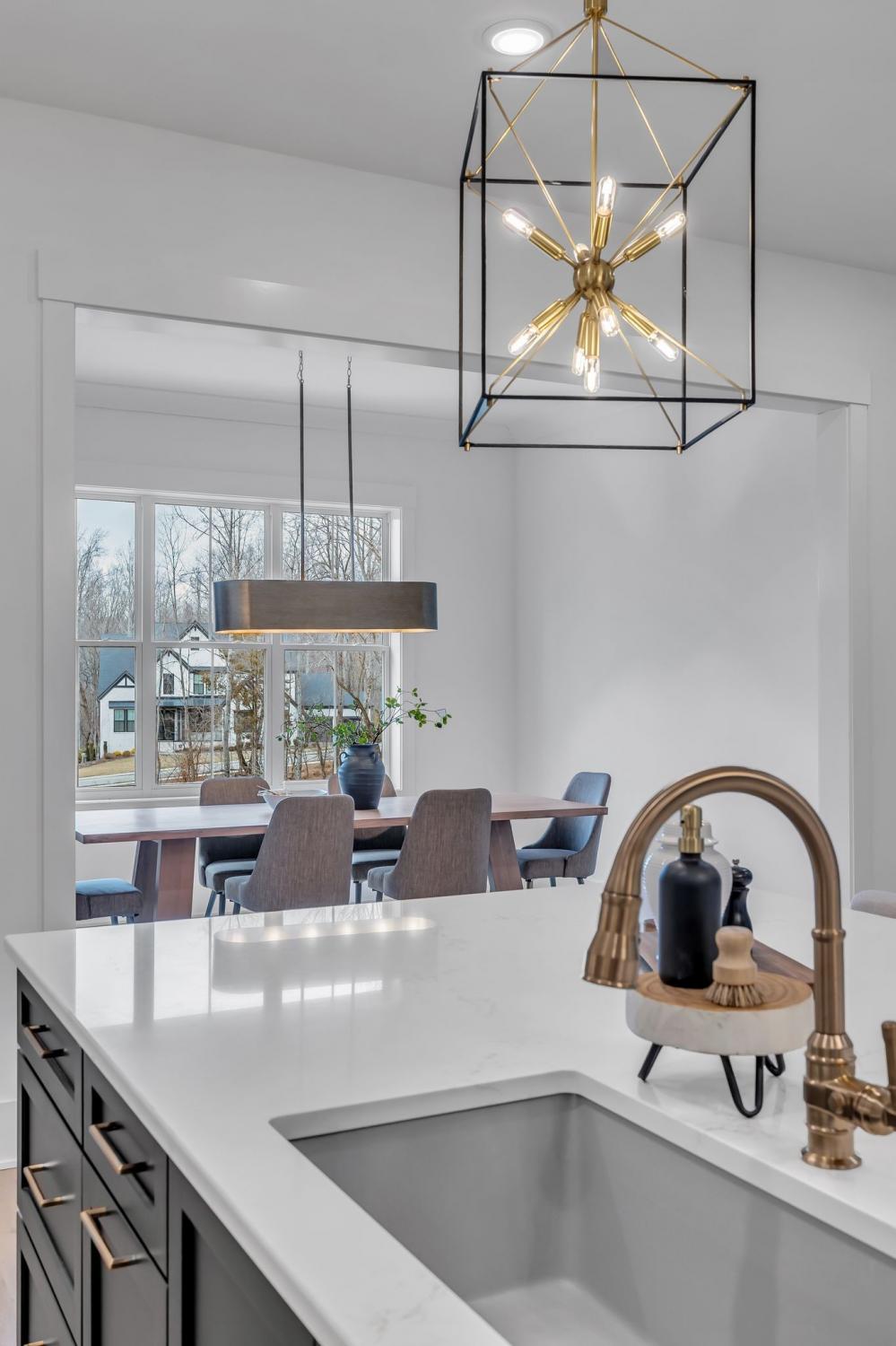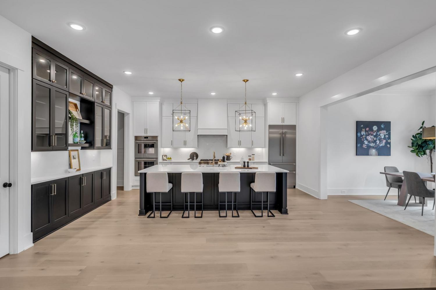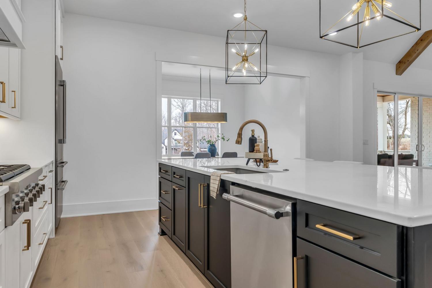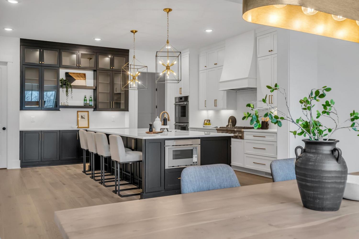 Welcome to your dream home in the prestigious Kings’ Chapel Community! This stunning, brand-new custom home by RG Custom Homes, offers unparalleled luxury and thoughtful design across three levels. Step onto the charming covered front porch and enter to the foyer where you will find a sophisticated study and a convenient guest suite. The heart of the home is the chef’s kitchen, featuring high-end Thermador built-in appliances, seamlessly flowing into the elegant dining room and vaulted living room. Cozy up by the gorgeous stone fireplace in the living room or the additional fireplace in the dining area. Entertain in style on the covered patio, complete with a gas fireplace. Enjoy the practicality of a mudroom off the kitchen leading to separate one- and two-car garages. The expansive primary suite is a true retreat, boasting a freestanding soaking tub, dedicated water closet, private first-floor laundry, and a large walk-in closet. The walk-out basement offers a spacious bonus room with access to a lower patio, two bedrooms, a full bathroom, and ample storage. Upstairs, discover a versatile bonus space with a powder room, a second laundry room, and three additional bedrooms—one with an en-suite bath and two sharing a sizable bathroom with dual vanities. This exquisite home combines modern elegance with functional living, all in the coveted Kings’ Chapel Community. Don’t miss the opportunity to own this masterpiece!