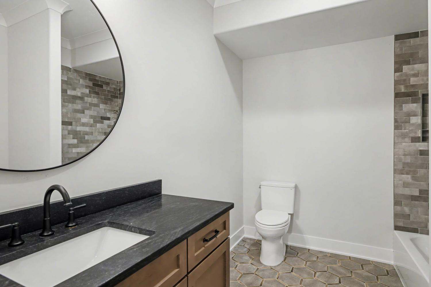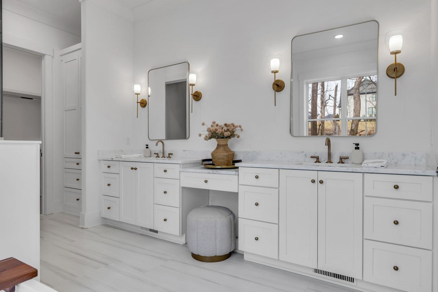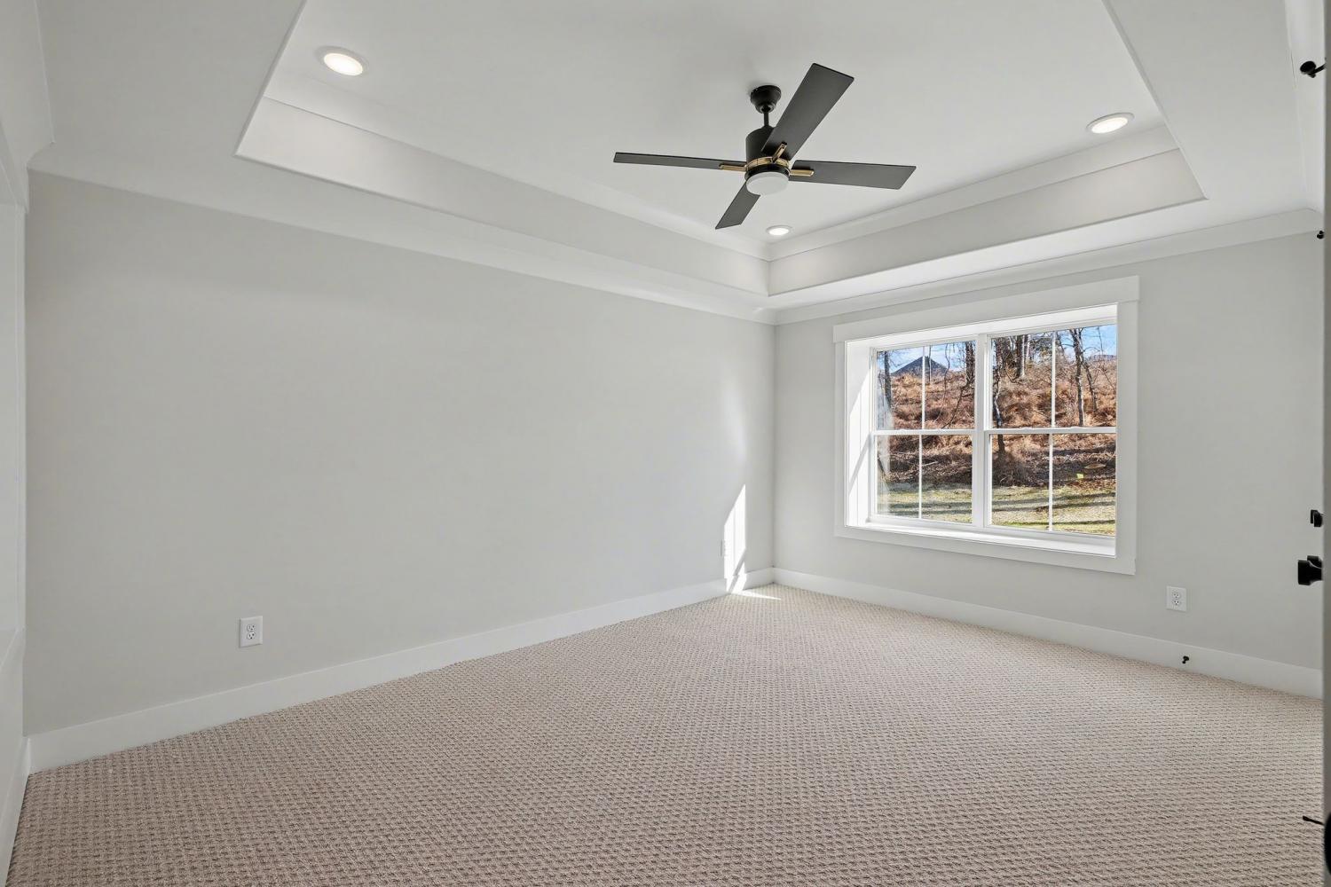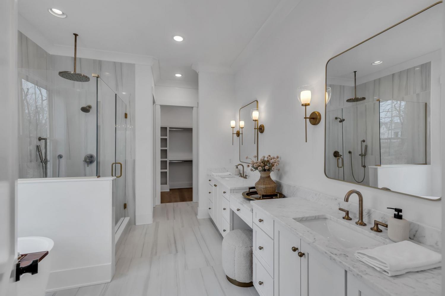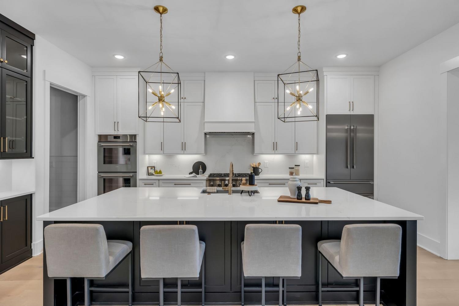 Welcome to your dream home in the prestigious Kings’ Chapel Community! This stunning, brand-new custom home by RG Custom Homes, offers unparalleled luxury and thoughtful design across three levels. Step onto the charming covered front porch and enter to the foyer where you will find a sophisticated study and a convenient guest suite. The heart of the home is the chef’s kitchen, featuring high-end Thermador built-in appliances, seamlessly flowing into the elegant dining room and vaulted living room. Cozy up by the gorgeous stone fireplace in the living room or the additional fireplace in the dining area. Entertain in style on the covered patio, complete with a gas fireplace. Enjoy the practicality of a mudroom off the kitchen leading to separate one- and two-car garages. The expansive primary suite is a true retreat, boasting a freestanding soaking tub, dedicated water closet, private first-floor laundry, and a large walk-in closet. The walk-out basement offers a spacious bonus room with access to a lower patio, two bedrooms, a full bathroom, and ample storage. Upstairs, discover a versatile bonus space with a powder room, a second laundry room, and three additional bedrooms—one with an en-suite bath and two sharing a sizable bathroom with dual vanities. This exquisite home combines modern elegance with functional living, all in the coveted Kings’ Chapel Community. Don’t miss the opportunity to own this masterpiece!