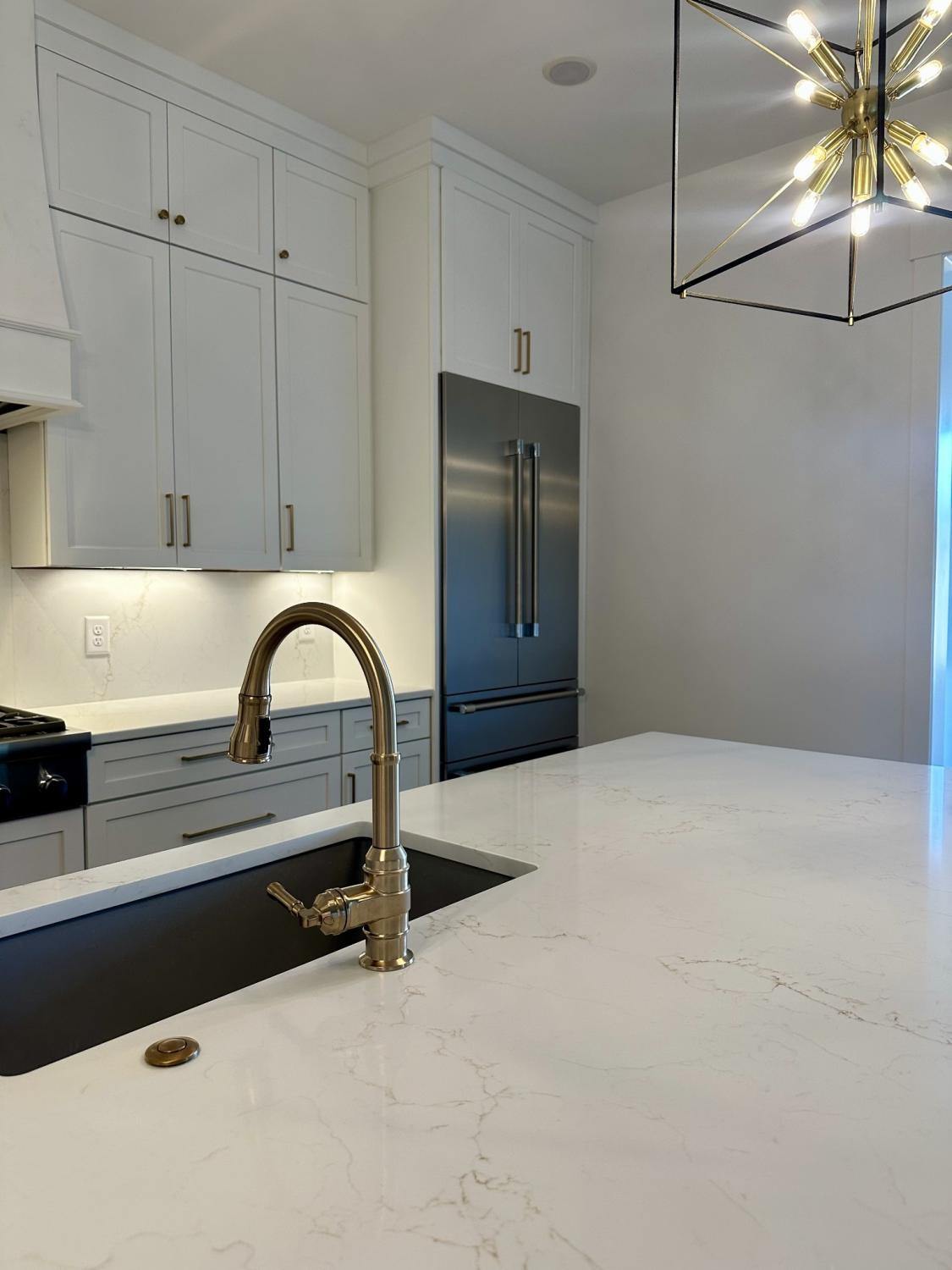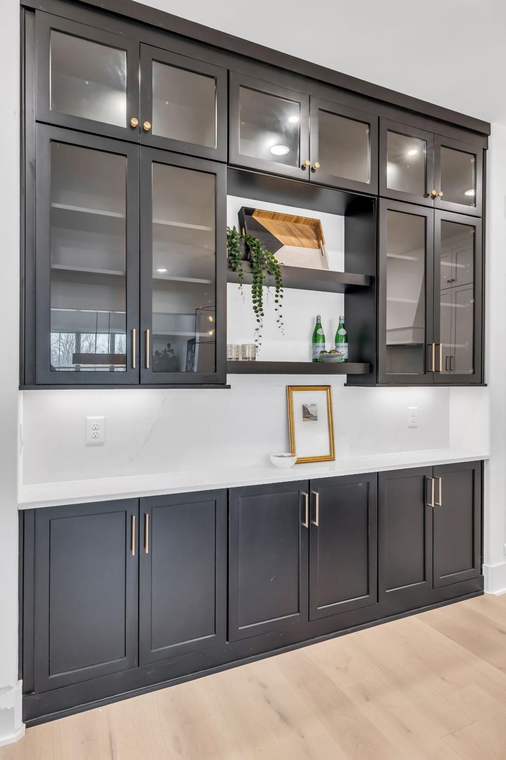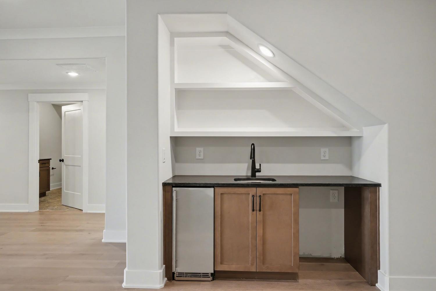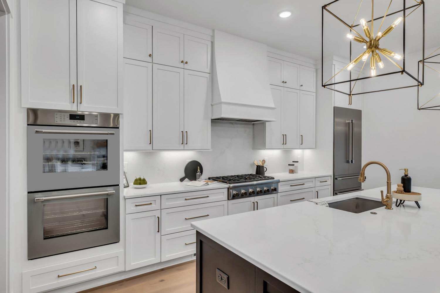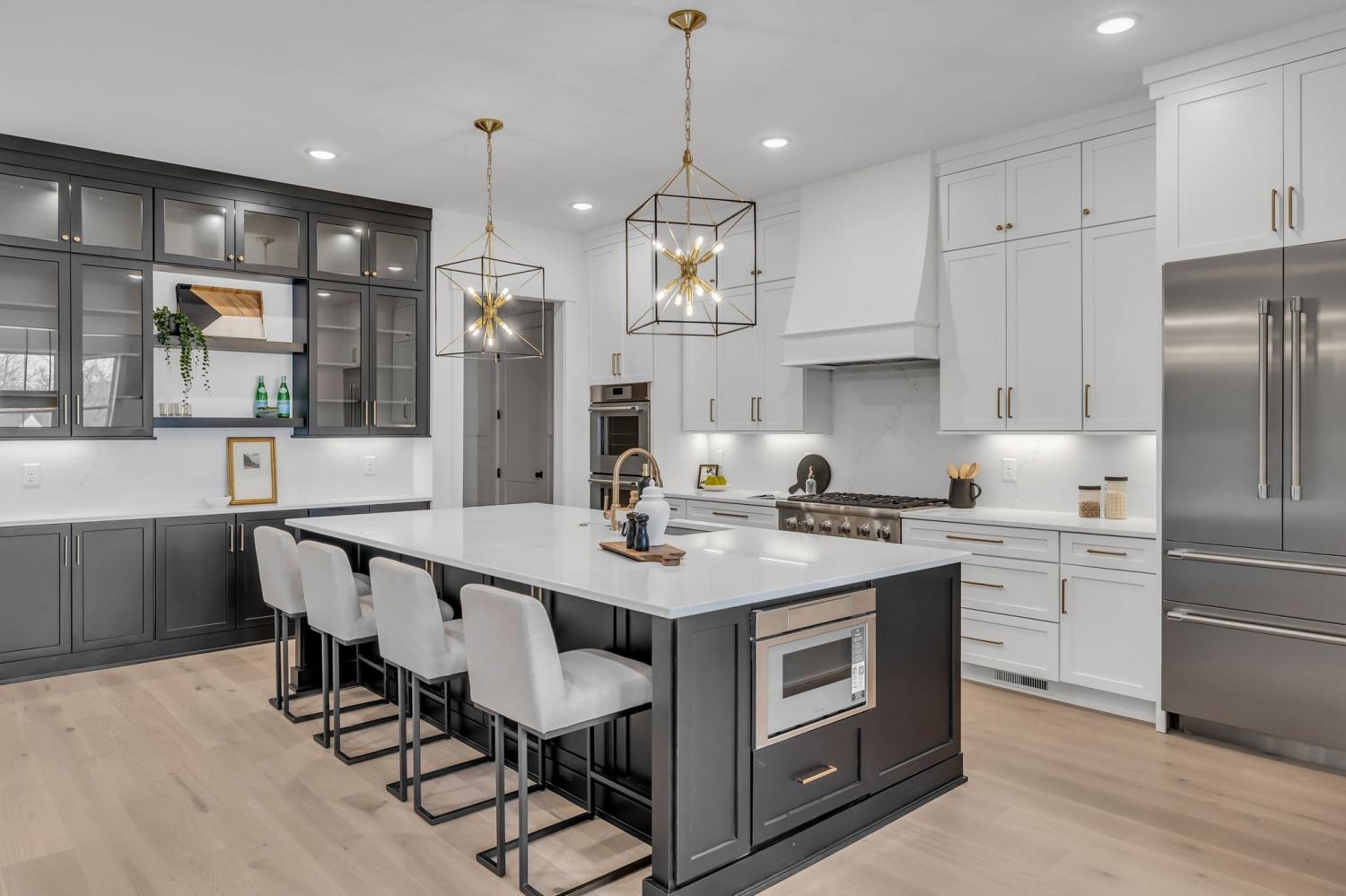 Welcome to your dream home in the prestigious Kings’ Chapel Community! This stunning, brand-new custom home by RG Custom Homes, offers unparalleled luxury and thoughtful design across three levels. Step onto the charming covered front porch and enter to the foyer where you will find a sophisticated study and a convenient guest suite. The heart of the home is the chef’s kitchen, featuring high-end Thermador built-in appliances, seamlessly flowing into the elegant dining room and vaulted living room. Cozy up by the gorgeous stone fireplace in the living room or the additional fireplace in the dining area. Entertain in style on the covered patio, complete with a gas fireplace. Enjoy the practicality of a mudroom off the kitchen leading to separate one- and two-car garages. The expansive primary suite is a true retreat, boasting a freestanding soaking tub, dedicated water closet, private first-floor laundry, and a large walk-in closet. The walk-out basement offers a spacious bonus room with access to a lower patio, two bedrooms, a full bathroom, and ample storage. Upstairs, discover a versatile bonus space with a powder room, a second laundry room, and three additional bedrooms—one with an en-suite bath and two sharing a sizable bathroom with dual vanities. This exquisite home combines modern elegance with functional living, all in the coveted Kings’ Chapel Community. Don’t miss the opportunity to own this masterpiece!