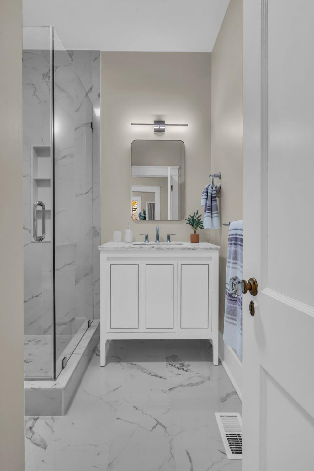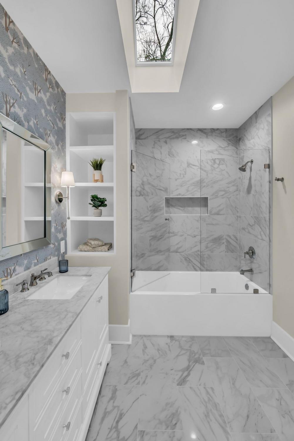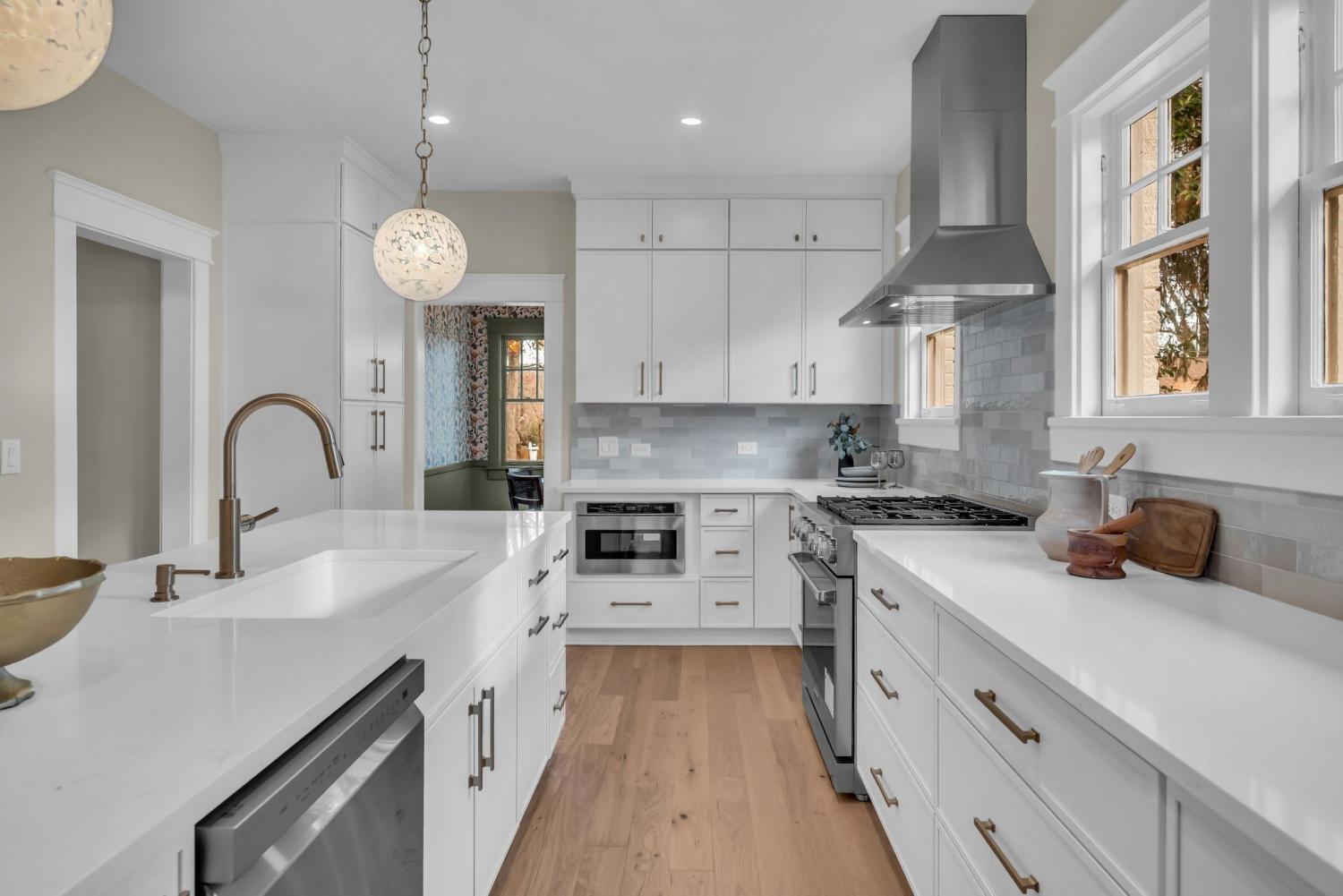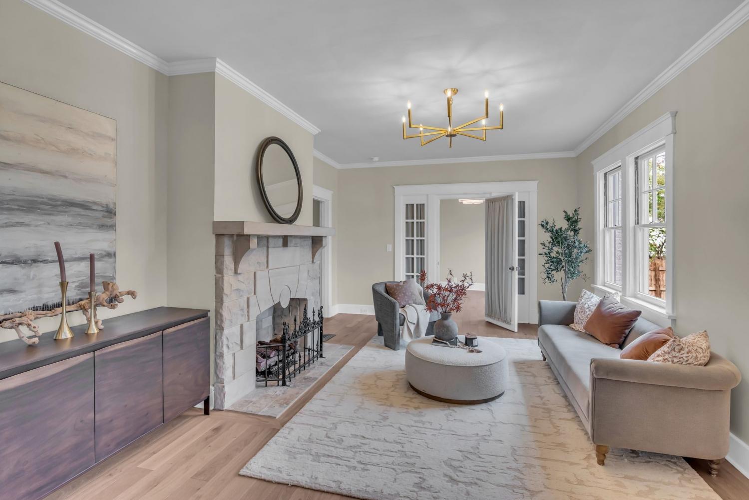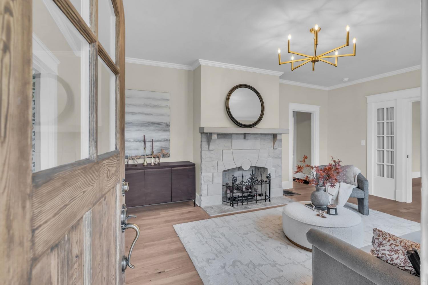 Stunning 1930s brick Tudor ideally located in the heart of East Nashville’s coveted Eastwood Neighbors. Meticulously restored, this exceptional home seamlessly blends timeless historic character with thoughtfully curated modern updates. Original architectural details shine throughout—from the arched front entry and stone fireplaces to rich millwork—beautifully complemented by designer lighting, statement wallpaper, and refined finishes. The floor plan offers remarkable flexibility, featuring both a first- and second-floor primary suite, including a newly added upstairs ensuite bath, plus three additional bedrooms (one currently styled as a home office). The home features multiple functioning gas fireplaces, including one in the front sitting room and another in the oversized bonus room—perfect for curling up on a cold day. The gorgeous entertainer’s kitchen is outfitted with elegant shaker cabinetry, quartz countertops, stainless steel appliances, and flows effortlessly into the oversized bonus room at the rear of the home, creating an ideal setting for both everyday living and memorable gatherings. Situated on an expansive 15,000+ sq ft lot, the property provides ample room for a future pool and the potential to add a detached guest house. Priority-zoned for Lockeland Elementary and Rosebank Elementary. Additional highlights include a three-car parking pad and alley access that transitions into a side driveway, easily expandable for additional parking or a future garage.