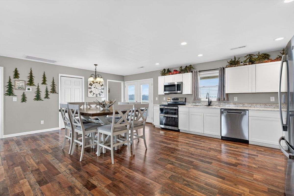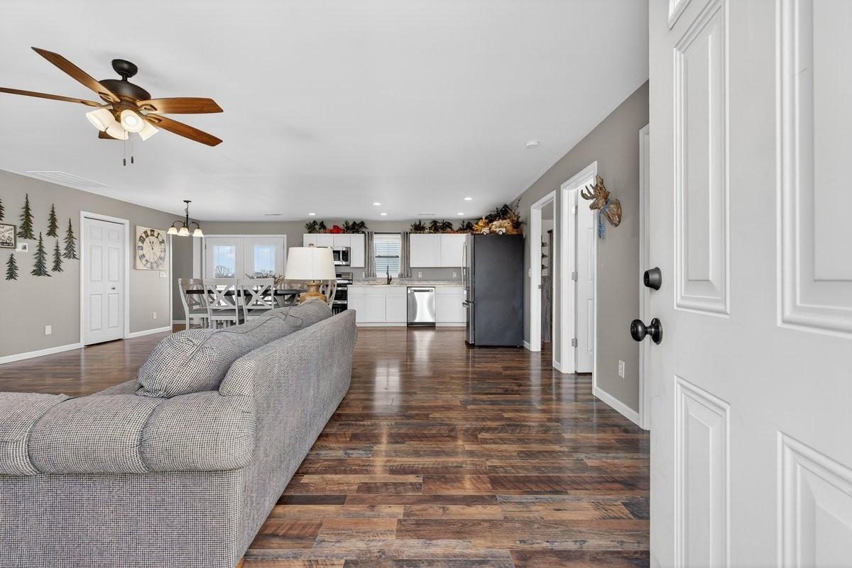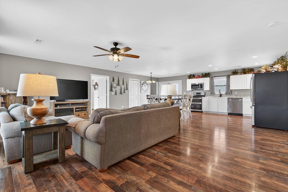 Built in 2024 and designed for everyday living without the worry. This 3 bedroom, 2 bath home sits on almost 2 acres, giving you space, privacy, and quiet that is hard to find. The open concept layout flows easily from the living area into a spacious kitchen featuring stainless steel appliances, a double oven, generous cabinet space, and a large pantry that actually works for real life. The primary suite is thoughtfully positioned on its own side of the home, separate from the other bedrooms, and offers a true retreat with an ensuite bath and not 1, but 2 walk in closets. A separate laundry area provides extra room for storage so everything has a place. An attached 2 car garage adds everyday convenience and functionality. Step outside to an extremely large covered back deck that quickly becomes the favorite spot of the home. Whether it’s quiet mornings or long evenings, you may find yourself never wanting to leave. Entire home equipped with spray foam insulation which adds to energy efficiency of the home. With the roof, HVAC system, tankless hot water heater, and septic all from 2024, the big ticket items are already taken care of. Add in the ability to enjoy your space without hearing your neighbors, and this home offers comfort, peace, and confidence all in one.