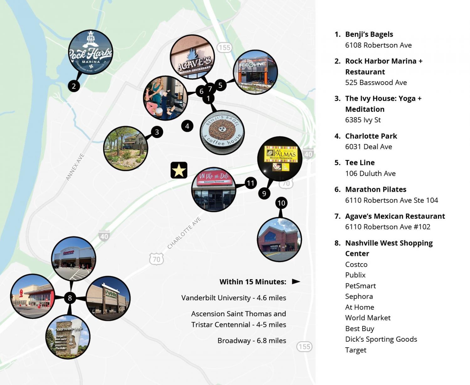 From Charlotte Ave, turn onto Westboro Dr., turn right onto Patton Ave then turn left onto Croley Dr