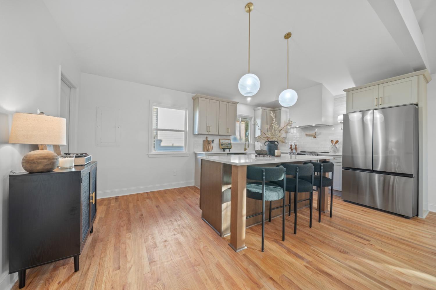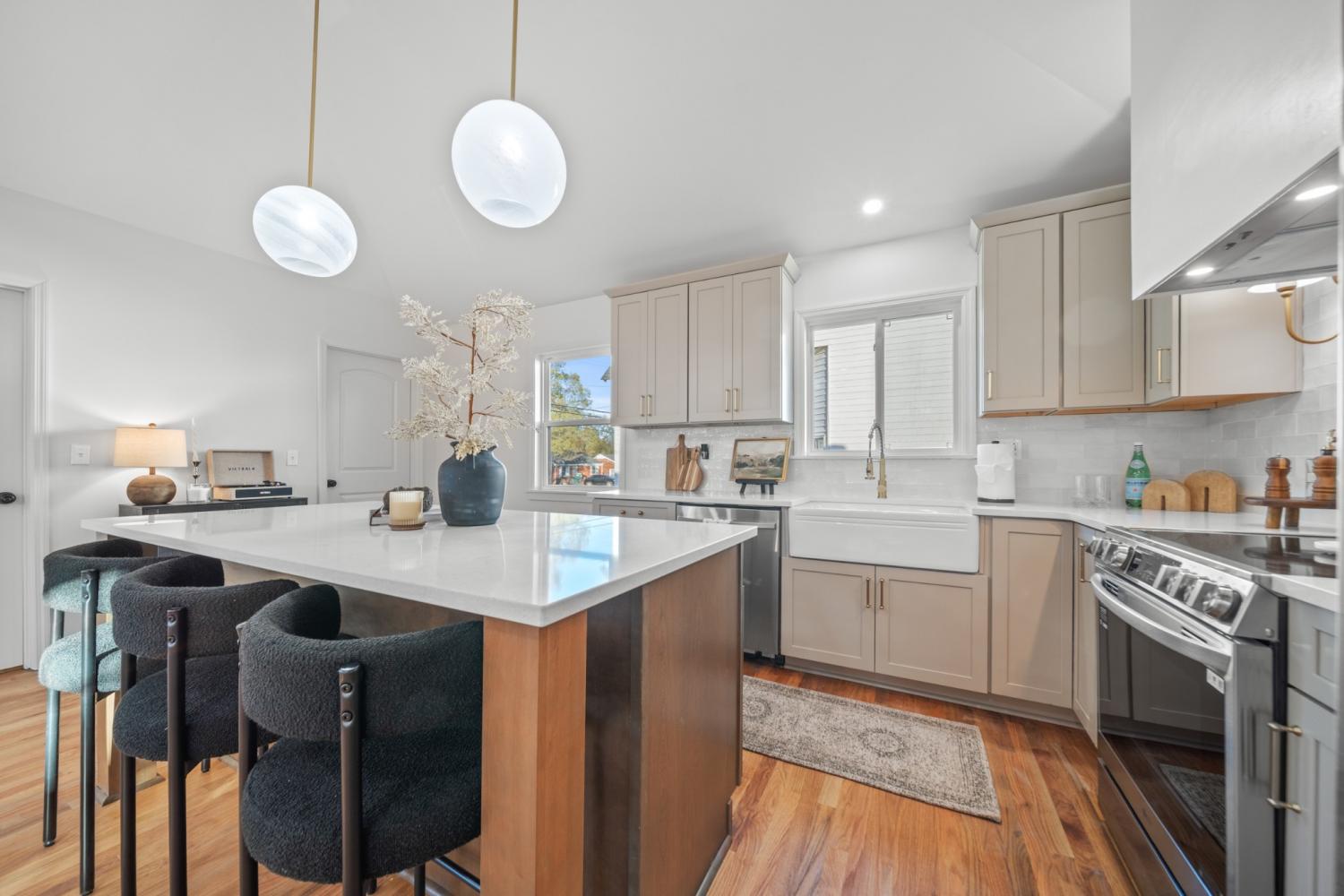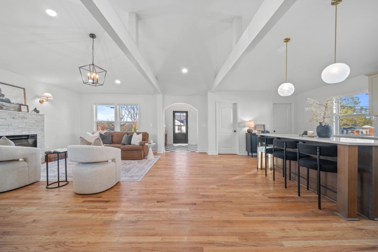 In the heart Nashville’s fastest-growing creative neighborhood: Minutes from Downtown, Germantown, and Marathon Village. Quick access to Nashville’s most exciting dining, coffee, and boutique scene, including local favorites like Slim & Husky’s, artisan roasters, and vibrant community-driven small businesses. 6-minute drive to The Nations, Frothy Monkey, and the Farmers Market, plus only 2 minutes from the Ted Rhodes Golf Course. FULLY RENOVATED Every major system is NEW for long-term peace of mind: NEW ROOF, STONE-ACCENTED SIDING, PLUMBING, ELECTRICAL, HVAC, GUTTERS, DECK, POURED DRIVEWAY, & FULL 360° EXTERIOR LIGHTING: ALL BRAND NEW! Inside, a designer-curated interior delivers contemporary elegance and comfort. A 13-ft FOYER CEILING creates a dramatic entrance that opens into a bright, OPEN CONCEPT LAYOUT. The kitchen and living areas feature CUSTOM CABINETRY, QUARTZ COUNTERTOPS, HIGH- END STAINLESS STEEL APPLIANCES, HARDWOOD FLOORS, and CERAMIC& MARBLE TILE FINISHED THROUGHOUT. An ELECTRIC FIREPLACE and elevated lighting details add warmth and modern sophistication. The primary suite offers a spa-like retreat with a marble shower, walk-in closet, and refined designer touches. Blending location, lifestyle, and luxury, this home reflects North Nashville’s creative evolution and offers a rare opportunity to own a move-in-ready masterpiece in a rapidly appreciating area. Come experience it for yourself!