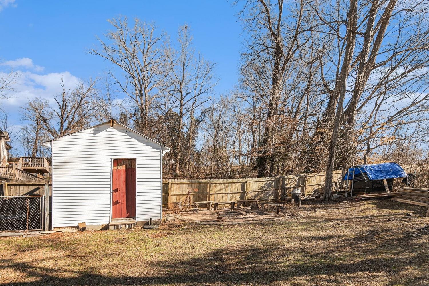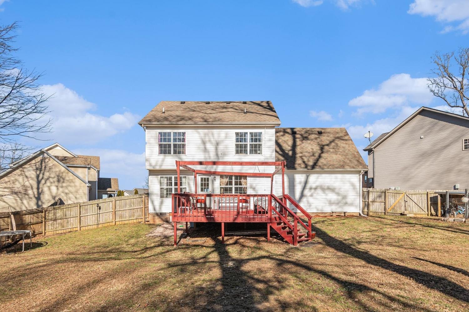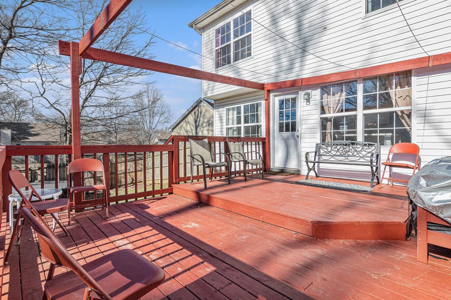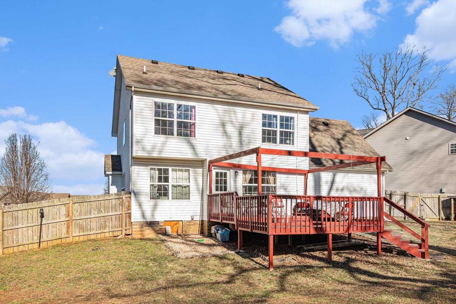 Tucked away on a quiet cul-de-sac with convenient access to the Post back gate and Land Between the Lakes, this stylish two-story contemporary home offers comfort, updates, and flexibility throughout. The open-concept living area is inviting and filled with natural light, highlighted by a cozy gas fireplace. The recently renovated kitchen features new epoxy countertops, custom cabinet pullouts, and stainless steel appliances, including a new dishwasher and garbage disposal. A breakfast nook, pantry, and an attached formal dining area complete the space, making it ideal for everyday living and entertaining. A convenient half bath is also located on the main level. Upstairs, you’ll find four bedrooms, including a spacious primary suite with a large en-suite bath and a relaxing tub. One oversized room with a closet offers exceptional versatility and can function as a fourth bedroom, bonus room, home gym, or office space. The upstairs full bathroom has been tastefully renovated, and the laundry room includes built-in cabinetry for added convenience and storage. The garage provides abundant storage with built-in racks and cabinets. Outside, enjoy a fully fenced, private backyard with no rear neighbors, offering a peaceful setting for outdoor living. A two-tiered deck overlooks the backyard and includes a covered sun shade that can remain with the property—ideal for relaxing during the spring and summer months. The yard also features a new 10x10 storage shed. Additionally, the chicken coop, fire pit, bike rack, and soccer goals are negotiable and may remain with the home.