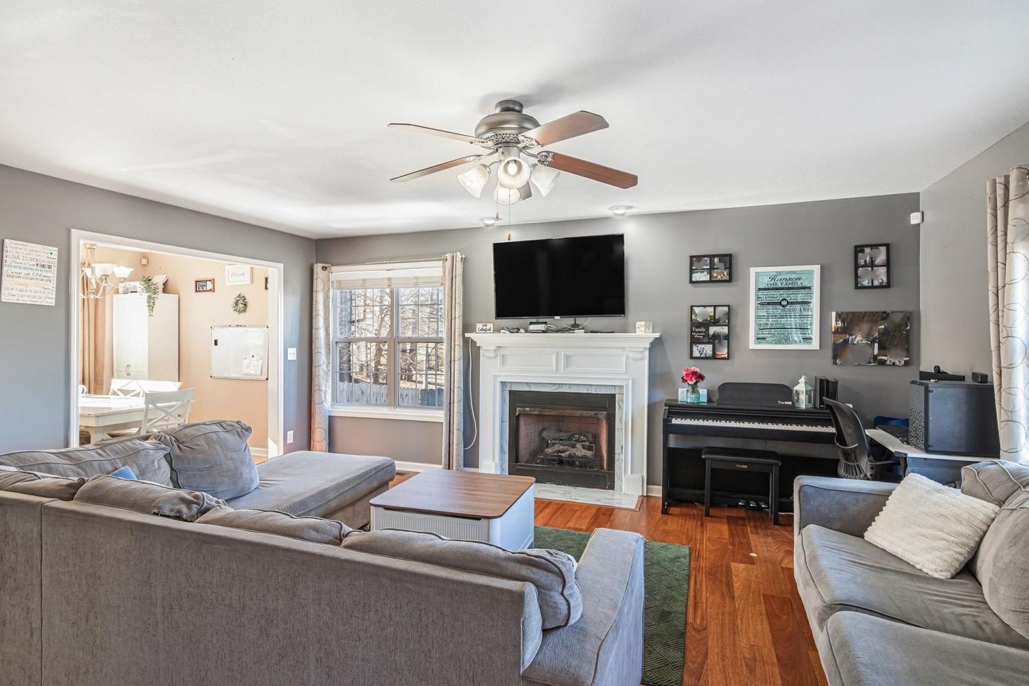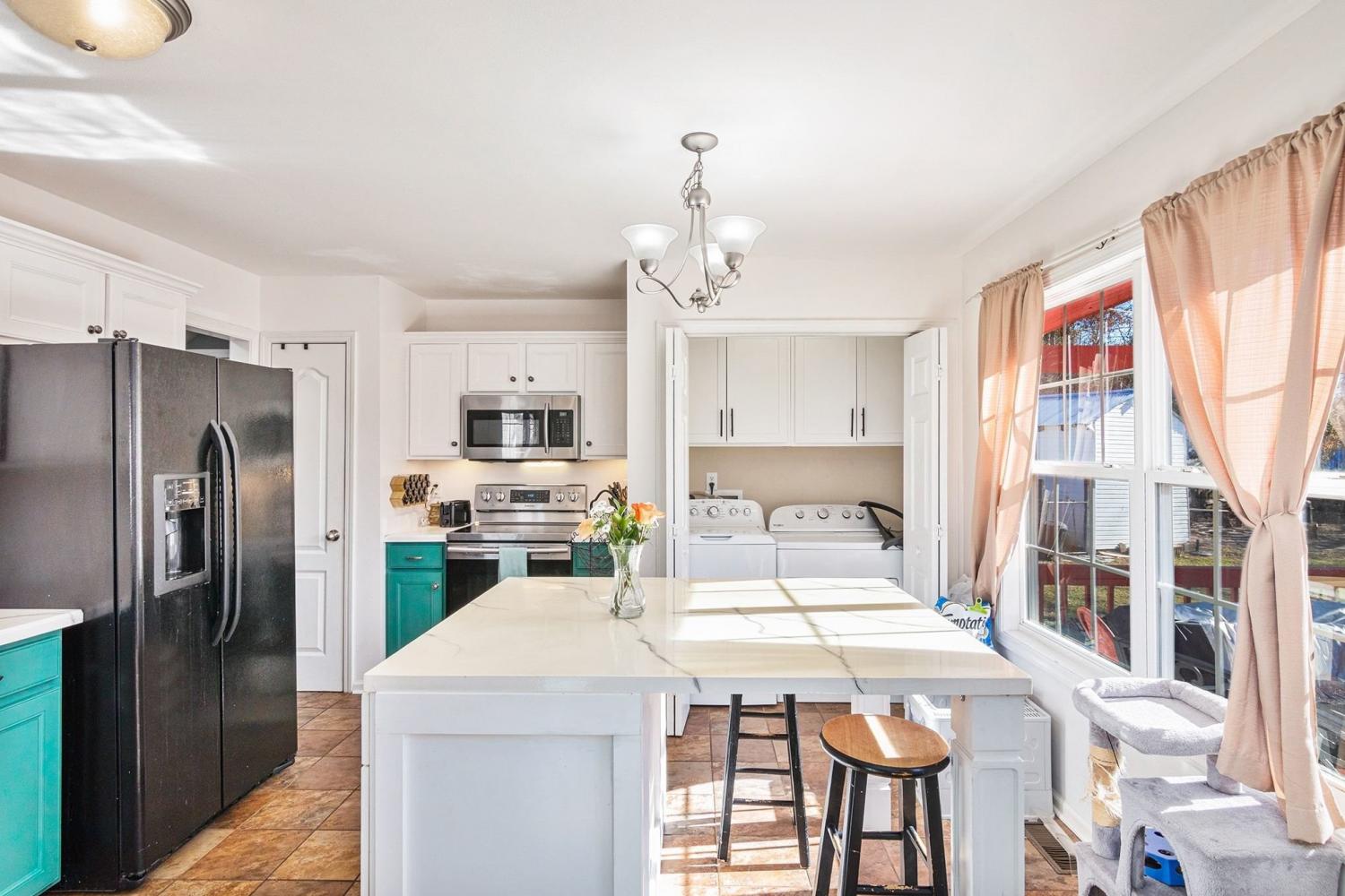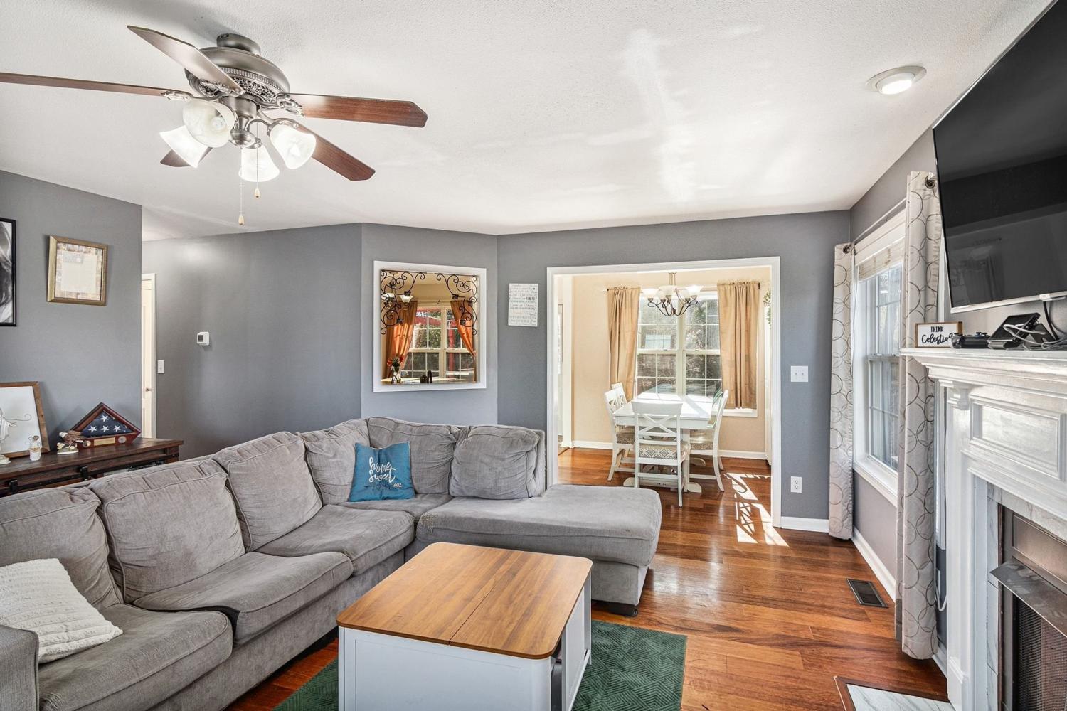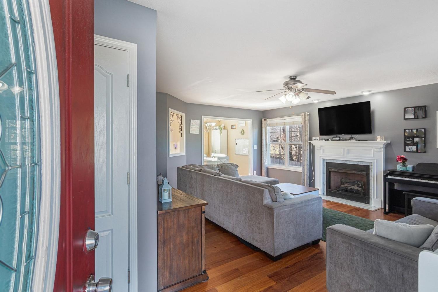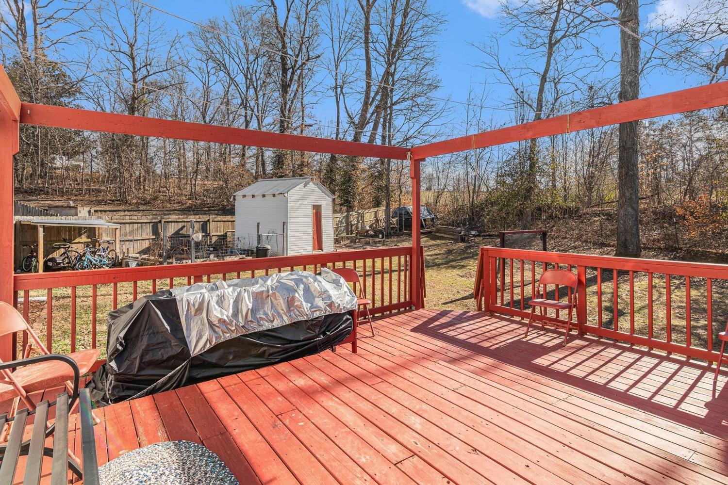 Tucked away on a quiet cul-de-sac with convenient access to the Post back gate and Land Between the Lakes, this stylish two-story contemporary home offers comfort, updates, and flexibility throughout. The open-concept living area is inviting and filled with natural light, highlighted by a cozy gas fireplace. The recently renovated kitchen features new epoxy countertops, custom cabinet pullouts, and stainless steel appliances, including a new dishwasher and garbage disposal. A breakfast nook, pantry, and an attached formal dining area complete the space, making it ideal for everyday living and entertaining. A convenient half bath is also located on the main level. Upstairs, you’ll find four bedrooms, including a spacious primary suite with a large en-suite bath and a relaxing tub. One oversized room with a closet offers exceptional versatility and can function as a fourth bedroom, bonus room, home gym, or office space. The upstairs full bathroom has been tastefully renovated, and the laundry room includes built-in cabinetry for added convenience and storage. The garage provides abundant storage with built-in racks and cabinets. Outside, enjoy a fully fenced, private backyard with no rear neighbors, offering a peaceful setting for outdoor living. A two-tiered deck overlooks the backyard and includes a covered sun shade that can remain with the property—ideal for relaxing during the spring and summer months. The yard also features a new 10x10 storage shed. Additionally, the chicken coop, fire pit, bike rack, and soccer goals are negotiable and may remain with the home.