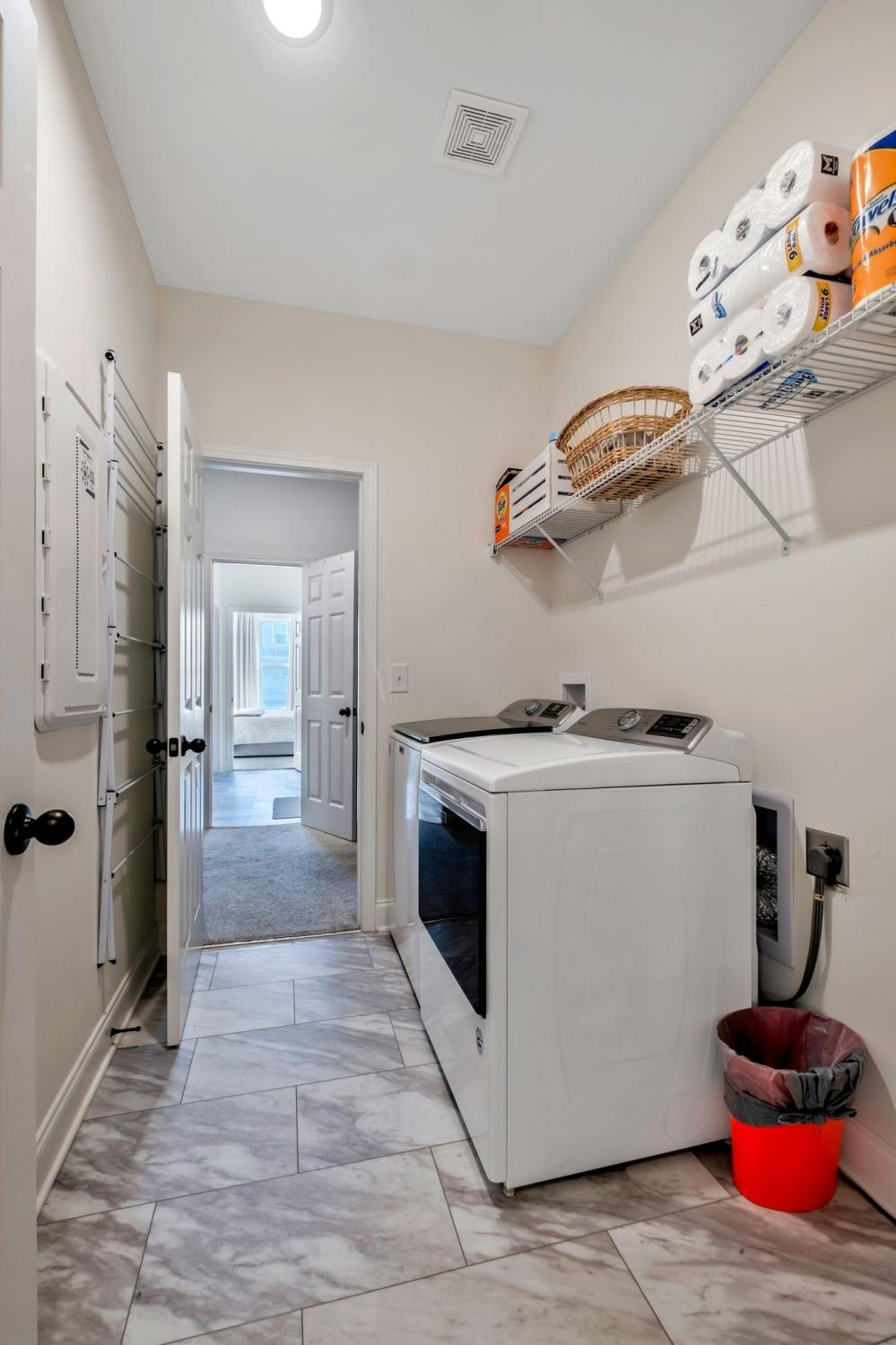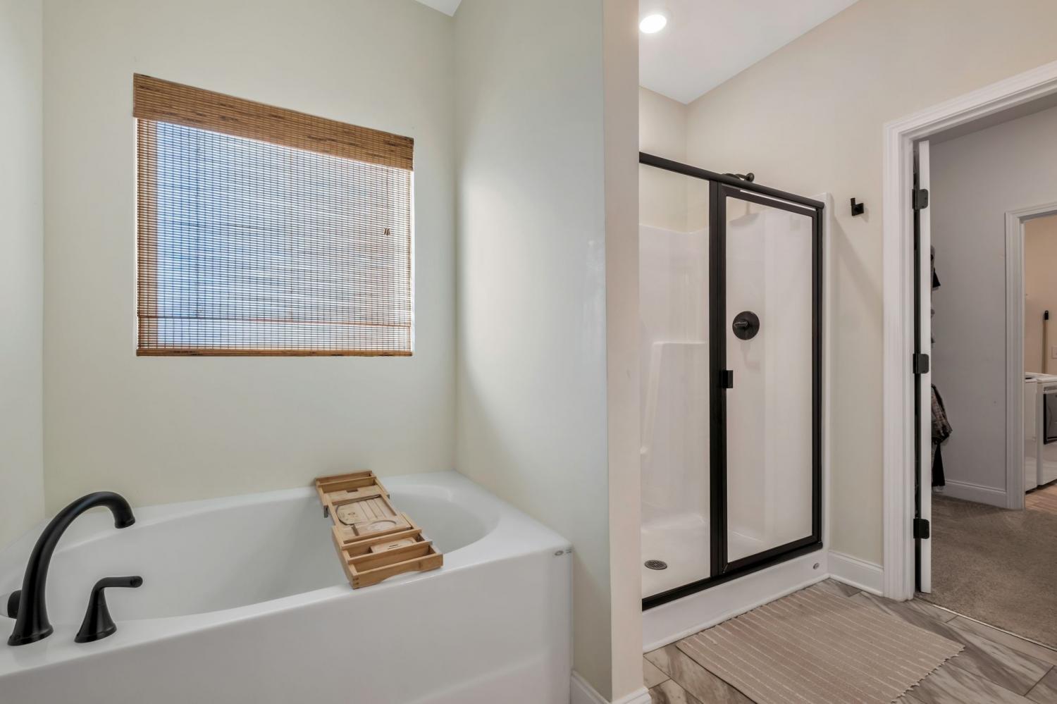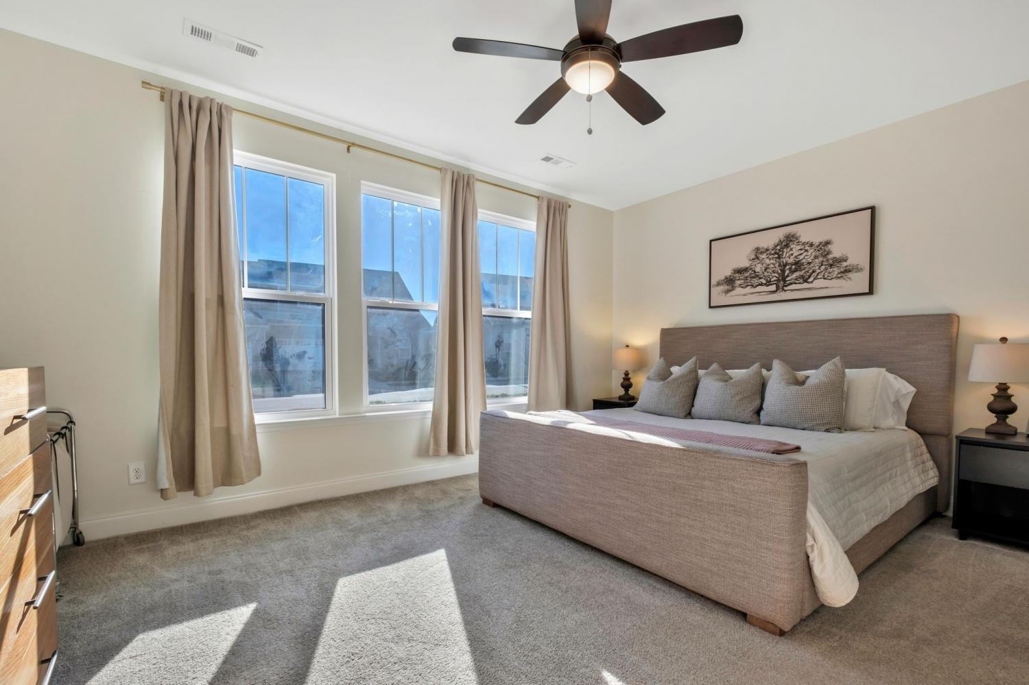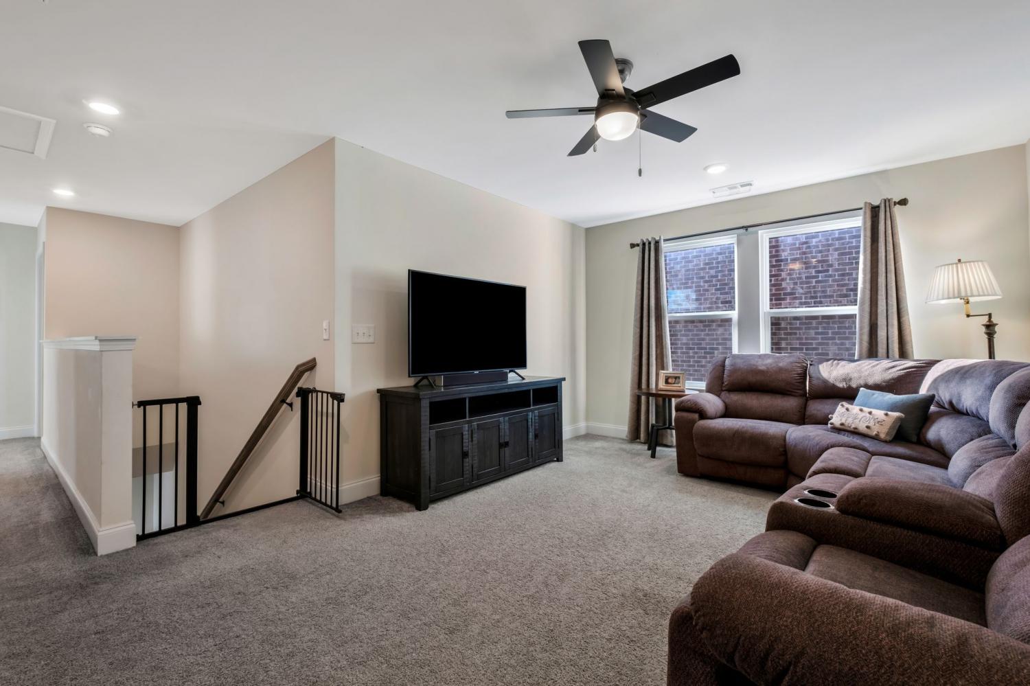 Discover modern living in The Preserve at Belle Pointe with this beautifully designed Hunter floorplan, built in 2023 and loaded with stylish upgrades. This 4BR/2.5BA home features a sought-after layout with the primary suite conveniently located on the main level, while upstairs offers three additional bedrooms, a full bath, and a spacious bonus room—perfect for a playroom, media room, or home office. The bright, open kitchen is a showstopper with quartz countertops, stainless steel appliances, farmhouse sink, a gas range, tile backsplash, dark cabinetry, and recessed & pendant lighting that elevates the space. The living room is warm and inviting with a stacked stone gas fireplace, creating the perfect setting for relaxing or entertaining. Enjoy outdoor living on the covered patio, and appreciate the convenience of a 2-car garage, low HOA fees, and a wealth of community amenities including a clubhouse, fitness center, park, playground, pool, and underground utilities. A stunning, move-in ready home in a vibrant community—this one truly has it all!