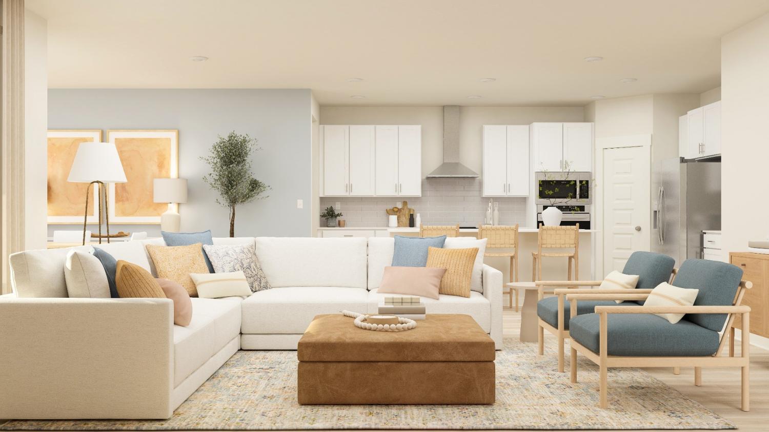 SINGLE-STORY HOME. With fantastic features including a mudroom near the garage entry, this single-level home boasts a low-maintenance layout designed for modern lifestyles. Two bedrooms are located off the foyer, leading to an open-concept floorplan with convenient access to a covered patio for seamless entertaining. The owner’s suite is tucked away at the back of the home, complete with a spa-inspired bathroom and generous walk-in closet. *Images are rendered. Actual configuration and features may vary.