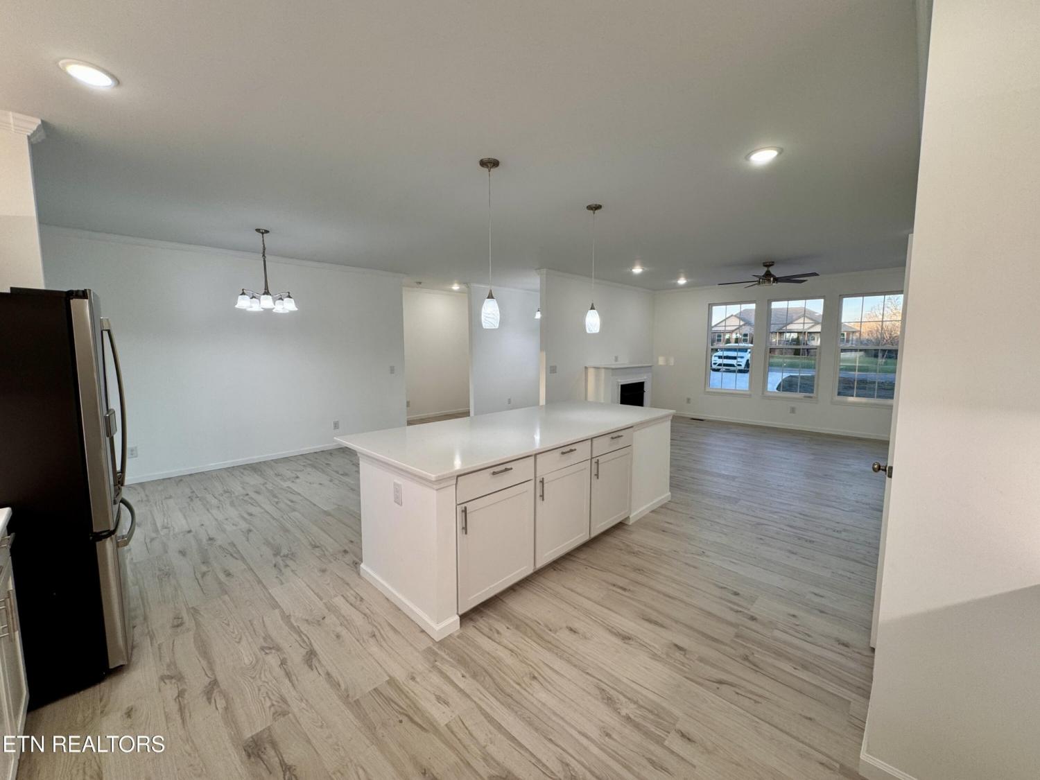 Welcome home to Shadow Mountain Estates, where peaceful views and thoughtful design come together in this beautiful new construction! Step inside to soaring nine foot ceilings, crown molding throughout, and an entry that immediately sets the tone with a front door featuring glass inlay, side lites, and a transom that fills the home with natural light. Every detail feels intentional and inviting. The heart of the home is the kitchen, designed to gather around. Granite countertops, stainless steel appliances, and a stunning 9.5ft island make it perfect for morning coffee, family meals, and effortless entertaining. The gas log fireplace adds warmth and charm to the living space, creating a cozy place to unwind. Each of the three bedrooms offers its own private bathroom, giving everyone space and comfort. A bonus room provides the perfect spot for a home office, creative space, or quiet retreat. The main suite is a true escape, featuring a generous 6ftx20ft walk in closet and a beautifully finished main bath with double bowl vanity, granite countertop, and a step in tile shower. Outside, a covered rear deck invites you to slow down and take it all in. Enjoy peaceful views of a small lake and beautiful mountain scenery, whether you are starting your day or winding down at sunset. A concrete driveway with turnaround and a spacious double garage with room for lawn equipment, a work area, and extra storage add everyday convenience. This is more than a house. It is a place to breathe, gather, and truly feel at home. *Note: taxes assessed on lot only. Buyer to verify all information and measurements before making an informed offer.