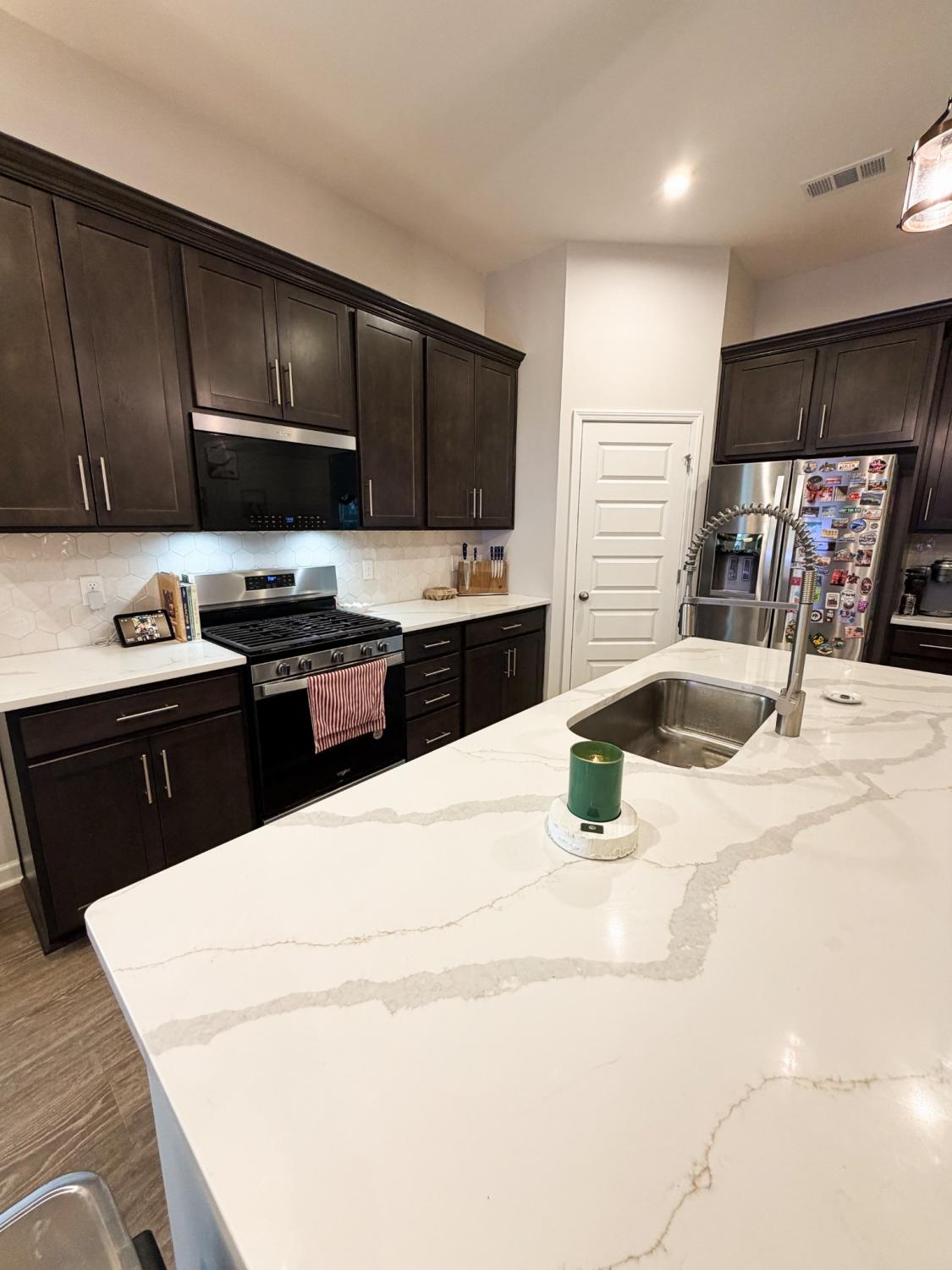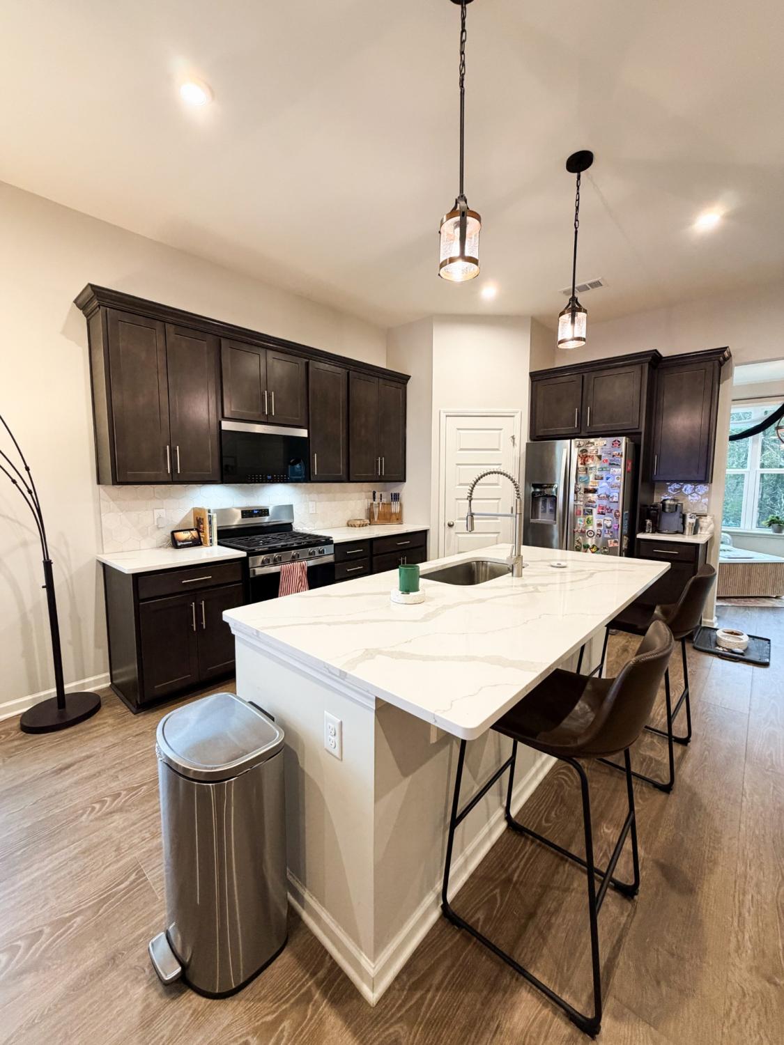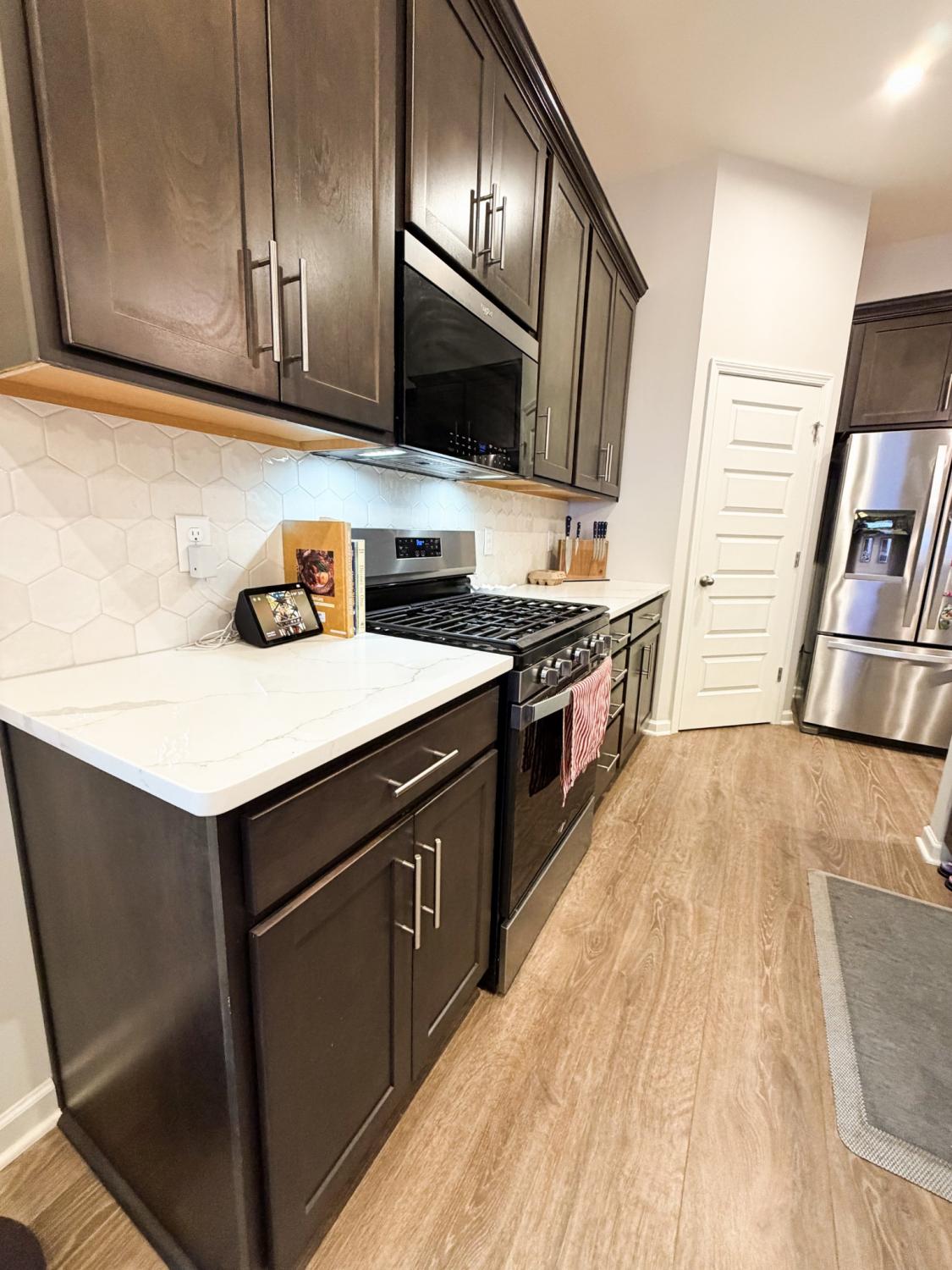 OWNER-AGENT Enjoy effortless, low-maintenance living with access to exceptional community amenities, including a pool, fitness center, clubhouse, scenic walking trails, and community-provided mowing and sprinkler services. This Energy Star–certified, newly built corner-lot home backs to peaceful wooded views, offering privacy and serenity. Thoughtful upgrades include a water softener system, extended rear patio, fully fenced backyard with added gate, a custom-designed laundry room, and a brand-new 2-in-1 microwave/air fryer combo—making this home as functional as it is inviting.
