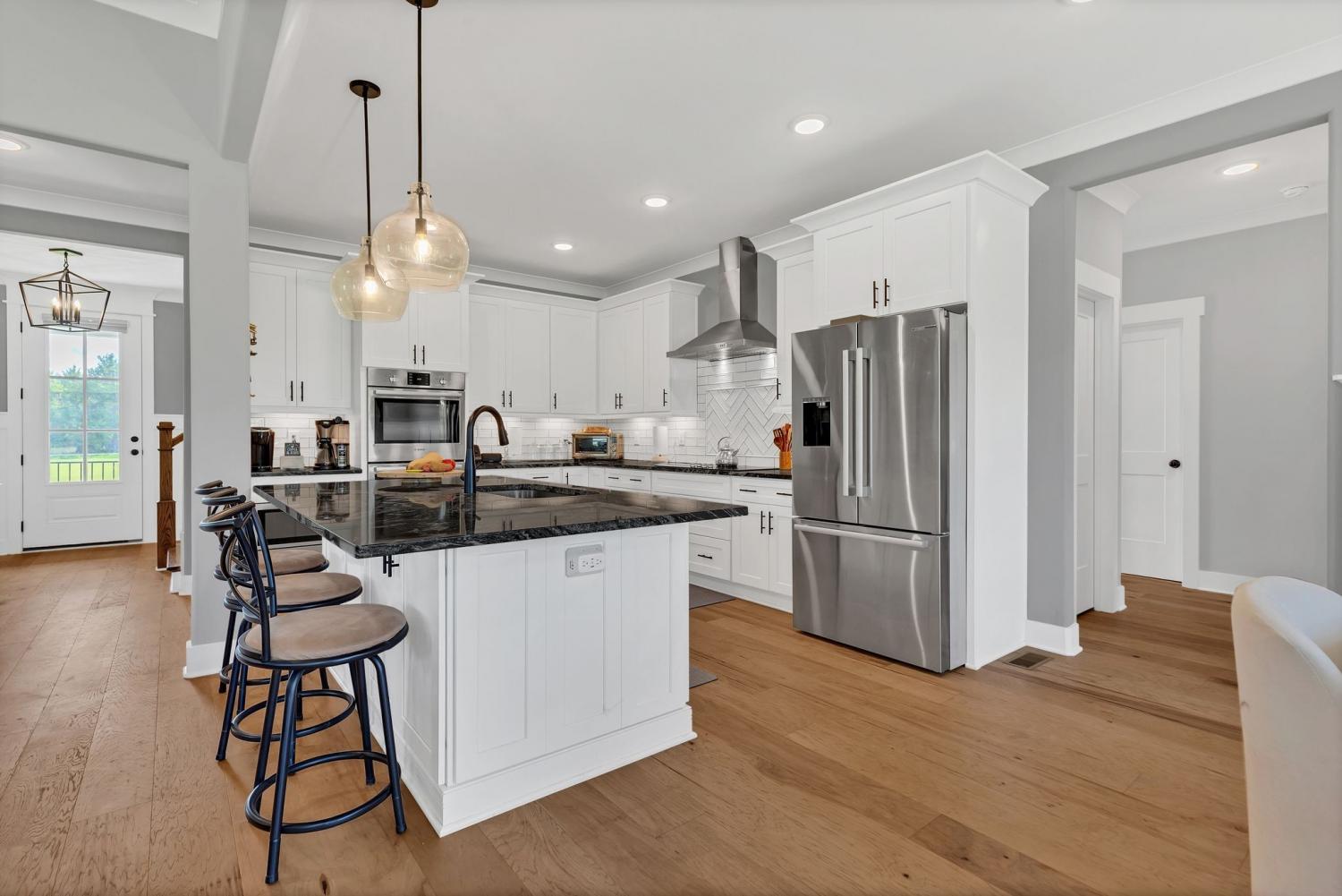 Step inside this captivating 4-bedroom, 3-bathroom home where luxury meets comfort. Set on a sprawling 2.33 acres, this property offers a peaceful retreat. The heart of the home is an open and inviting living area, centered around a large kitchen perfect for gatherings. A wonderful back patio extends your living space outdoors, ideal for enjoying quiet mornings or hosting friends. The main floor offers convenience and luxury with a spacious owner's suite and a flexible room that can serve as a home office or guest bedroom. Upstairs, two bedrooms plus a large bonus room provide endless possibilities for a playroom, media center, or gym. With custom trim work and thoughtful details, this home is ready for you to make it your own.