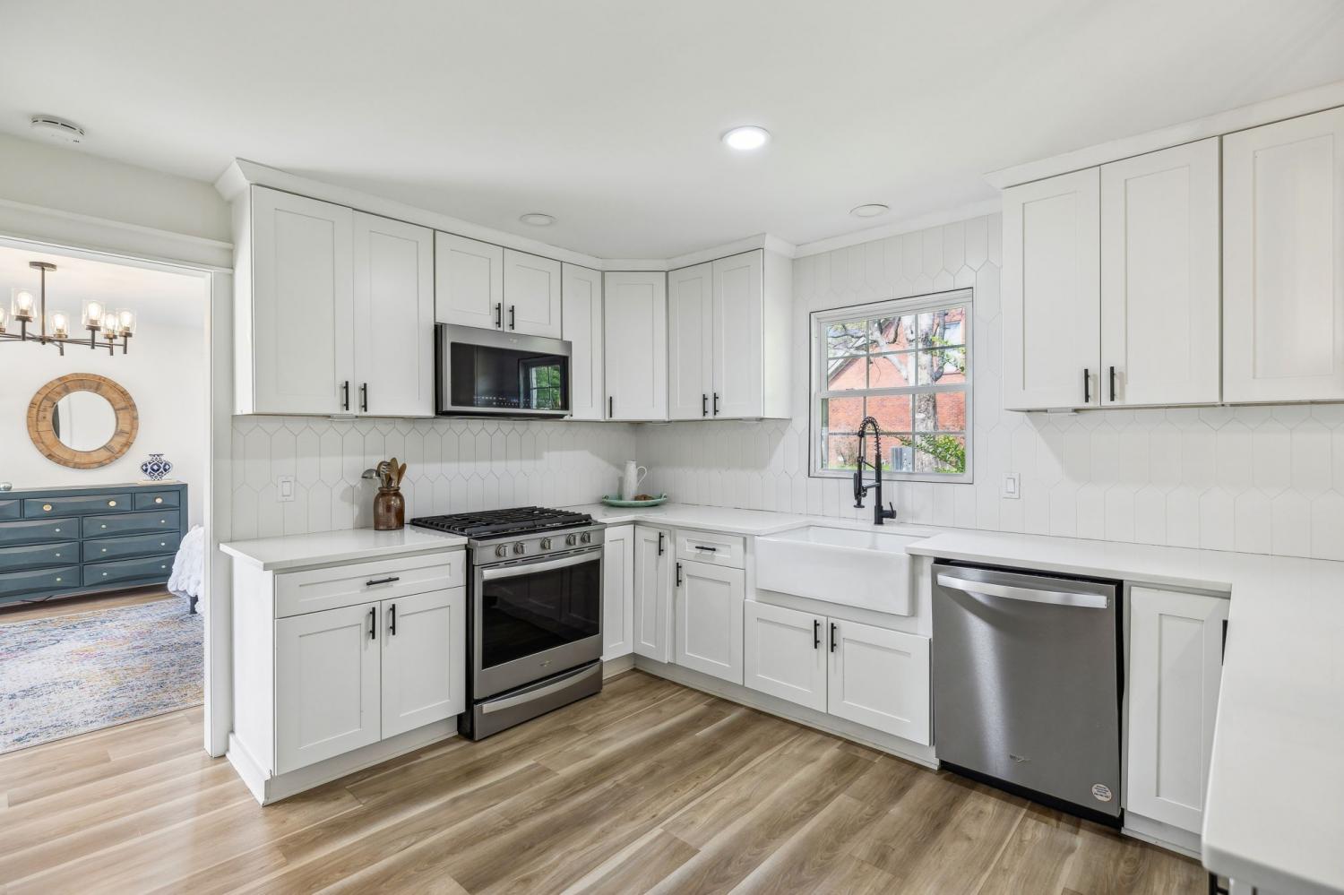Set on a nearly 0.75-acre lot with no HOA, this thoughtfully designed one-level home offers ample space & privacy. BRAND NEW ROOF AND GUTTERS! Transferrable 15-year manufacture/5-year labor warranty. Upon entry from the covered front porch with an easy single-step entry; you are welcomed with a stunning open floor plan filled with abundant natural light & luxury vinyl plank flooring throughout. The renovated kitchen is equipped with quartz countertops, tile backsplash, white cabinetry, farmhouse sink, gas range & stainless steel appliances. The living room showcases a cozy painted-brick gas fireplace, while the flex space off the kitchen could serve as an additional rec space, formal dining area or home office. There is also a Florida room off of the main living room - providing a perfect retreat for year-round enjoyment. Both bathrooms have been beautifully updated with dual vanities & tile shower (shower/tub combo in guest bathroom) with glass doors. The spacious fenced-in backyard with covered patio is the ideal place to enjoy the beautiful backyard. Additional features include a 2-car side-attached garage with epoxied floors & extra storage, updated light fixtures & recessed lighting. Prime Murfreesboro location just 7 mins from MTSU, 13 mins from The Avenue Murfreesboro & 35 mins from Downtown Nashville/BNA.