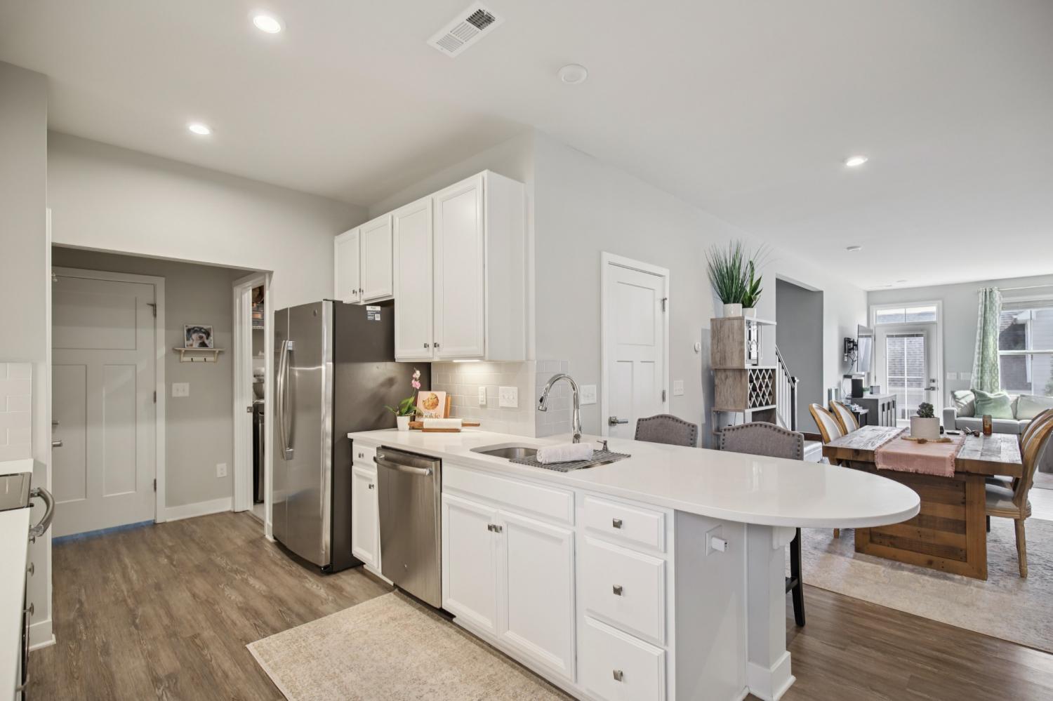 All of the upgrades being the original builders MODEL HOME, "turn-key" END UNIT, (FIRST FLOOR primary bedroom downstairs) townhome in the heart of Goodlettsville! This 3-bedroom, 2.5-bathroom townhome offers over 1,700 square feet of open and inviting living space. A BRAND NEW HVAC was just installed! Pull into your 2 car garage, WITH a one-of-a-kind service door! Also, enjoy your RainBird irrigation system! The main level is upgraded to luxury vinyl plank flooring, a bright kitchen with white cabinets, designer backsplash, and soft close drawers, gorgeous granite countertops, plus an open dining and family room that makes entertaining effortless. Relax and retreat in your first floor private owner’s suite featuring an oversized closet, and a spa-like oversized shower. Enjoy the convenience of a first floor laundry room! Two additional bedrooms, another full bath round out the second floor, complete with plush carpet for added comfort. Enjoy smart living with a Google Nest thermostat, and take advantage of the Goodlettsville amenities just around the corner including pickleball courts, a playground, and walking trails—all just steps from your front door. Perfectly located in the heart of Goodlettsville, you’re just steps away from Peay Park, Moss-Wright Park, Fenway's Dog Park, shopping, dining, and downtown Nashville. With quick access to the airport and major highways, it’s a commuter’s dream. Bonus...its your choice- Publix or Kroger, and pick up a Starbucks on the way! Don’t miss this opportunity to own a home that blends comfort, convenience, and style!