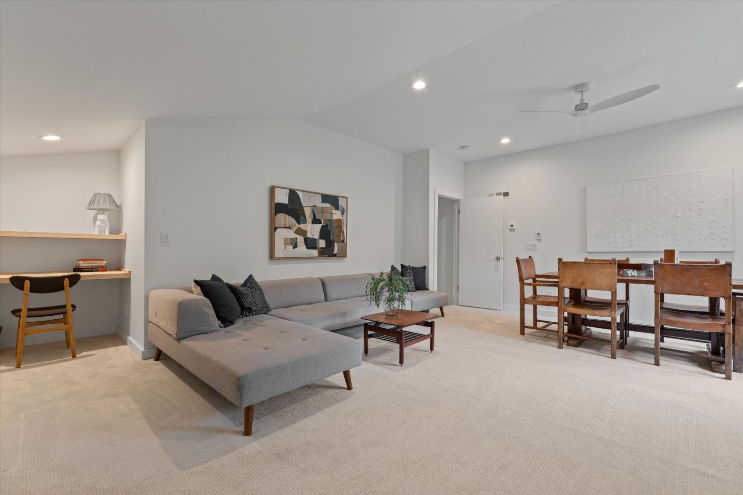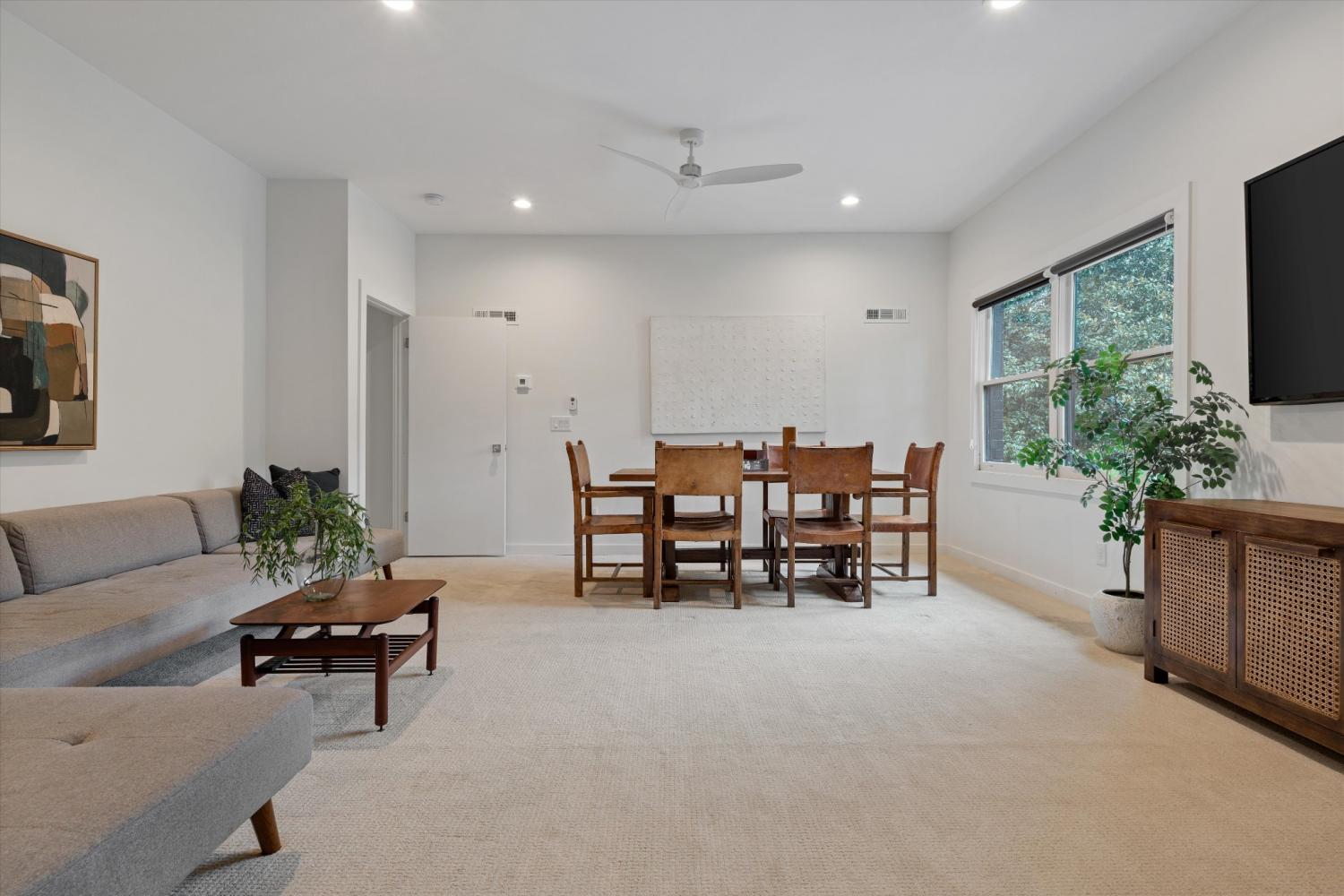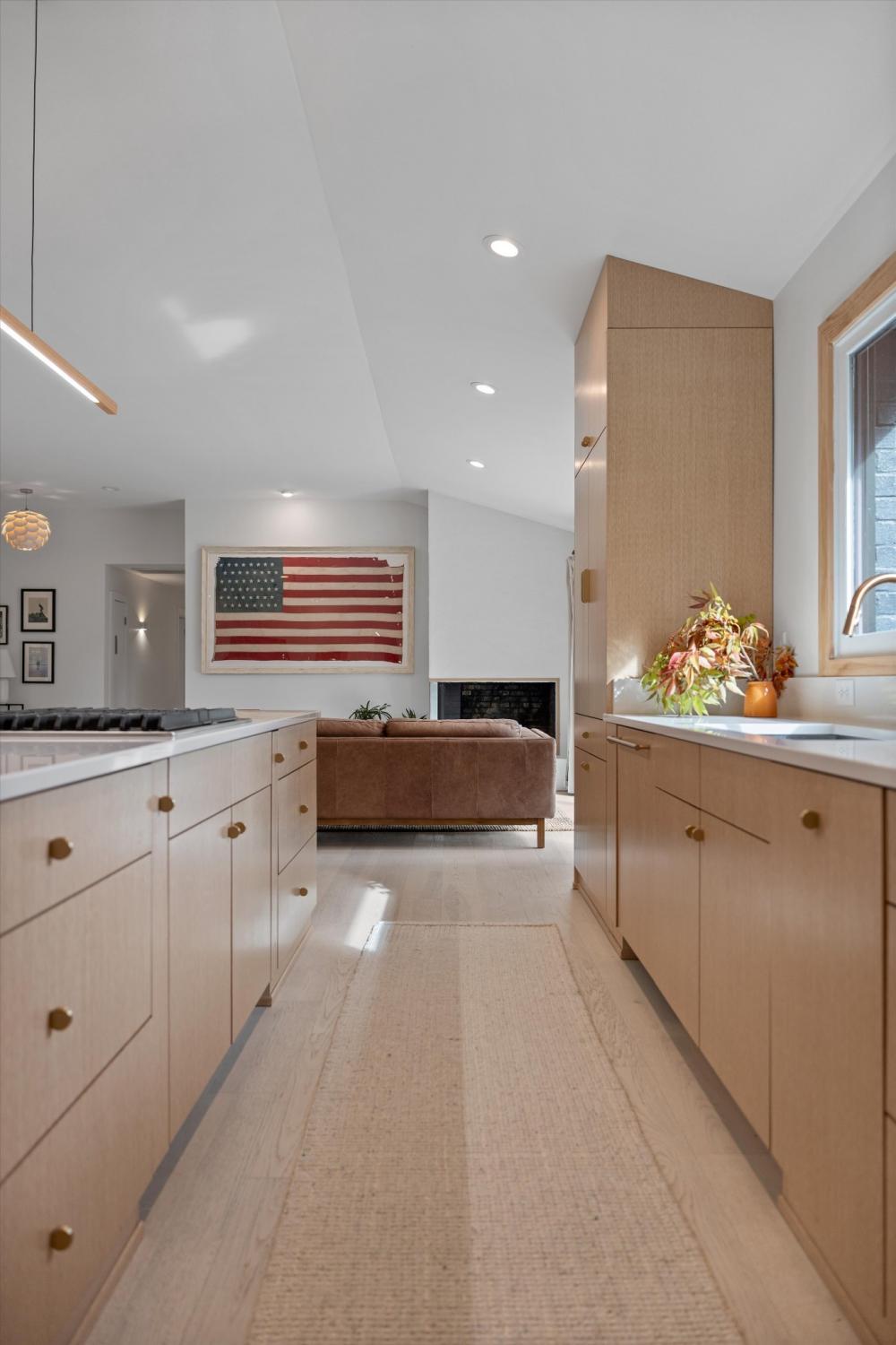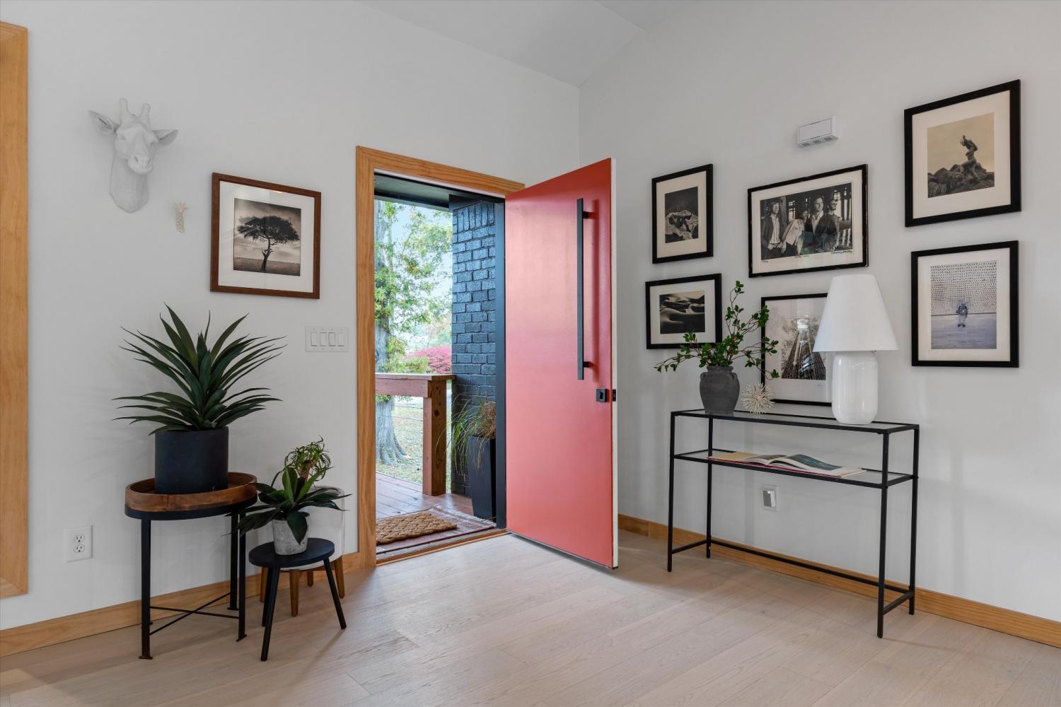 Warmth, light, and intention define this fully reimagined mid-century modern home in Brentwood’s Wildwood neighborhood. From the moment you arrive, the Hermès orange front door signals a space that is confident, creative, and thoughtfully curated. Inside, open living areas feel both restorative and inviting, with a seamless flow that allows natural light to move effortlessly throughout the home. Carefully selected finishes balance texture and simplicity, creating a grounded and livable aesthetic. Original 1960s flooring has been preserved in select areas, showcasing the narrow plank detail that speaks to the home’s architectural roots. The living room is anchored by a smooth plaster fireplace and custom cabinetry, offering a refined yet relaxed setting for everyday living. In the kitchen, a dramatic picture window overlooks the private backyard and mature magnolia trees, while layered wood tones, updated tile, and a functional layout create a space designed for gathering and daily use alike. Situated on nearly an acre, the property offers a rare sense of openness and privacy. A newly built deck extends the living space outdoors, ideal for morning routines, casual dinners, or time spent enjoying the surrounding landscape. The primary suite serves as a quiet retreat with two closets and a calm, neutral palette. Wildwood is one of Brentwood’s most established and well-loved neighborhoods, known for its wide streets, mature trees, and strong community feel. With the Little Harpeth River nearby and priority access to the Brentwood Swim and Tennis Club, this home offers a lifestyle that feels both connected and unhurried. A thoughtful blend of original character and modern updates, this property is designed to support a relaxed, intentional way of living.