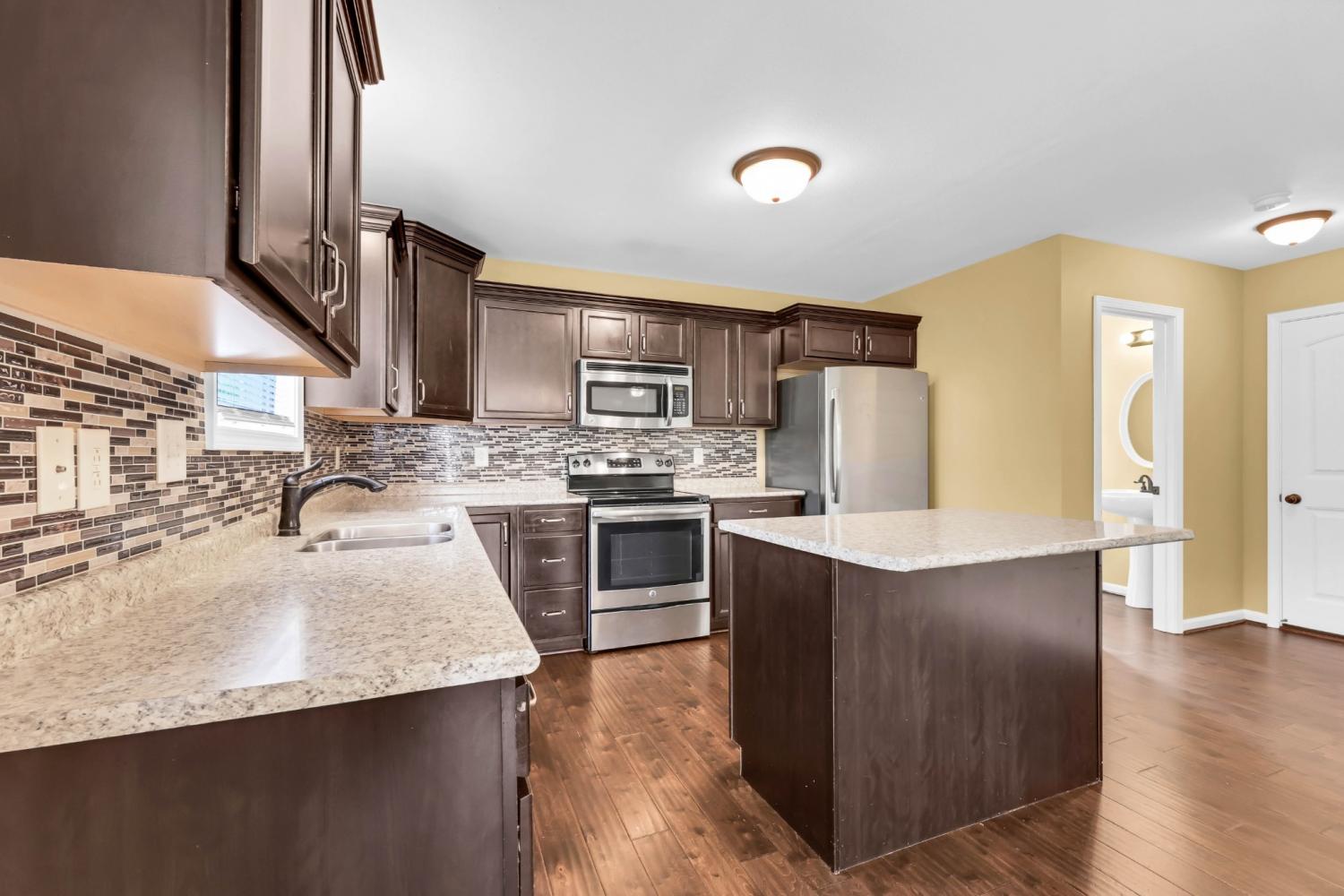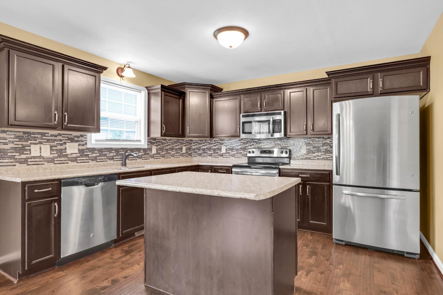 Location, layout, & move-in ready, 992 Dwight Eisenhower Way has it all! The Peachtree subdivision's desirable location offers quick and convenient access to Downtown Clarksville, Fort Campbell, and all major thoroughfares. The open-plan first floor features durable engineered hardwood floors, a gas fireplace, spacious living area, and a half-bathroom. The kitchen features plenty of cabinet and counter space, an island, built-in desk space, spacious dining area, pantry, and stainless steel appliances. Upstairs the primary bedroom includes a walk-in closet and en-suite bathroom with double vanities. Bedrooms 2 and 3 are also located upstairs along with the full 2nd bathroom and conveniently placed laundry room. The two car garage is not only spacious but functional & includes built-in storage shelves and workspaces. A covered back patio offers a cool place to enjoy the privacy provided by a tree-lined, fenced back yard. Freshly painted in 2025, this well-maintained property is sure to impress.