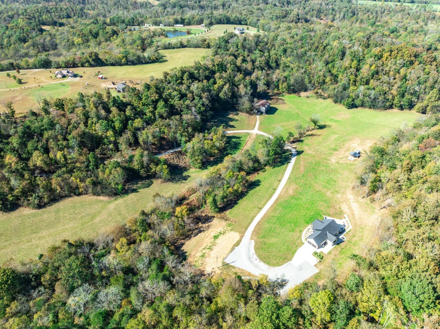 Welcome to the crown jewel of Giles County. An extraordinary secluded 61 acres. Grounds are meticulously maintained with 35 of the 61 acres beautifully manicured pastures. ½ mile park like driveway with Old World charm. 2 ponds. Several wet weather springs. Step outdoors to your very own private sanctuary. Hiking trails and a natural habitat for deer, turkey, wild game. The acreage also offers multiple building sites some already established with power available. An incredibly rare opportunity. This like new modern design custom home offers 4 bedrooms 3 full baths and 1 half bath. This all brick sanctuary home has hardwood floors all on the main level. Smart home automation and security system. Fully connected home with both Fiber and Starlink internet. Poured concrete basement walls. Concrete storm-safe-room w/vault door. Whole home generator system. Porches and patios around . A well preserved Tobacco Barn from the turn of the century with a hand made brick floor that is stunning. Luxury chicken house with firepit and boulder seating area. Covered outdoor kitchen area with built-in grill. Breath taking views from all directions. So much more! This amazing farm is in the greenbelt.