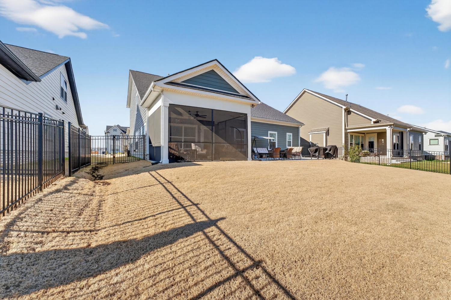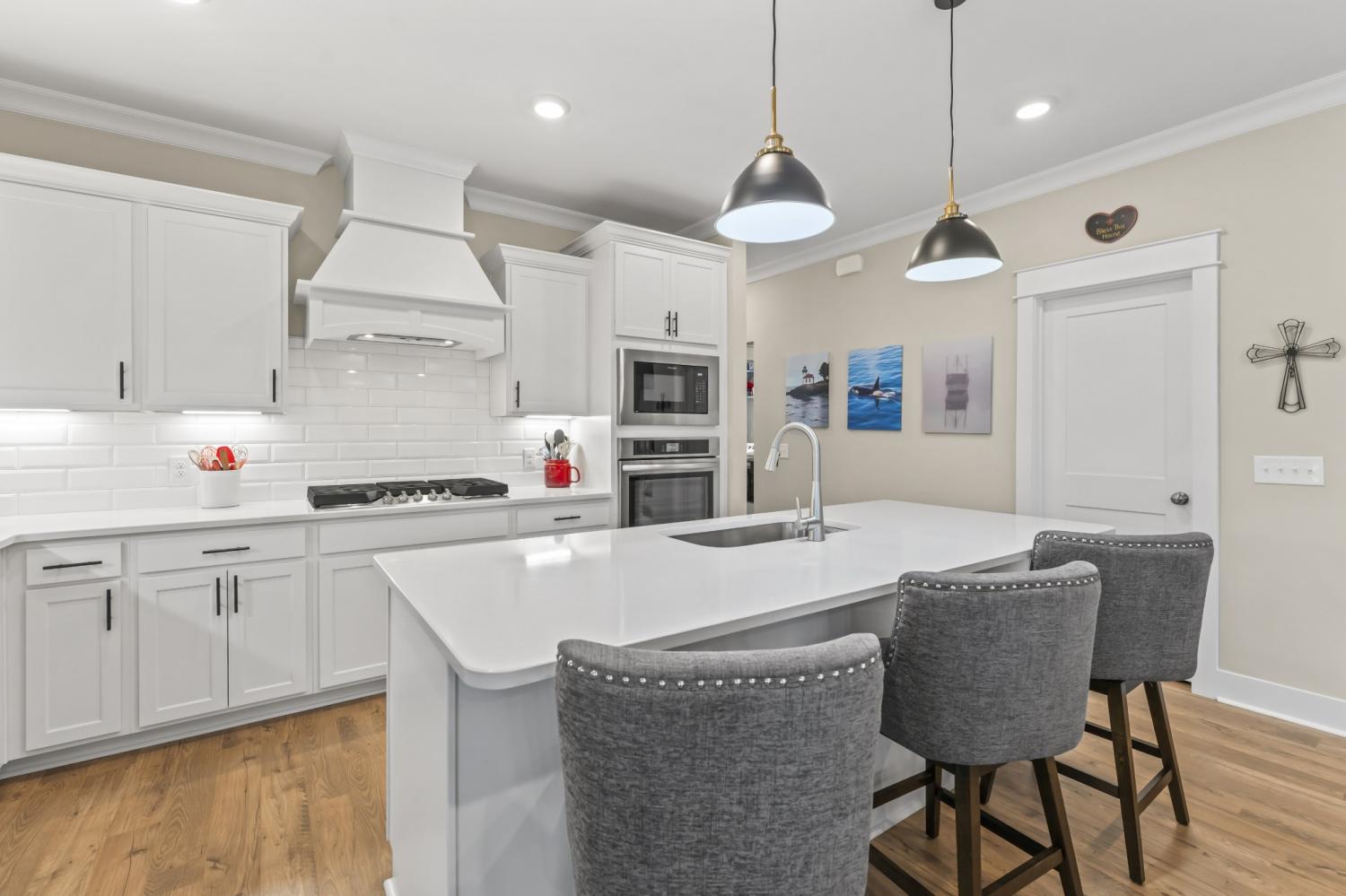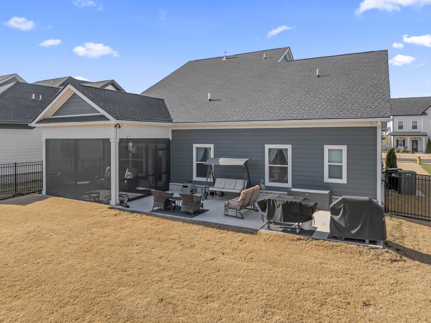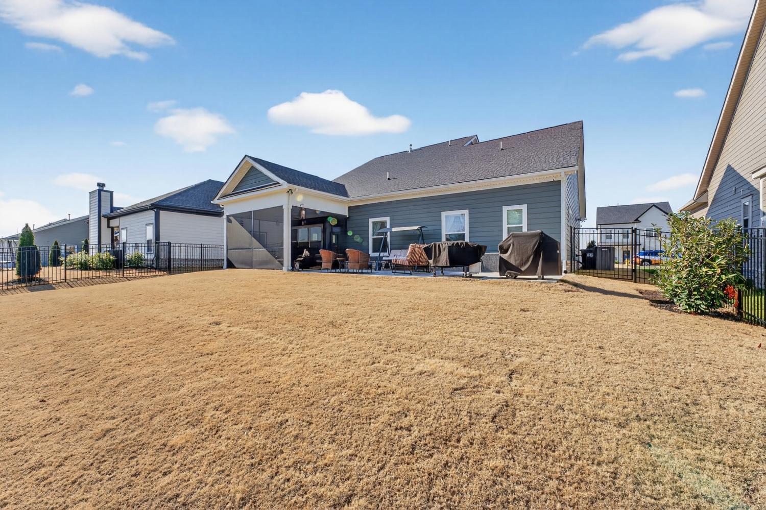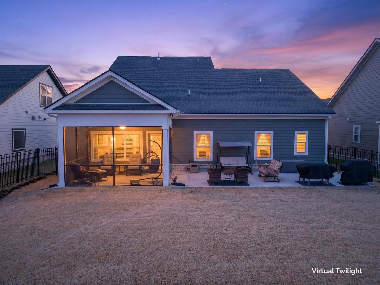 Welcome to this beautifully crafted home in the desirable Shelton Square, built by the reputable Paran Homes & offering 2,516 sf of thoughtfully designed living space. Featuring 4 bedrooms & 3 full baths, this home perfectly balances elegance, comfort, & functionality. The main level boasts an open-concept floor plan with tall ceilings & laminate flooring that resembles warm oak, creating an inviting atmosphere ideal for both everyday living & entertaining. The chef’s kitchen is a true centerpiece, complete with granite countertops, white subway tile, SS appliances, gas range, under-cabinet lighting, & a large walk-in pantry. Just off the kitchen, the laundry room is conveniently located on the main level. The two bedrooms & two full baths located downstairs, include one currently used as a home gym, & the other is the spacious primary suite featuring double vanities, a separate soaking tub, & walk-in tiled shower. Upstairs, you’ll find two additional bedrooms—both with ample closets—an inviting bonus room, & a full bath with linen closet, offering privacy & flexibility for guests or family members. Extra storage can be found in the walk-out attic or large under-stairs closet. Enjoy cozy evenings by the gas fireplace or relax outdoors on the expanded covered & screened patio overlooking a rare & serene 'forever wooded' area that ensures lasting privacy. An elegant wrought iron fence fully encloses the backyard. Additional highlights include Hardy board siding, tankless WH, irrigation system, whole-home water softening system, ADT security system, floodlights on the front & back, & high-speed internet. The two-car garage features insulated doors & smart programmable openers. As part of Shelton Square, residents enjoy access to a community pool, playground, basketball court, clubhouse with fitness center, & scenic walking trails—all maintained by the HOA. This exceptional home blends quality construction, modern amenities, & a vibrant community lifestyle. Welcome!