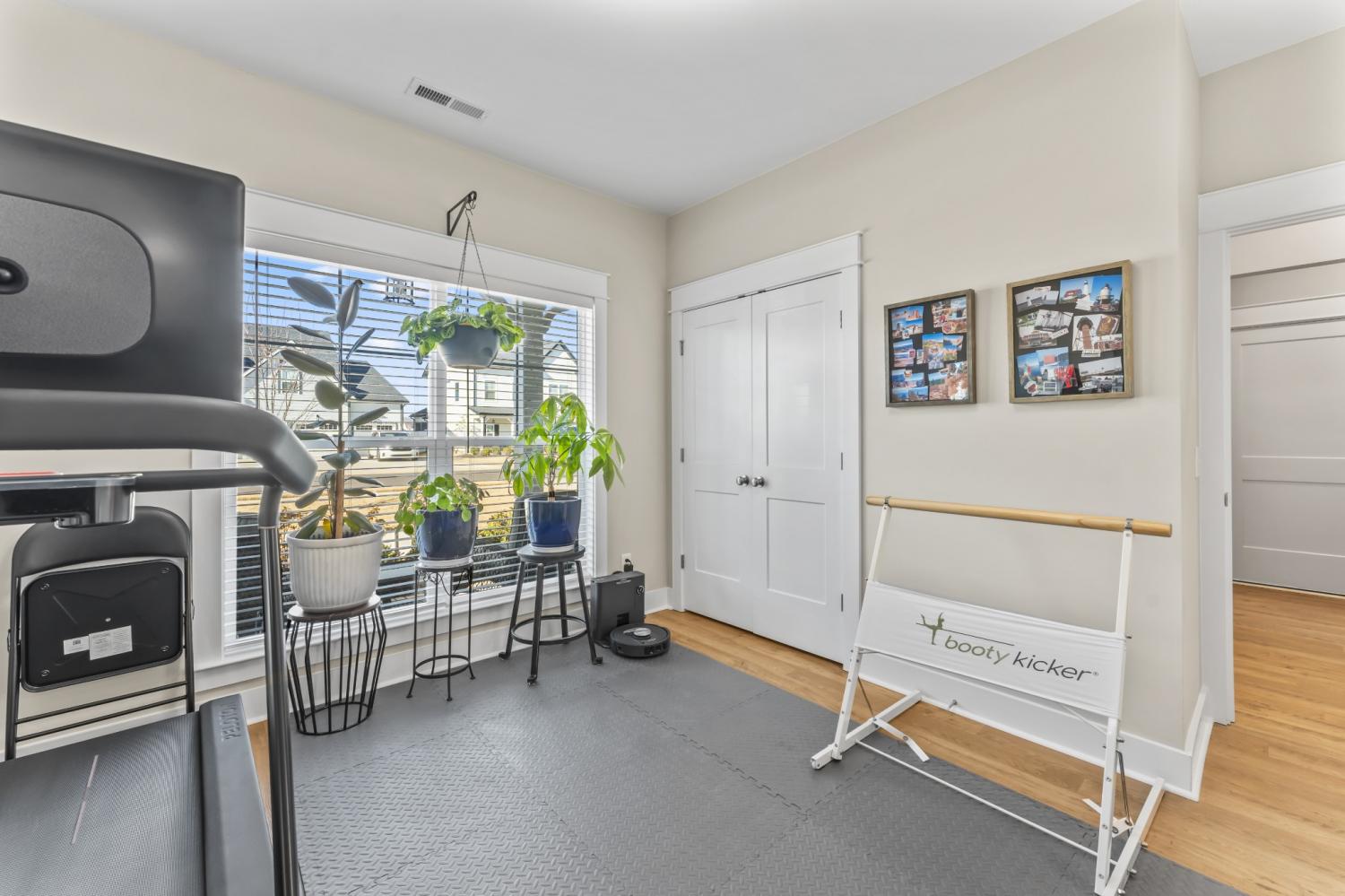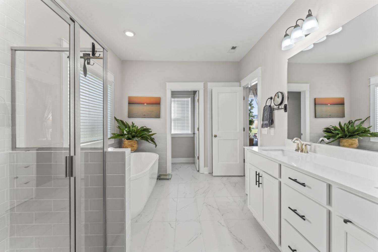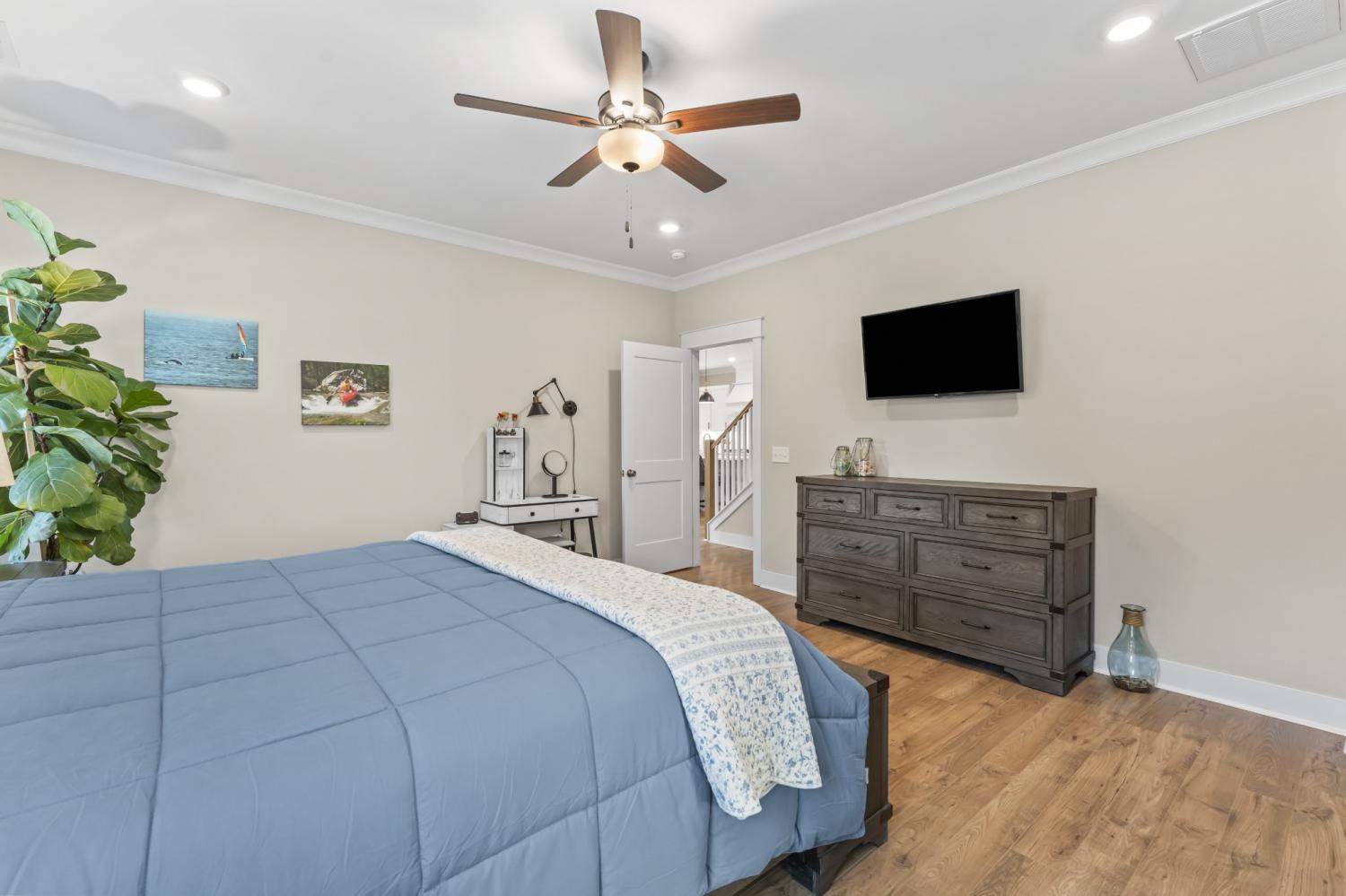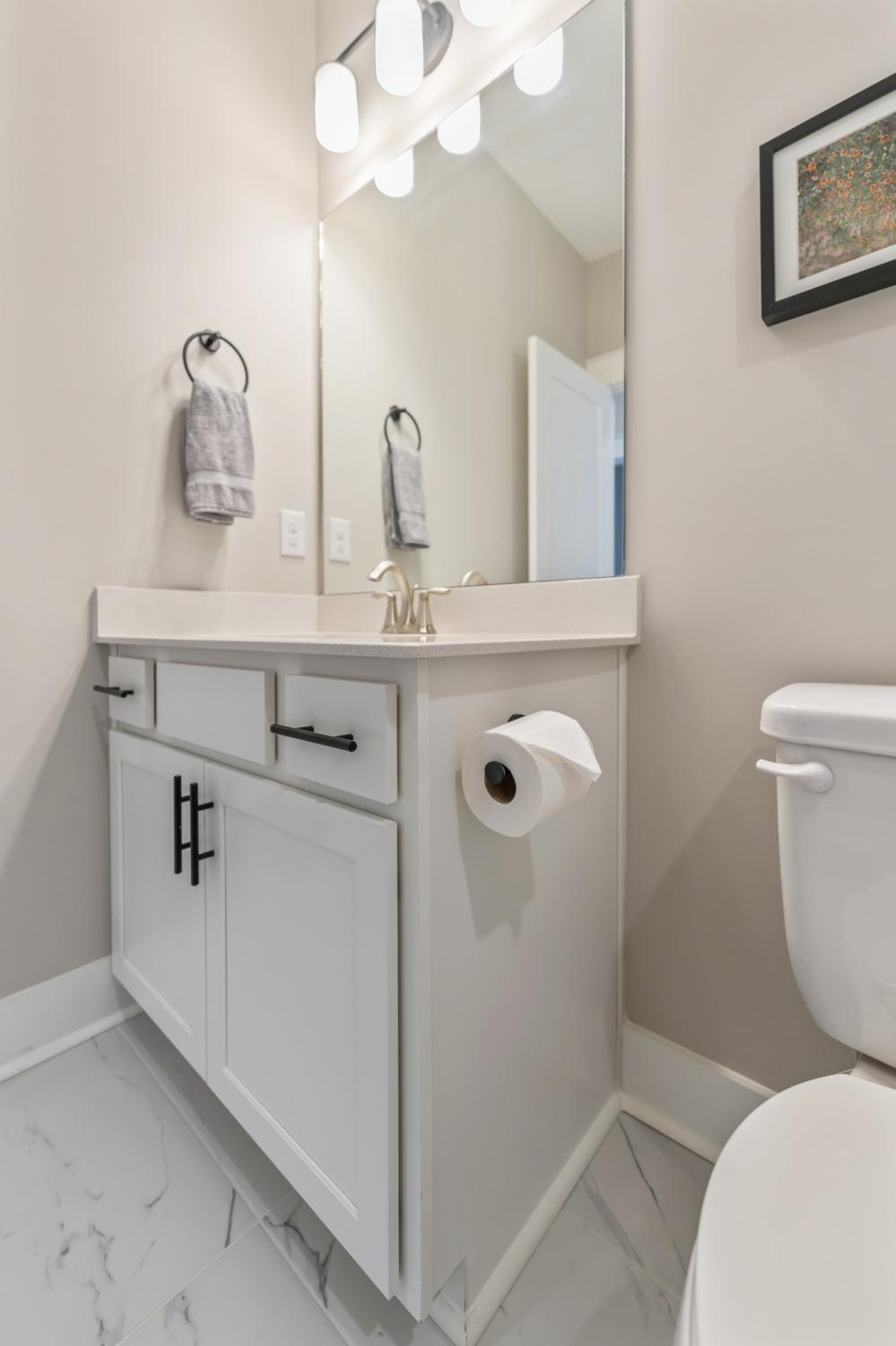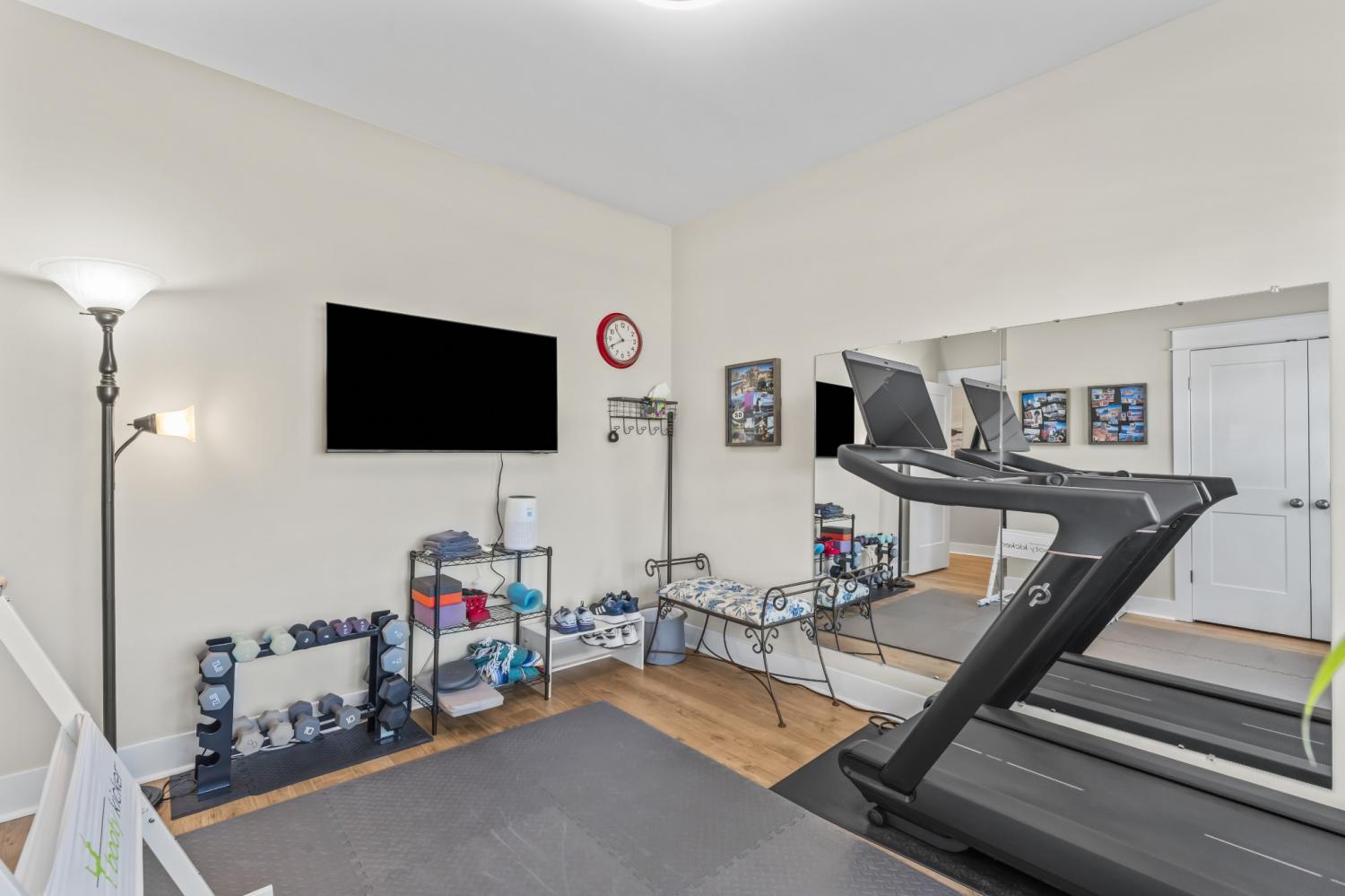 Welcome to this beautifully crafted home in the desirable Shelton Square, built by the reputable Paran Homes & offering 2,516 sf of thoughtfully designed living space. Featuring 4 bedrooms & 3 full baths, this home perfectly balances elegance, comfort, & functionality. The main level boasts an open-concept floor plan with tall ceilings & laminate flooring that resembles warm oak, creating an inviting atmosphere ideal for both everyday living & entertaining. The chef’s kitchen is a true centerpiece, complete with granite countertops, white subway tile, SS appliances, gas range, under-cabinet lighting, & a large walk-in pantry. Just off the kitchen, the laundry room is conveniently located on the main level. The two bedrooms & two full baths located downstairs, include one currently used as a home gym, & the other is the spacious primary suite featuring double vanities, a separate soaking tub, & walk-in tiled shower. Upstairs, you’ll find two additional bedrooms—both with ample closets—an inviting bonus room, & a full bath with linen closet, offering privacy & flexibility for guests or family members. Extra storage can be found in the walk-out attic or large under-stairs closet. Enjoy cozy evenings by the gas fireplace or relax outdoors on the expanded covered & screened patio overlooking a rare & serene 'forever wooded' area that ensures lasting privacy. An elegant wrought iron fence fully encloses the backyard. Additional highlights include Hardy board siding, tankless WH, irrigation system, whole-home water softening system, ADT security system, floodlights on the front & back, & high-speed internet. The two-car garage features insulated doors & smart programmable openers. As part of Shelton Square, residents enjoy access to a community pool, playground, basketball court, clubhouse with fitness center, & scenic walking trails—all maintained by the HOA. This exceptional home blends quality construction, modern amenities, & a vibrant community lifestyle. Welcome!