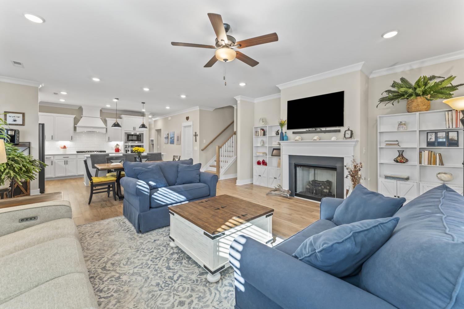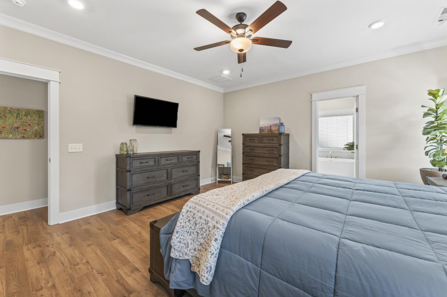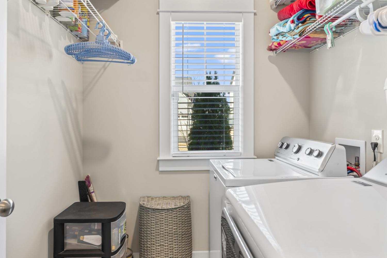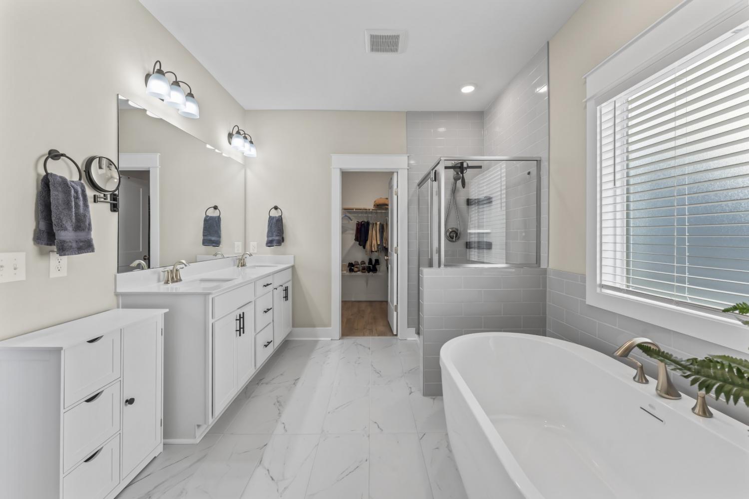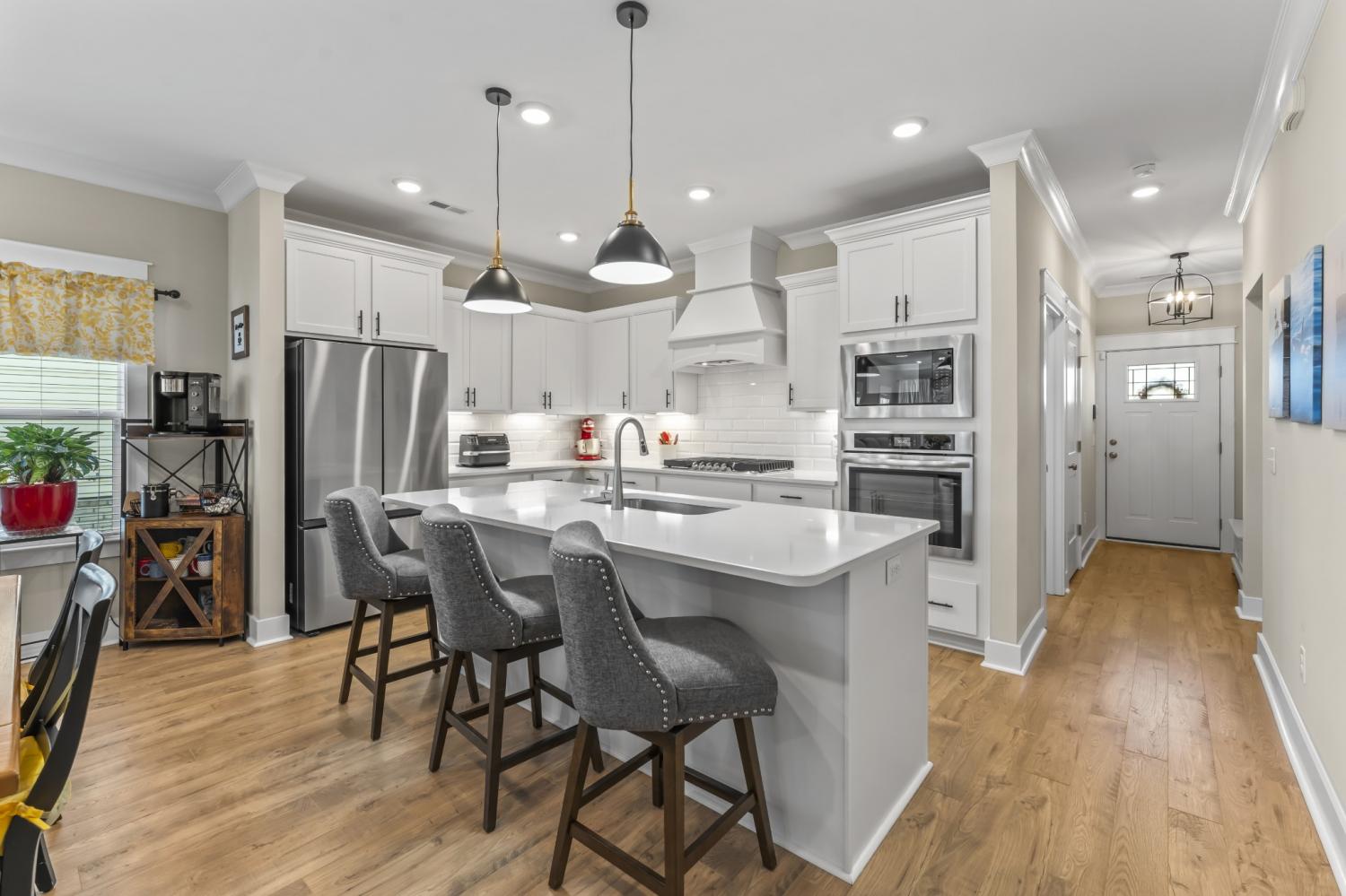 Welcome to this beautifully crafted home in the desirable Shelton Square, built by the reputable Paran Homes & offering 2,516 sf of thoughtfully designed living space. Featuring 4 bedrooms & 3 full baths, this home perfectly balances elegance, comfort, & functionality. The main level boasts an open-concept floor plan with tall ceilings & laminate flooring that resembles warm oak, creating an inviting atmosphere ideal for both everyday living & entertaining. The chef’s kitchen is a true centerpiece, complete with granite countertops, white subway tile, SS appliances, gas range, under-cabinet lighting, & a large walk-in pantry. Just off the kitchen, the laundry room is conveniently located on the main level. The two bedrooms & two full baths located downstairs, include one currently used as a home gym, & the other is the spacious primary suite featuring double vanities, a separate soaking tub, & walk-in tiled shower. Upstairs, you’ll find two additional bedrooms—both with ample closets—an inviting bonus room, & a full bath with linen closet, offering privacy & flexibility for guests or family members. Extra storage can be found in the walk-out attic or large under-stairs closet. Enjoy cozy evenings by the gas fireplace or relax outdoors on the expanded covered & screened patio overlooking a rare & serene 'forever wooded' area that ensures lasting privacy. An elegant wrought iron fence fully encloses the backyard. Additional highlights include Hardy board siding, tankless WH, irrigation system, whole-home water softening system, ADT security system, floodlights on the front & back, & high-speed internet. The two-car garage features insulated doors & smart programmable openers. As part of Shelton Square, residents enjoy access to a community pool, playground, basketball court, clubhouse with fitness center, & scenic walking trails—all maintained by the HOA. This exceptional home blends quality construction, modern amenities, & a vibrant community lifestyle. Welcome!