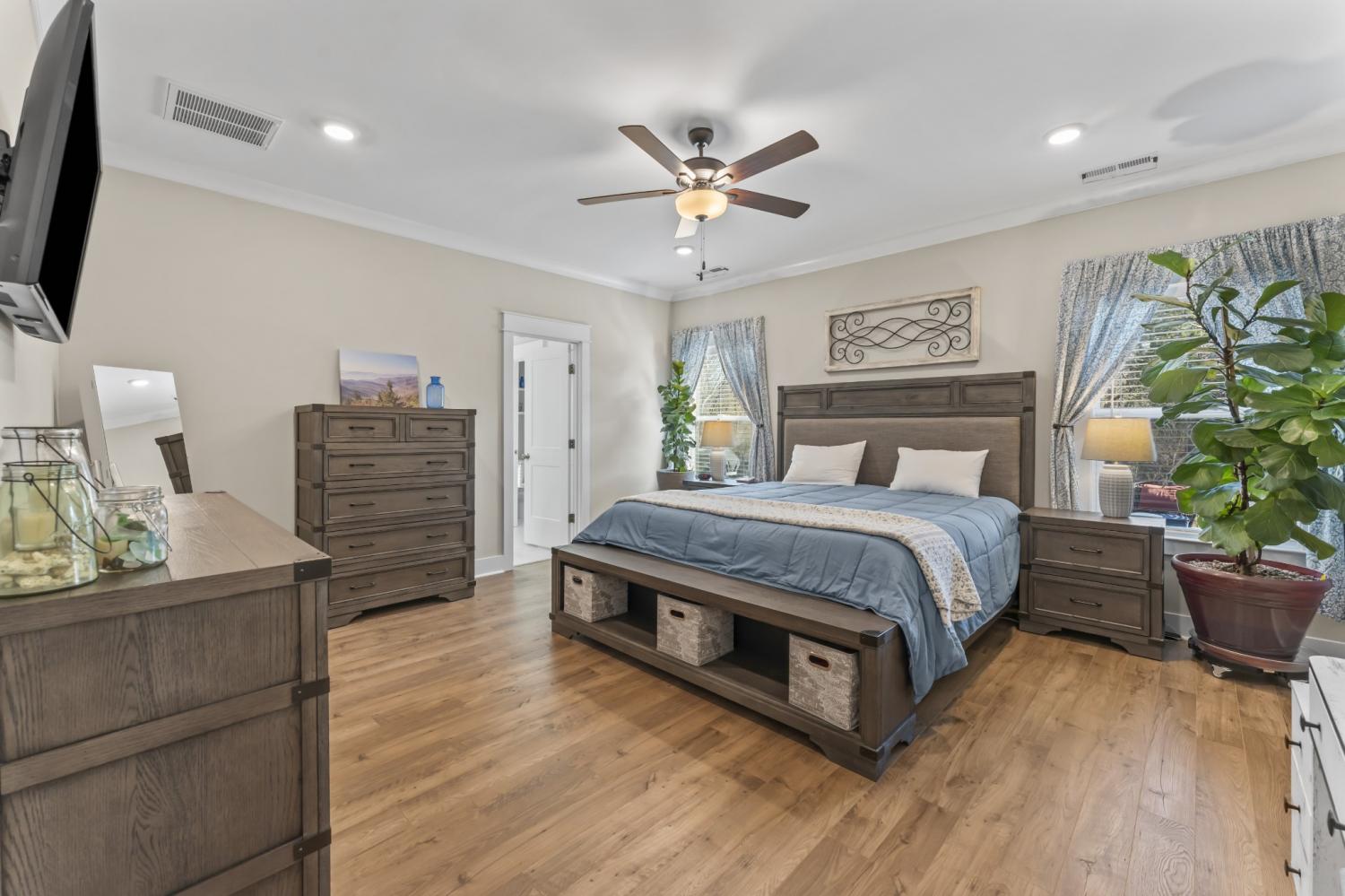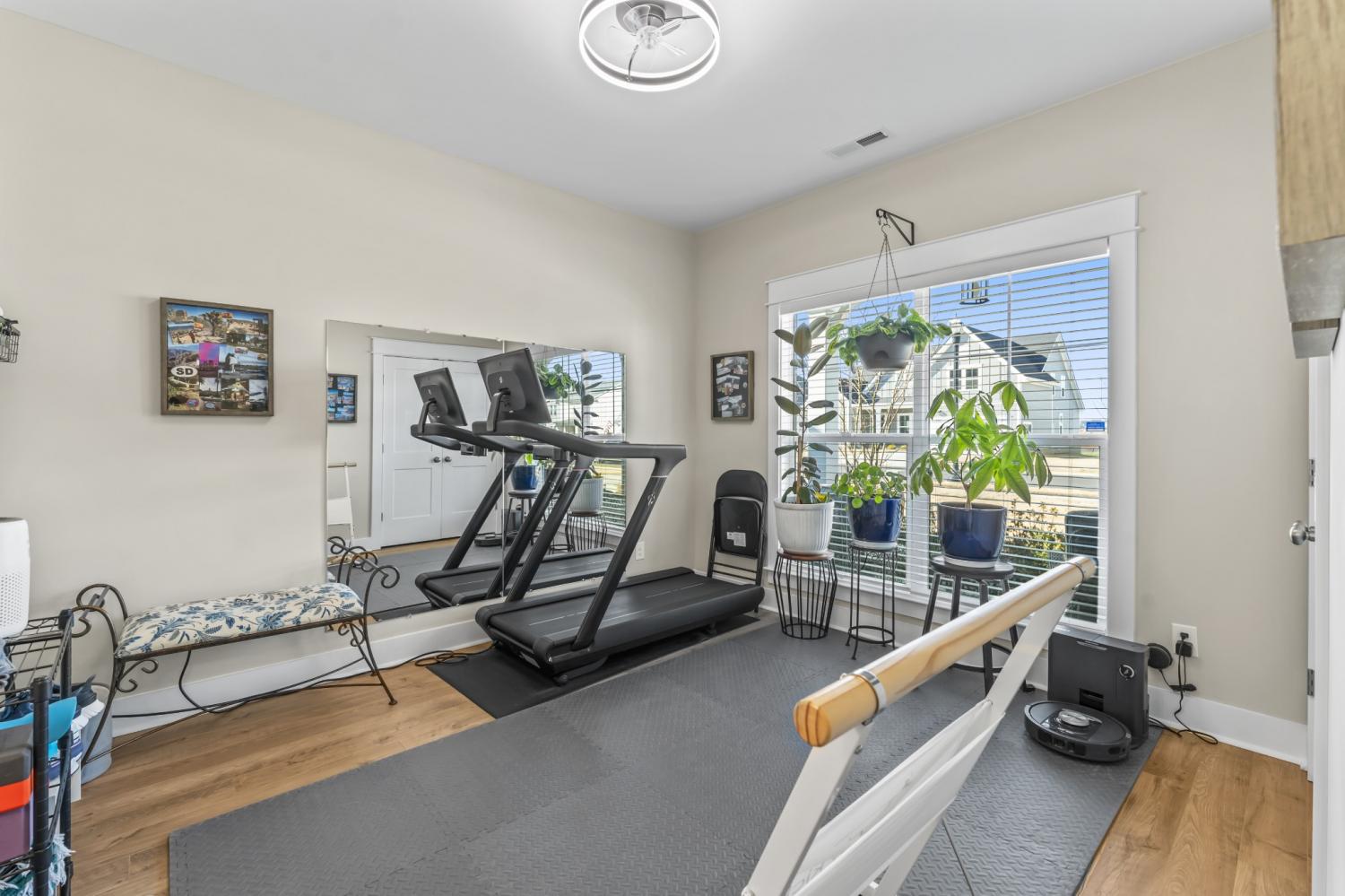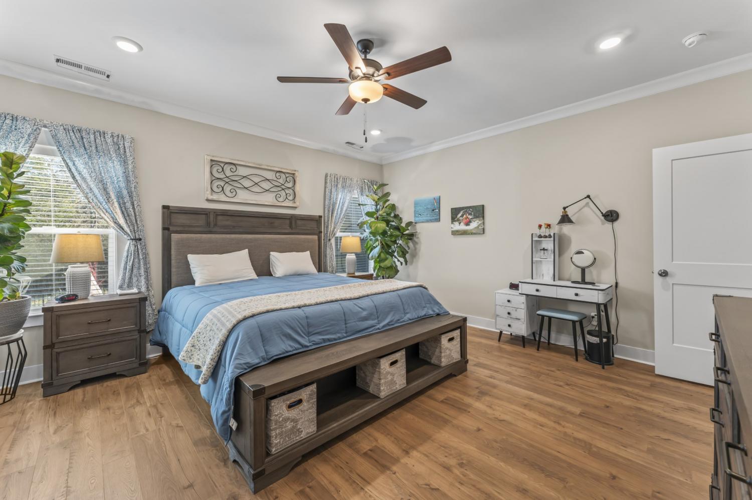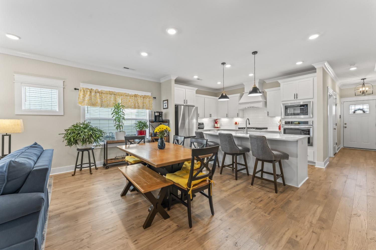 Welcome to this beautifully crafted home in the desirable Shelton Square, built by the reputable Paran Homes & offering 2,516 sf of thoughtfully designed living space. Featuring 4 bedrooms & 3 full baths, this home perfectly balances elegance, comfort, & functionality. The main level boasts an open-concept floor plan with tall ceilings & laminate flooring that resembles warm oak, creating an inviting atmosphere ideal for both everyday living & entertaining. The chef’s kitchen is a true centerpiece, complete with granite countertops, white subway tile, SS appliances, gas range, under-cabinet lighting, & a large walk-in pantry. Just off the kitchen, the laundry room is conveniently located on the main level. The two bedrooms & two full baths located downstairs, include one currently used as a home gym, & the other is the spacious primary suite featuring double vanities, a separate soaking tub, & walk-in tiled shower. Upstairs, you’ll find two additional bedrooms—both with ample closets—an inviting bonus room, & a full bath with linen closet, offering privacy & flexibility for guests or family members. Extra storage can be found in the walk-out attic or large under-stairs closet. Enjoy cozy evenings by the gas fireplace or relax outdoors on the expanded covered & screened patio overlooking a rare & serene 'forever wooded' area that ensures lasting privacy. An elegant wrought iron fence fully encloses the backyard. Additional highlights include Hardy board siding, tankless WH, irrigation system, whole-home water softening system, ADT security system, floodlights on the front & back, & high-speed internet. The two-car garage features insulated doors & smart programmable openers. As part of Shelton Square, residents enjoy access to a community pool, playground, basketball court, clubhouse with fitness center, & scenic walking trails—all maintained by the HOA. This exceptional home blends quality construction, modern amenities, & a vibrant community lifestyle. Welcome!