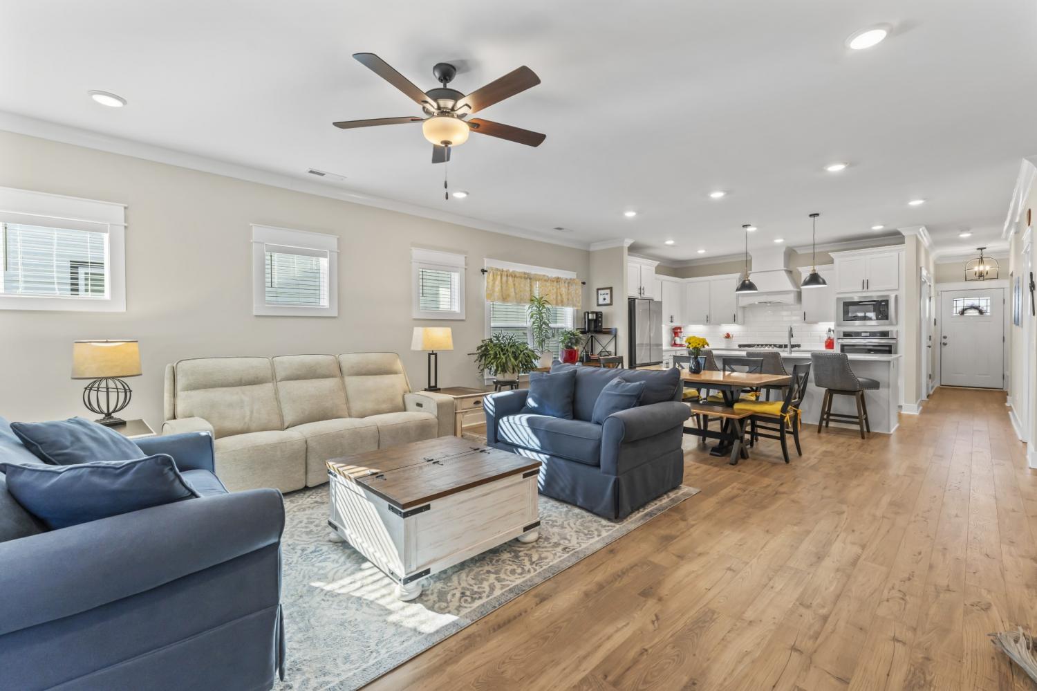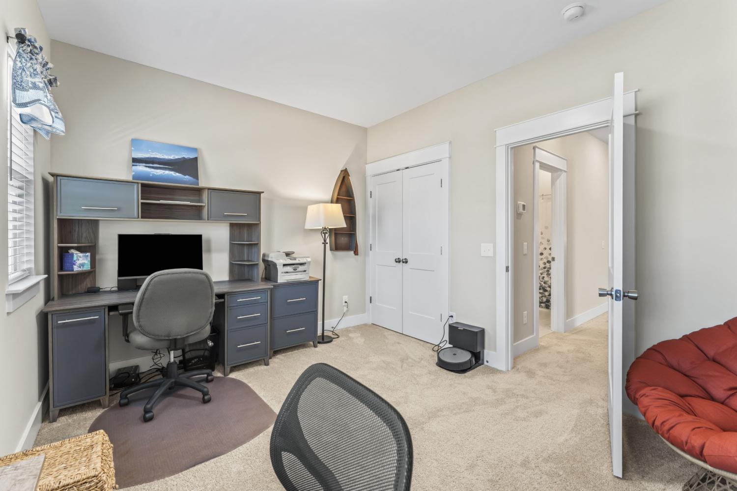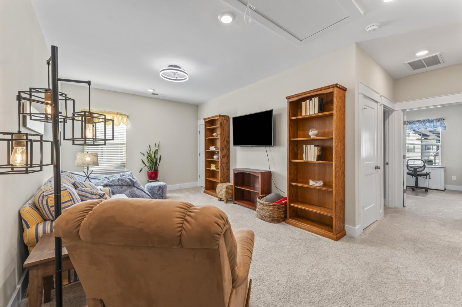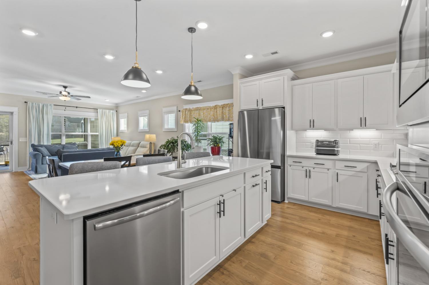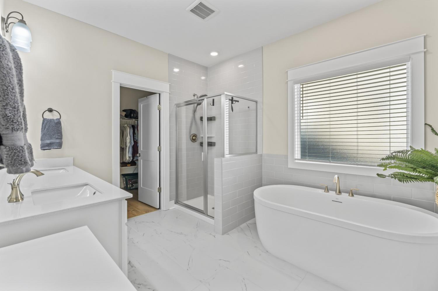 Welcome to this beautifully crafted home in the desirable Shelton Square, built by the reputable Paran Homes & offering 2,516 sf of thoughtfully designed living space. Featuring 4 bedrooms & 3 full baths, this home perfectly balances elegance, comfort, & functionality. The main level boasts an open-concept floor plan with tall ceilings & laminate flooring that resembles warm oak, creating an inviting atmosphere ideal for both everyday living & entertaining. The chef’s kitchen is a true centerpiece, complete with granite countertops, white subway tile, SS appliances, gas range, under-cabinet lighting, & a large walk-in pantry. Just off the kitchen, the laundry room is conveniently located on the main level. The two bedrooms & two full baths located downstairs, include one currently used as a home gym, & the other is the spacious primary suite featuring double vanities, a separate soaking tub, & walk-in tiled shower. Upstairs, you’ll find two additional bedrooms—both with ample closets—an inviting bonus room, & a full bath with linen closet, offering privacy & flexibility for guests or family members. Extra storage can be found in the walk-out attic or large under-stairs closet. Enjoy cozy evenings by the gas fireplace or relax outdoors on the expanded covered & screened patio overlooking a rare & serene 'forever wooded' area that ensures lasting privacy. An elegant wrought iron fence fully encloses the backyard. Additional highlights include Hardy board siding, tankless WH, irrigation system, whole-home water softening system, ADT security system, floodlights on the front & back, & high-speed internet. The two-car garage features insulated doors & smart programmable openers. As part of Shelton Square, residents enjoy access to a community pool, playground, basketball court, clubhouse with fitness center, & scenic walking trails—all maintained by the HOA. This exceptional home blends quality construction, modern amenities, & a vibrant community lifestyle. Welcome!
