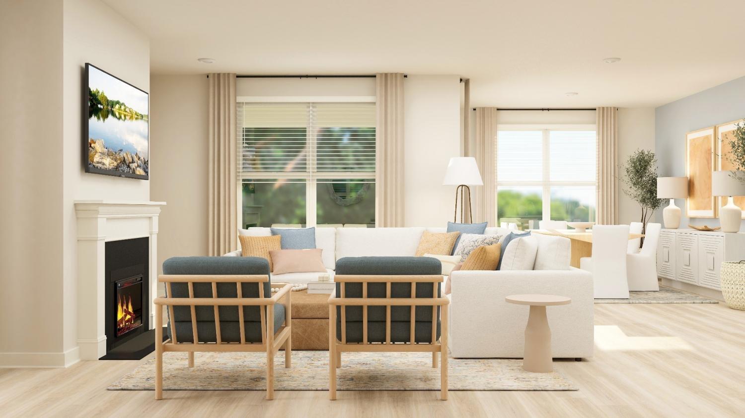 With fantastic features including a mudroom near the garage entry, this single-level home boasts a low-maintenance layout designed for modern lifestyles. Two bedrooms are located off the foyer, leading to an open-concept floorplan with convenient access to a covered patio, ready for seamless entertaining and multitasking. The luxe owner’s suite is tucked away at the back of the home, complete with a spa-inspired bathroom and generous walk-in closet. *Images are rendered. Actual configuration and features may vary.