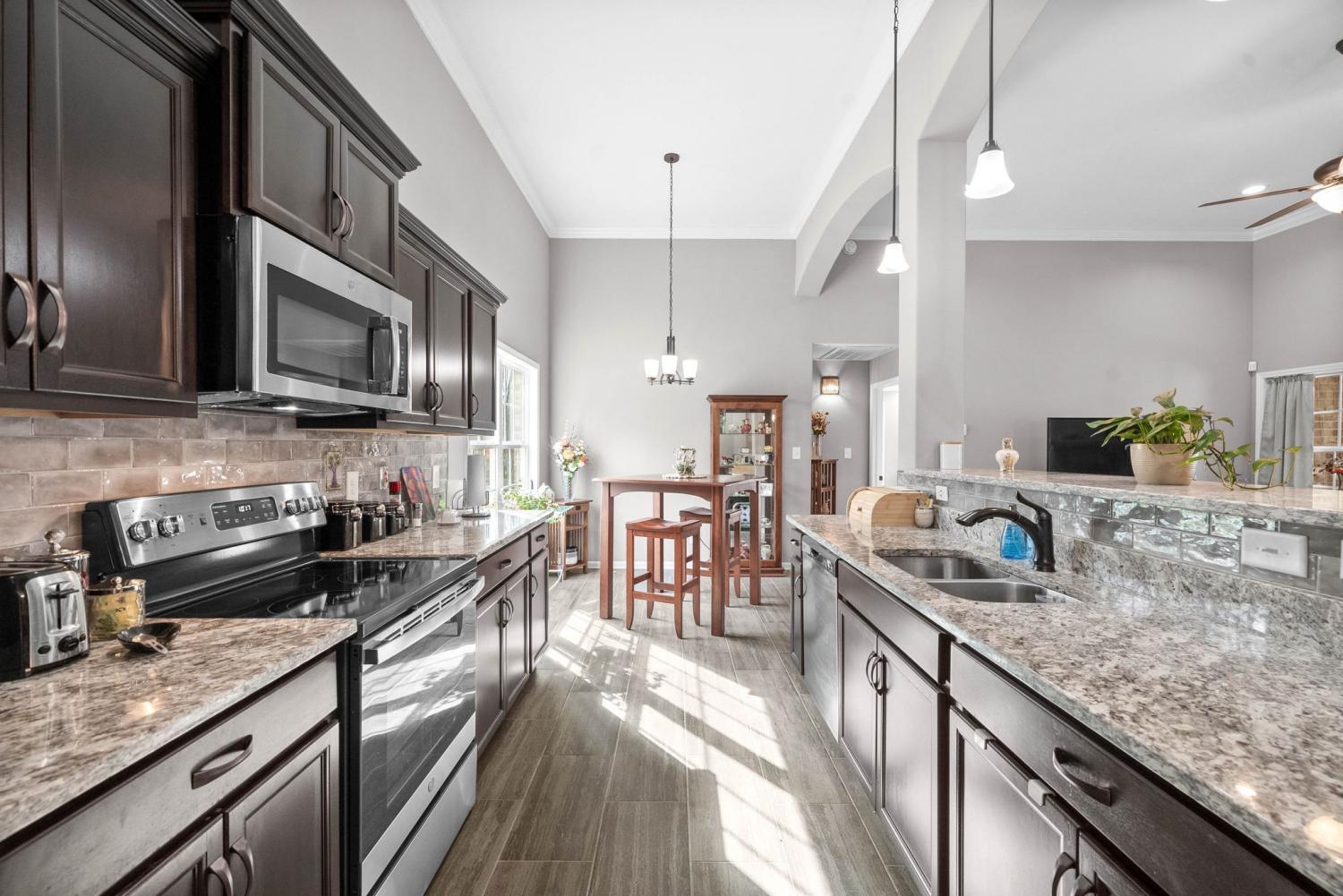 Use preferred lender, and receive up to 1% of your loan amount as a lender credit towards closing costs or 1 year temporary buydown. Buyers choice. Step into comfort and style with this beautifully designed home at the end of the street. The open-concept kitchen is both functional and stunning, showcasing upgraded cabinetry, granite countertops, and a classic tile backsplash. Just off the kitchen, the expansive great room offers a warm and welcoming atmosphere with its soaring ceilings and a striking stone gas fireplace. The spacious primary suite features a large walk-in closet, a relaxing garden tub, and a fully tiled walk-in shower. Entertain with ease in the open formal dining room, or retreat to the oversized bonus room—perfect for a home office, playroom, or media space. Thoughtful details throughout include custom trim work, rich wood and tile flooring, and a generous laundry room for added convenience. Enjoy endless hot water with a tankless gas water heater, and unwind on the large covered deck—ideal for relaxing evenings or weekend gatherings. Leaf Filter installed gutter filters that have a transferrable lifetime warranty!