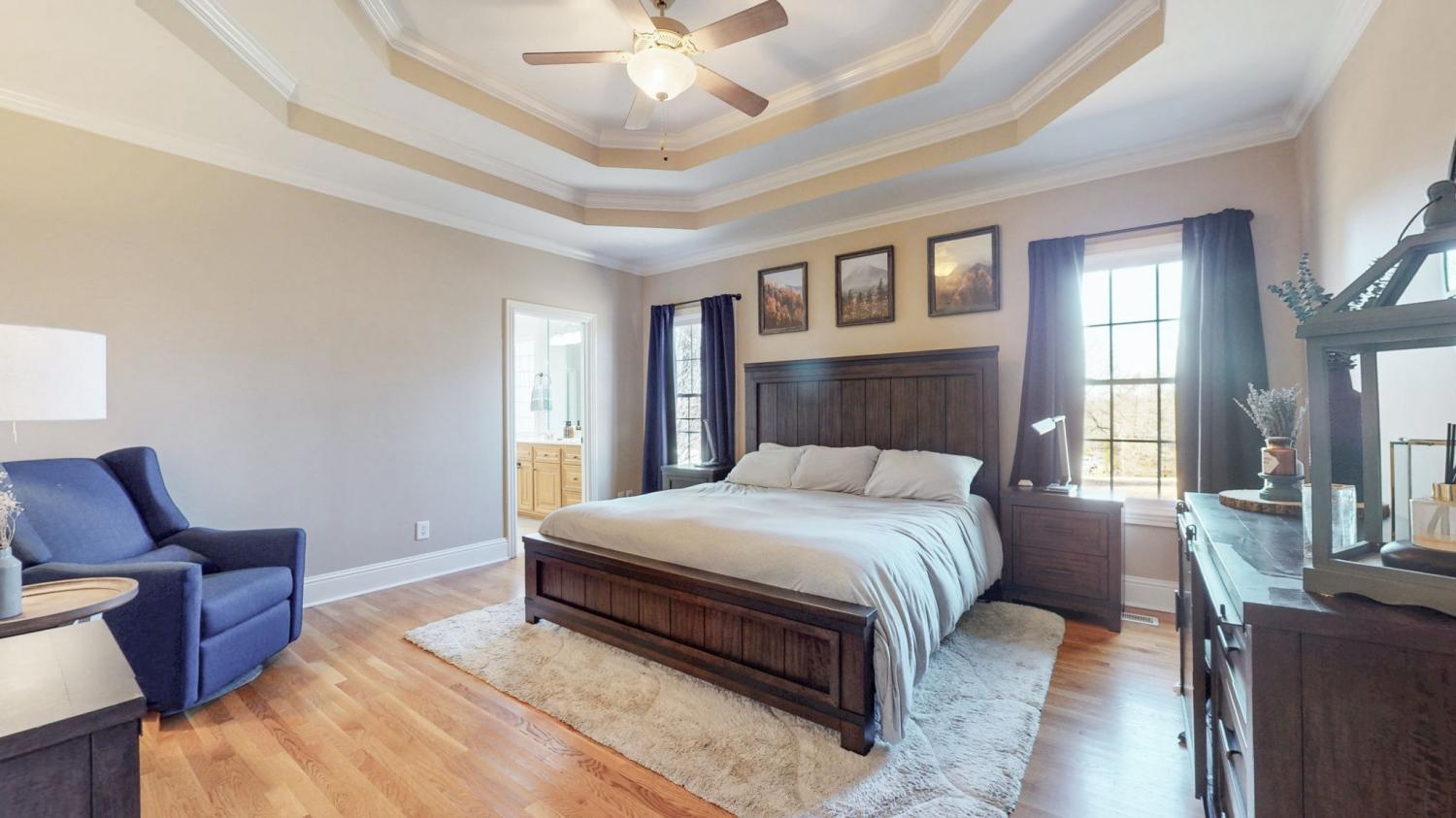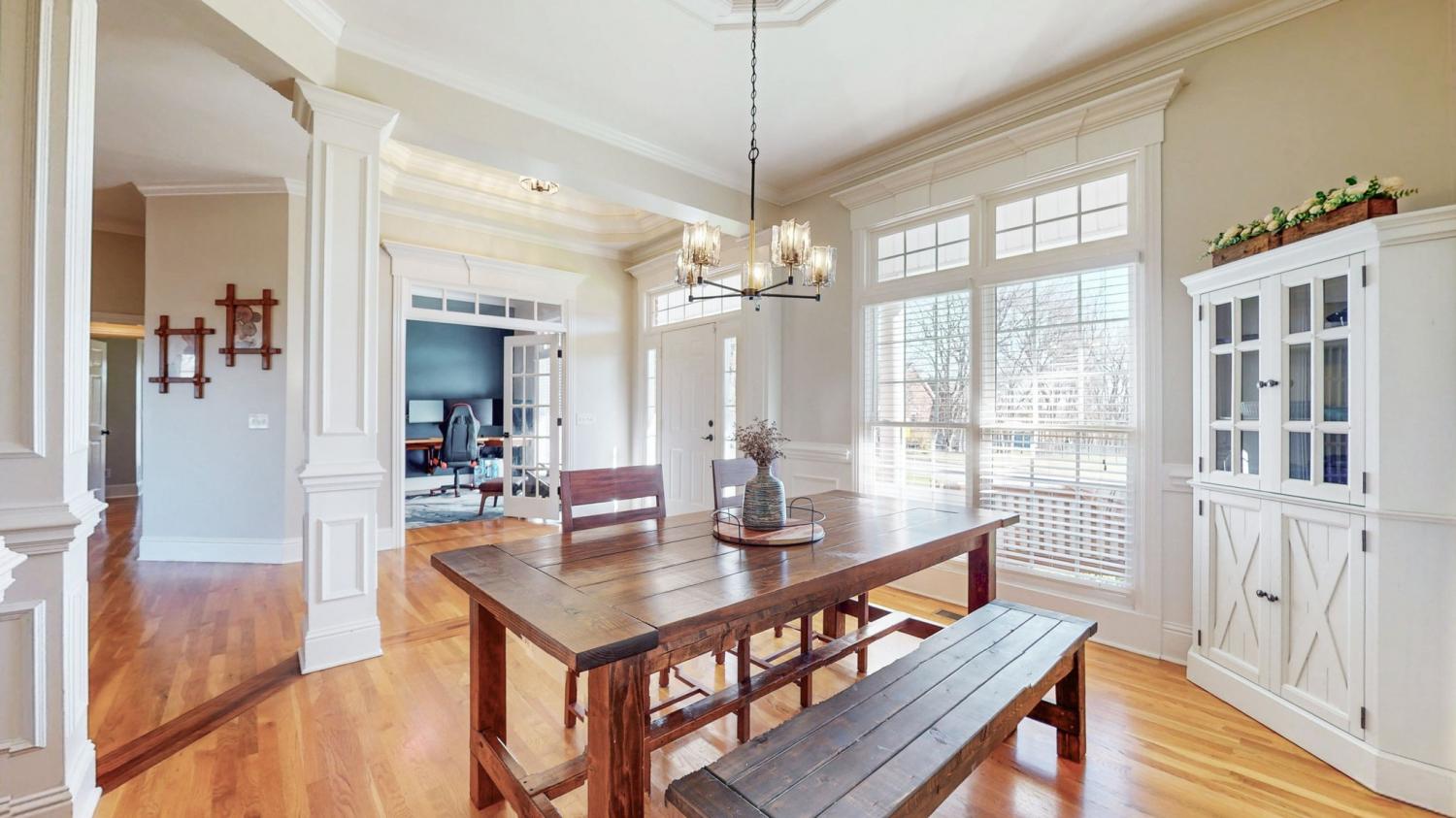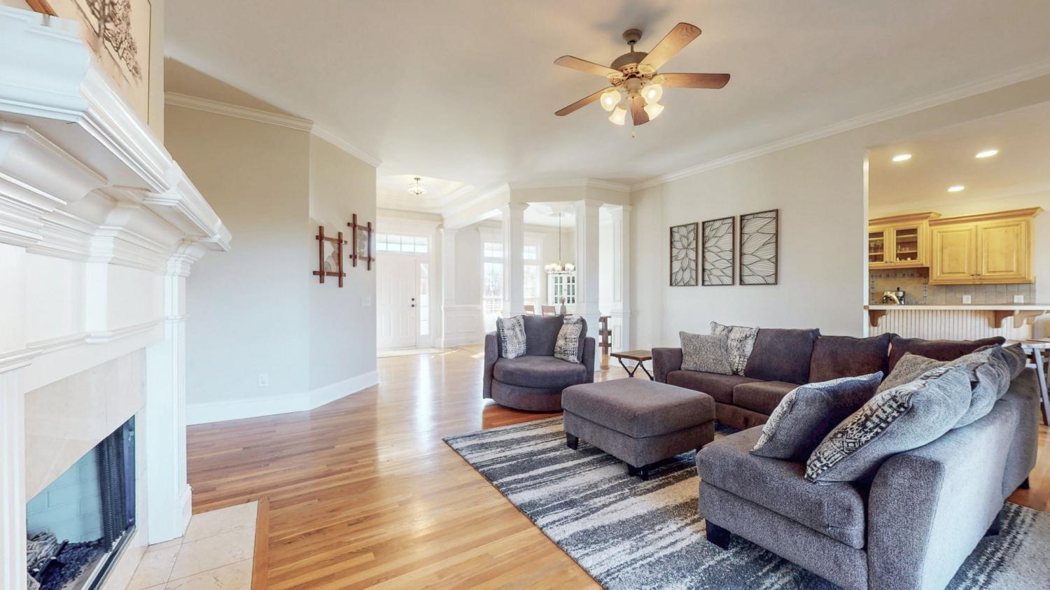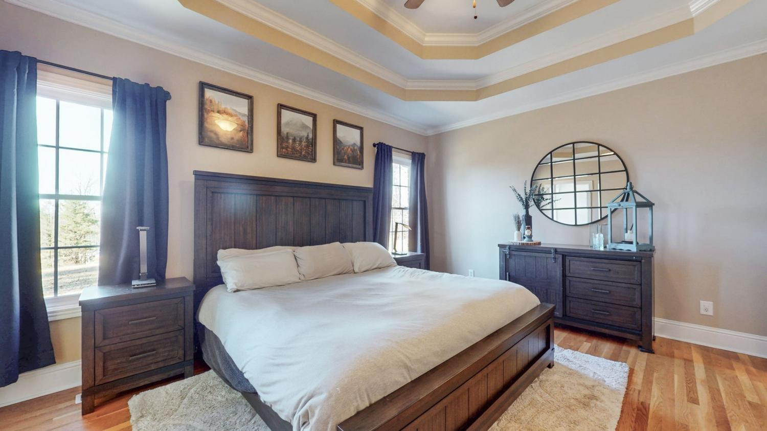 NO HOA!! Stunning property sitting on nearly 1 acre of usable open space in the sought-after Iroquois neighborhood in Lebanon. Built by a well-known builder and thoughtfully designed with high-end finishes throughout, this 3-bedroom, 2.5-bath home features a spacious bonus room over the 3-car garage—perfect for a media room, playroom, gym, or guest space. Inside, you’ll find an open-concept layout with extensive hardwoods, crown molding, tray ceilings, and custom trim details. A dedicated home office with French doors offers a quiet workspace, while the formal dining room showcases wainscoting and transom-topped windows. The great room anchors the home with a gas fireplace and seamlessly flows into the kitchen and breakfast area. The kitchen is built for everyday living and entertaining, featuring custom cabinetry, upgraded tile backsplash, recessed lighting, and under-cabinet lighting, plus generous prep and storage space. The breakfast nook includes hardwood flooring and a decorative tray ceiling. The owner’s retreat offers a true private escape with a spa-style bath including dual vanities, a jetted corner tub, a separate expanded tiled shower with built-in seating, and a large walk-in closet. Two additional main-level bedrooms are positioned in a split-bedroom layout for privacy and flexibility. Step outside to what truly sets this home apart: one of the largest lots in the neighborhood—nearly an acre—level, usable, and ideal for outdoor living, play, or future enhancements. A rare combination of space, privacy, and convenience in one of the area’s most desirable communities.