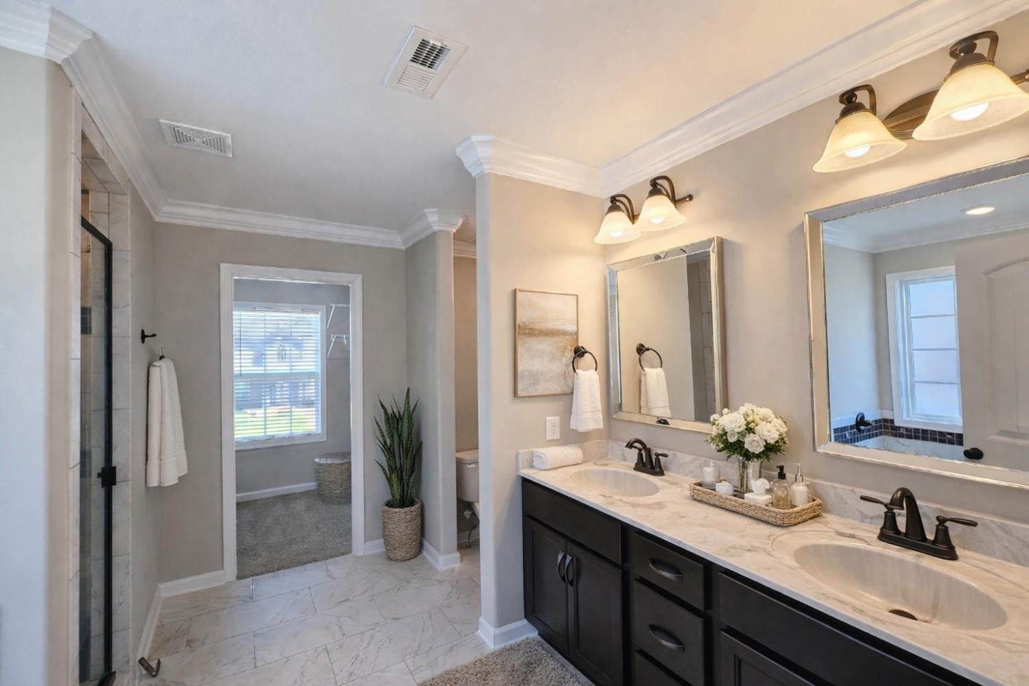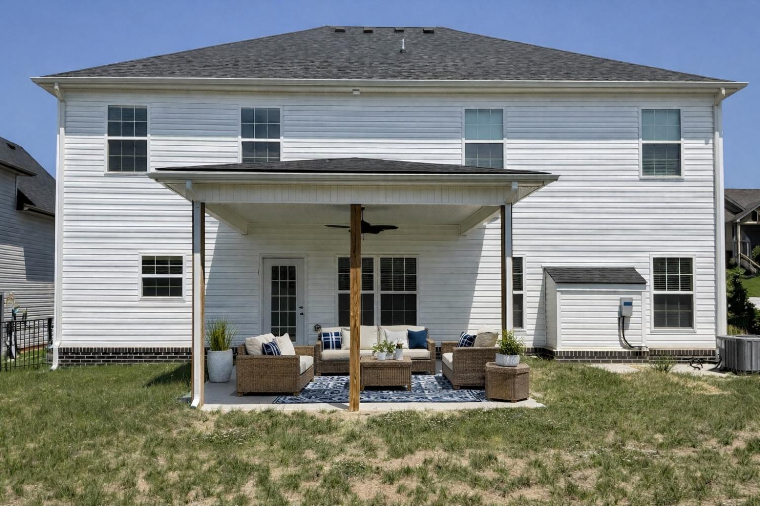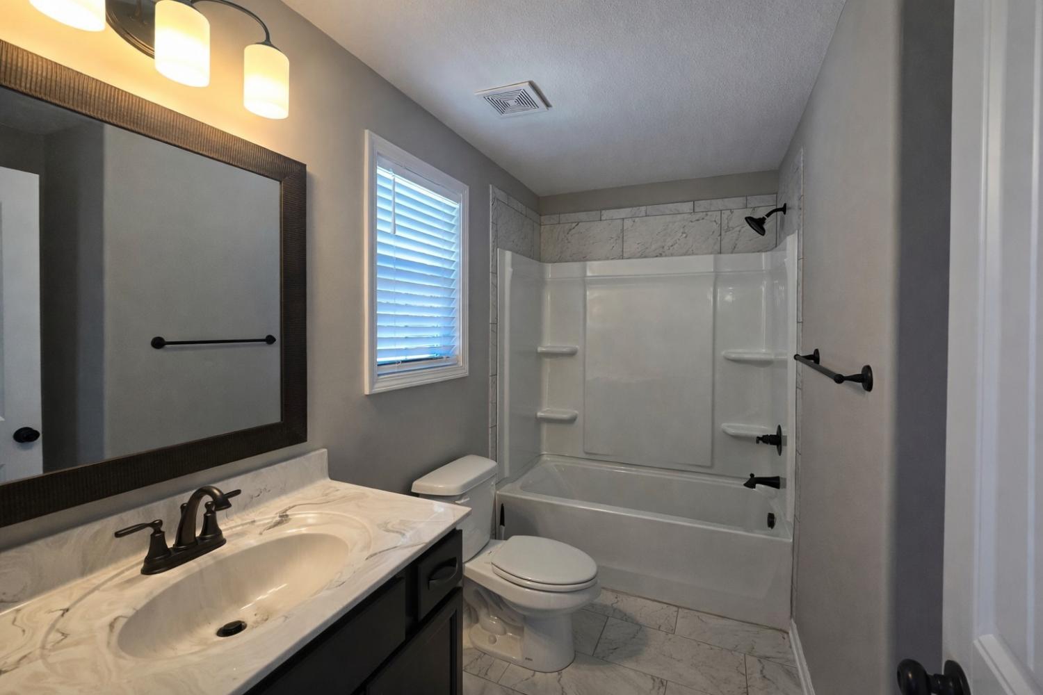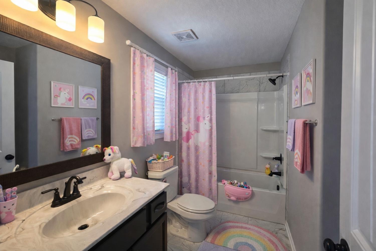 OPEN HOUSE Saturday January 17, 2026 12pm-3pm Welcome to your dream home! This exquisite two-story residence offers a perfect blend of luxury and comfort. As you step inside, you'll be greeted by a grand entry foyer and a spacious bedroom with a full bath on the first floor, ideal for guests or multi-generational living. The home boasts an incredible open kitchen, featuring granite countertops, an impeccable tile backsplash, double ovens, a center island, and an impressive pantry designed for a chef. The open-concept dining and living room area is perfect for entertaining, with recessed lighting and an electric fireplace adding warmth and ambiance on cooler nights. Upstairs, you'll find an impressive owner's suite with two walk-in closets and a luxurious bathroom complete with a huge garden tub and a stunning walk-in tiled shower with a bench. Two additional bedrooms share a Jack and Jill bathroom, offering generous closet space, while a bonus room has been converted into a fifth bedroom. Outside, the home features a charming covered front porch, beautiful landscaping, and a fenced backyard with a metal rod fence. The covered patio, equipped with lighting and a fan, is perfect for enjoying warm summer evenings. This barely lived in home is truly a must-see! Photos are virtually staged
