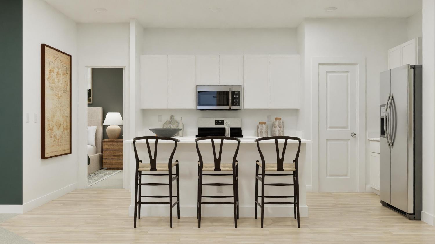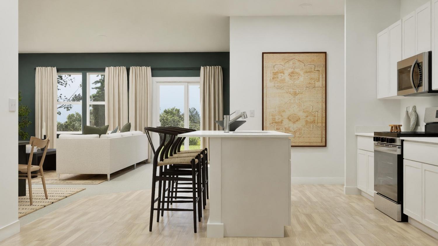 Experience effortless single-level living in the Aster floorplan. The open-concept layout seamlessly connects the kitchen, dining, and living areas, creating a bright and welcoming space. The main level includes a spacious primary suite and two additional rooms, perfect for family, guests, or a home office. This home comes complete with all kitchen appliances—including the refrigerator—blinds throughout, and select smart-home features, making it move-in ready and modern. Images from artist rendering. Actual configuration and features may vary