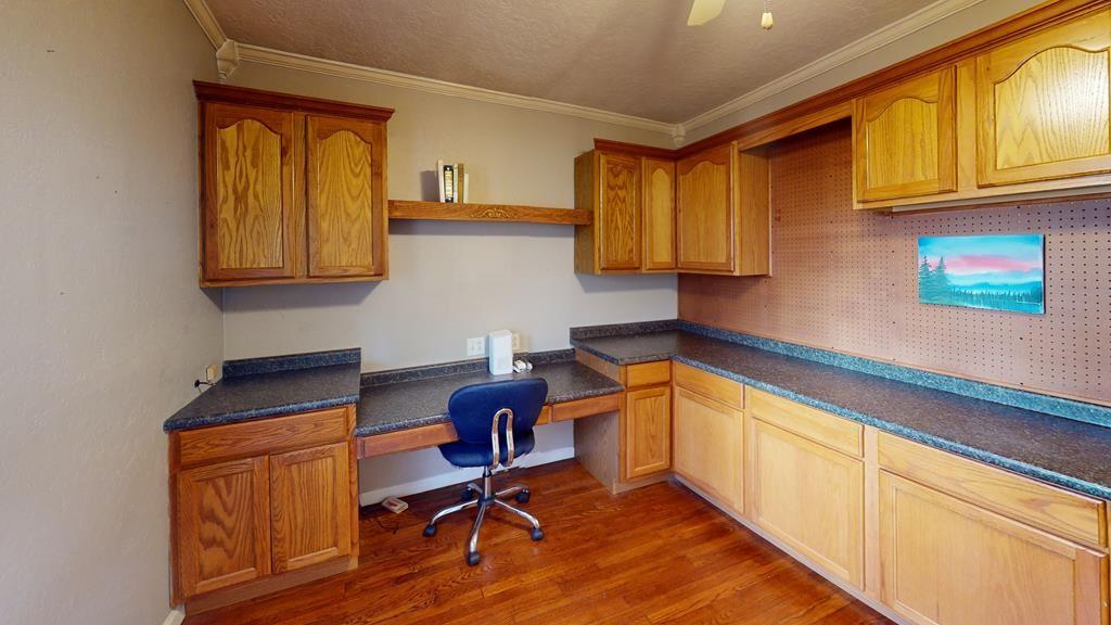 CHARACTER AND CHARM is what you will find in this cozy 2 bedroom brick home. Original hardwood floors are featured throughout most of the living areas, with tile in the kitchen and bathroom. The spacious living room has a fireplace with gas logs and crown molding. There is an office/den area that could easily be a 3rd bedroom. The kitchen has been updated and has several cabinets and ample counter tops along with a deep farmhouse sink. New refrigerator. New shower in the bathroom and a new door going into the laundry room. There is a large deck on the back with a covered area and an open area for grilling. The large backyard is fenced and also features a chicken coup area. There is plenty of room for a garden. The detached brick building has electricity and is perfect for a potting shed or storage.