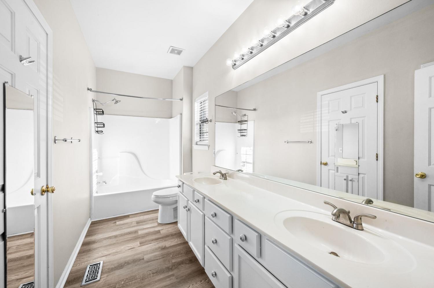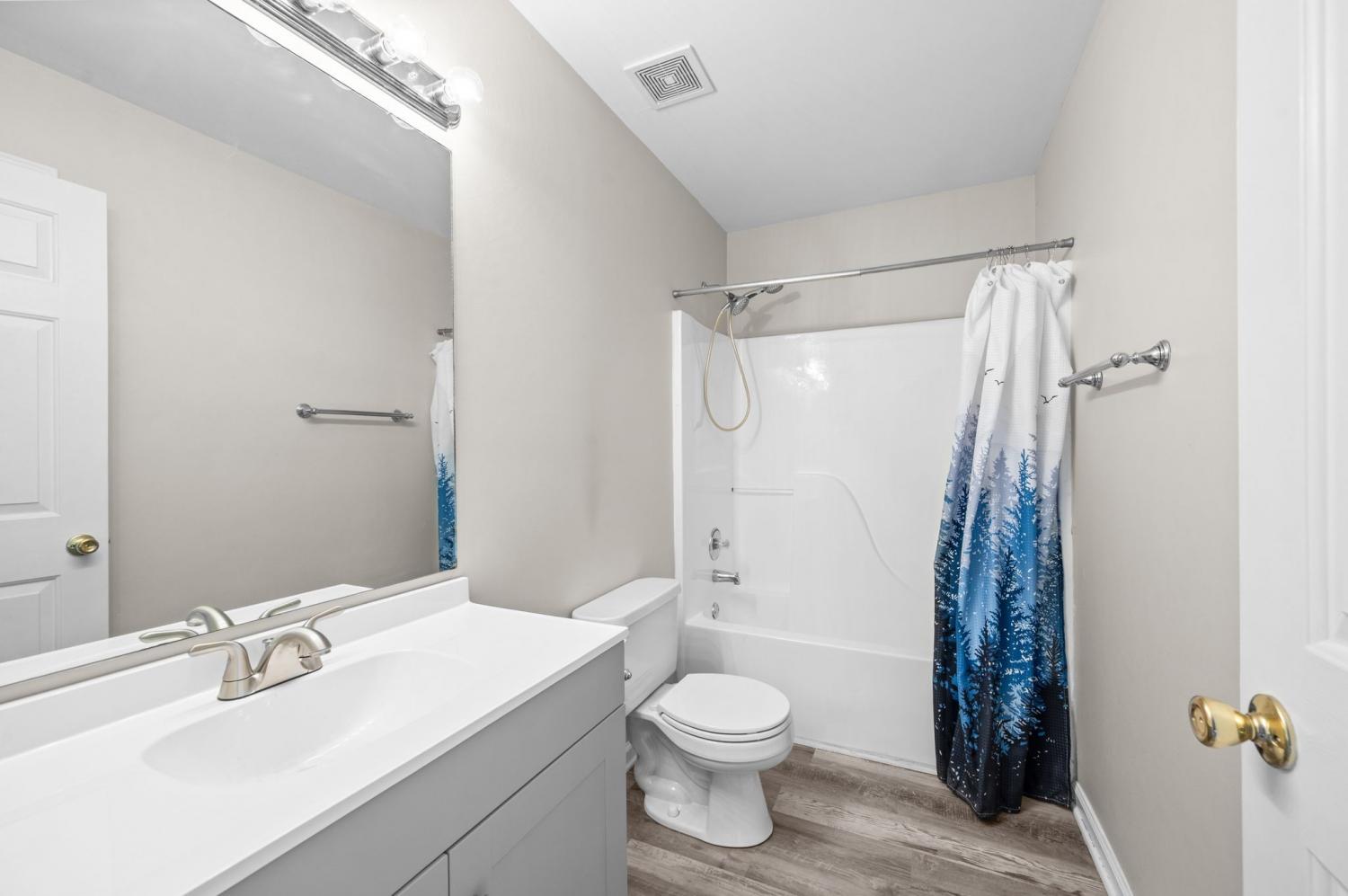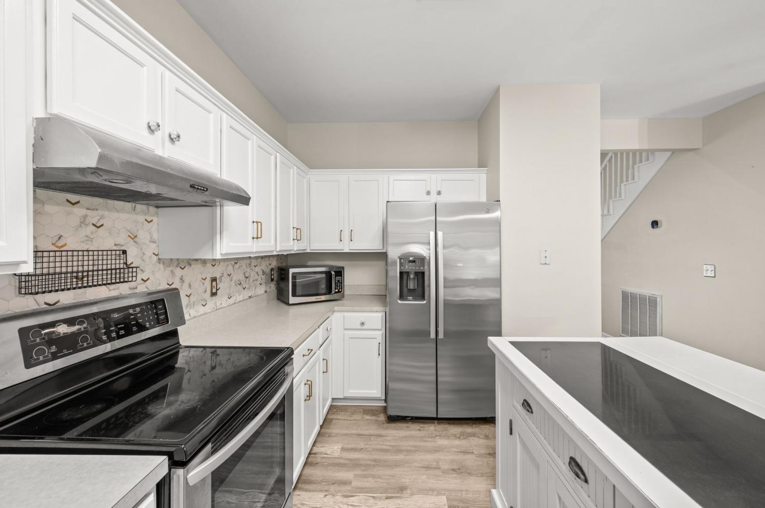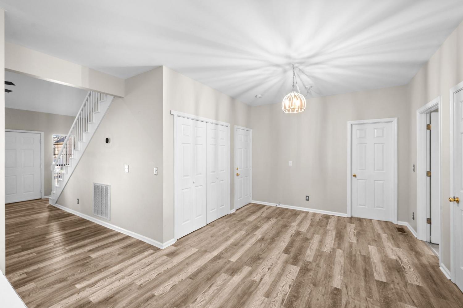 WHITE Kitchen with Island and STAINLESS appliances, LVP flooring on the main level. Primary Suite on the MAIN, DARLING cedar plank door & Insulated PATIO room for year around pleasure, VAULTED ceiling in the living room with WOOD burning fireplace. Expansion area or storage area is a wonderful feature. Washer/Dryer to remain. Located on a corner lot, full PRIVACY fencing in backyard with Mini Metal storage shed. Bring your Dog!!Very convenience to shopping, restaurants and trails and Parks!