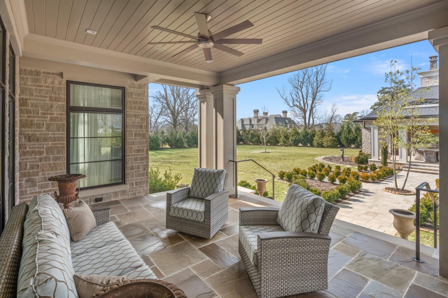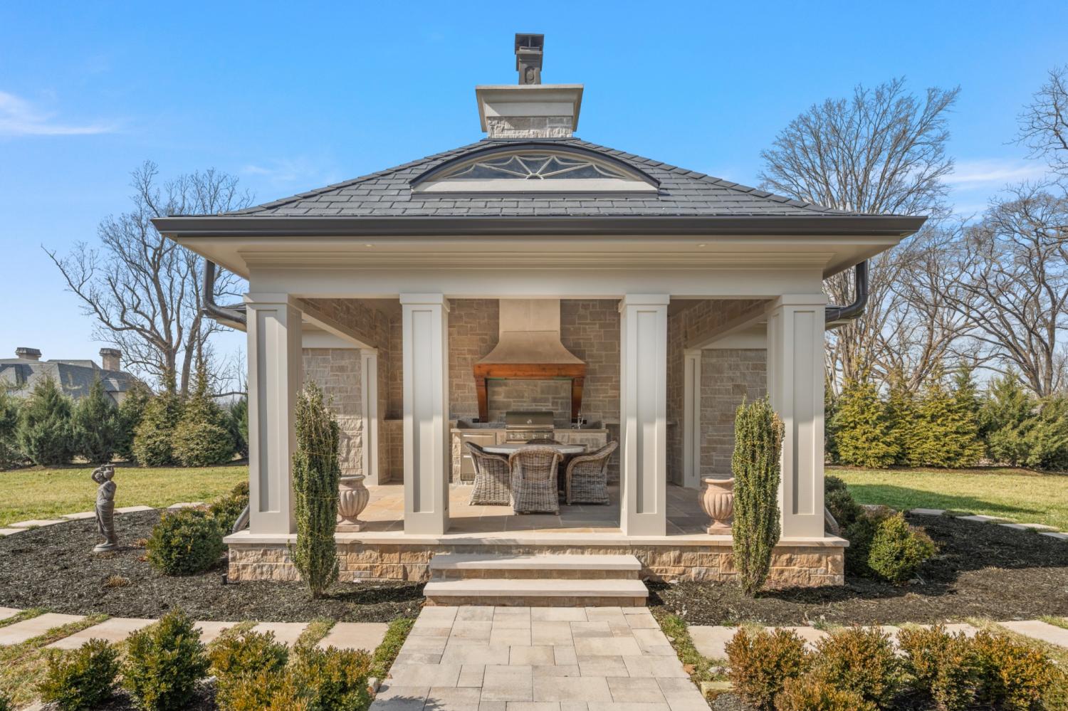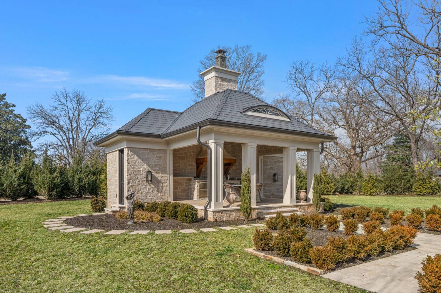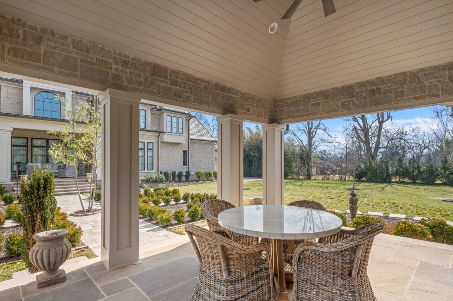 507 Meadowlark Lane delivers elevated Brentwood living with timeless design and standout craftsmanship, with striking stone detailing and a limestone entry that sets the tone from the moment you arrive. Inside, elevated finishes are everywhere, including extensive trim work, solid 8-foot doors on both levels, and designer ceiling details in the formal dining and living rooms, foyer, and upper stairwell. Three fireplaces and custom built-ins add warmth in the family room, study, and office. The home offers five bedrooms with adjoining bathrooms, two laundry rooms, and a large vaulted bonus room. The primary suite features a sitting area, heated bathroom floors, a freestanding tub, a large walk-in shower, and an expansive primary closet with custom built-ins. Outdoor living includes a matching stone pool house with an entertaining area, outdoor kitchen, pool equipment room, half bath, and storage loft. The fully irrigated lawn is bordered by 180 evergreens for privacy, with a front courtyard, stone columns, and front and rear landscape lighting. A thoughtfully designed statement property for those who value privacy, presence, and lasting quality.