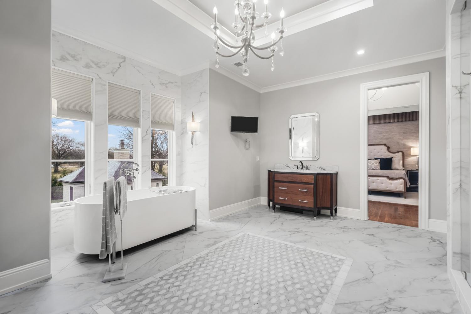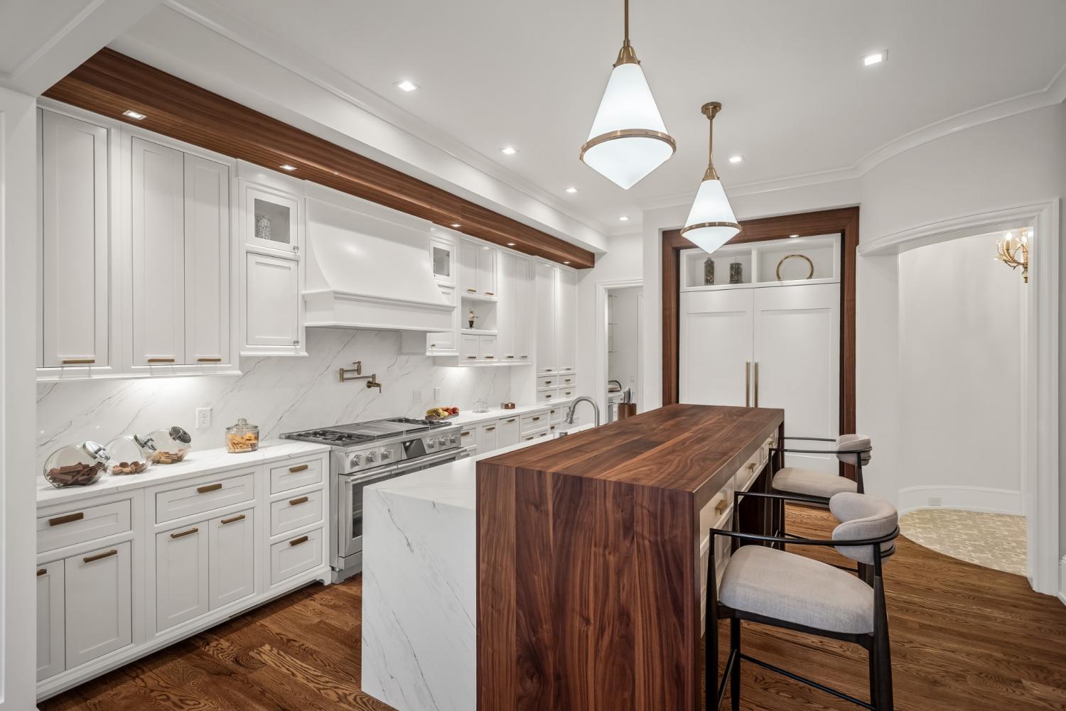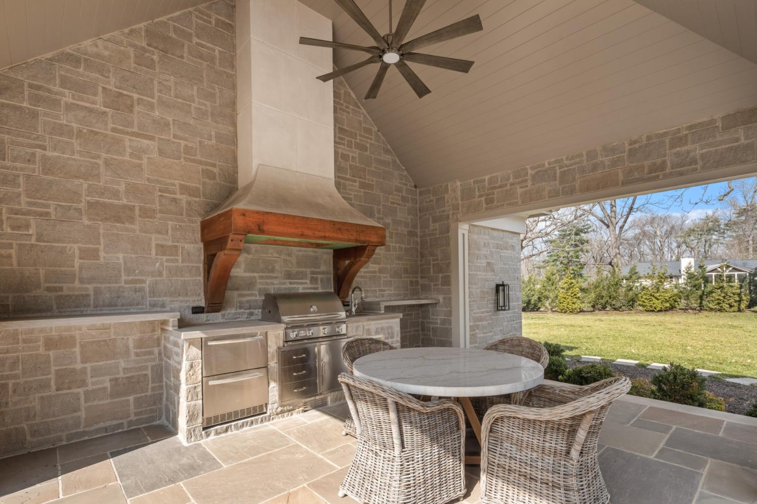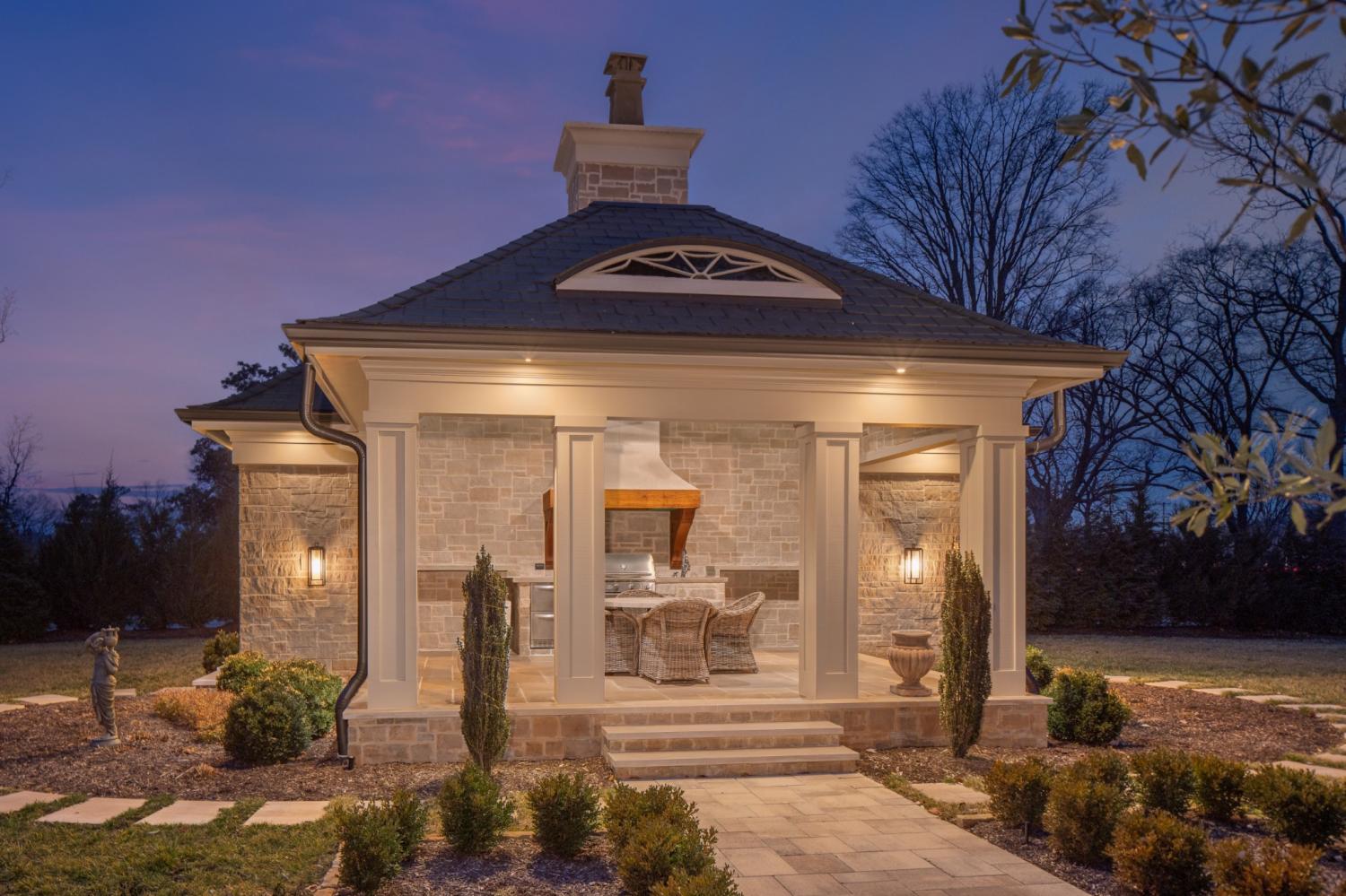 507 Meadowlark Lane delivers elevated Brentwood living with timeless design and standout craftsmanship, with striking stone detailing and a limestone entry that sets the tone from the moment you arrive. Inside, elevated finishes are everywhere, including extensive trim work, solid 8-foot doors on both levels, and designer ceiling details in the formal dining and living rooms, foyer, and upper stairwell. Three fireplaces and custom built-ins add warmth in the family room, study, and office. The home offers five bedrooms with adjoining bathrooms, two laundry rooms, and a large vaulted bonus room. The primary suite features a sitting area, heated bathroom floors, a freestanding tub, a large walk-in shower, and an expansive primary closet with custom built-ins. Outdoor living includes a matching stone pool house with an entertaining area, outdoor kitchen, pool equipment room, half bath, and storage loft. The fully irrigated lawn is bordered by 180 evergreens for privacy, with a front courtyard, stone columns, and front and rear landscape lighting. A thoughtfully designed statement property for those who value privacy, presence, and lasting quality.