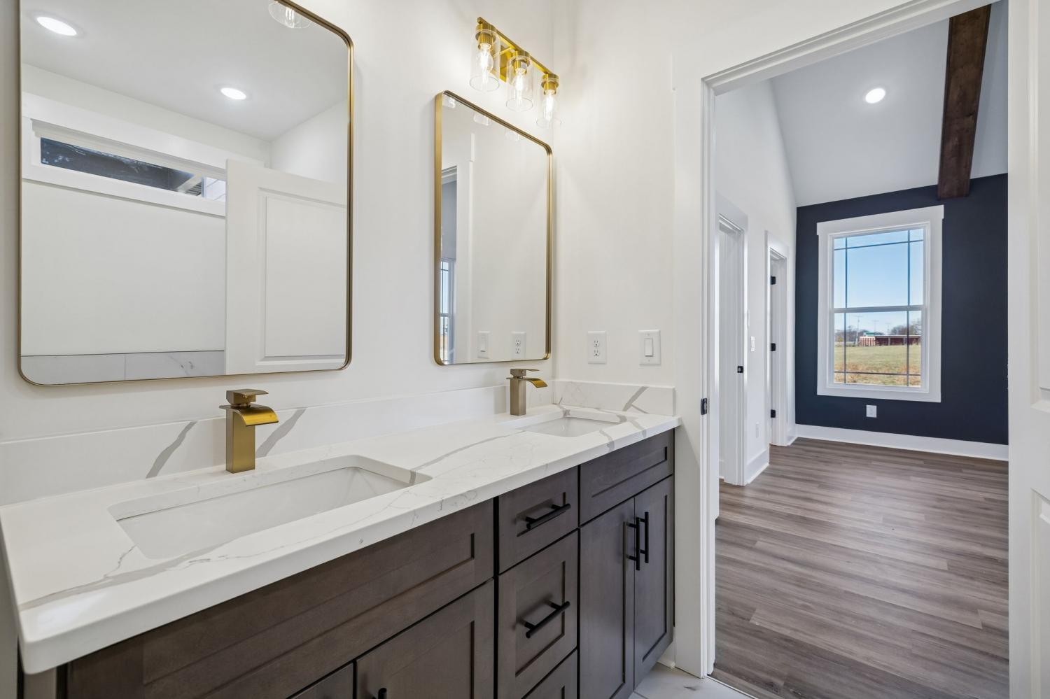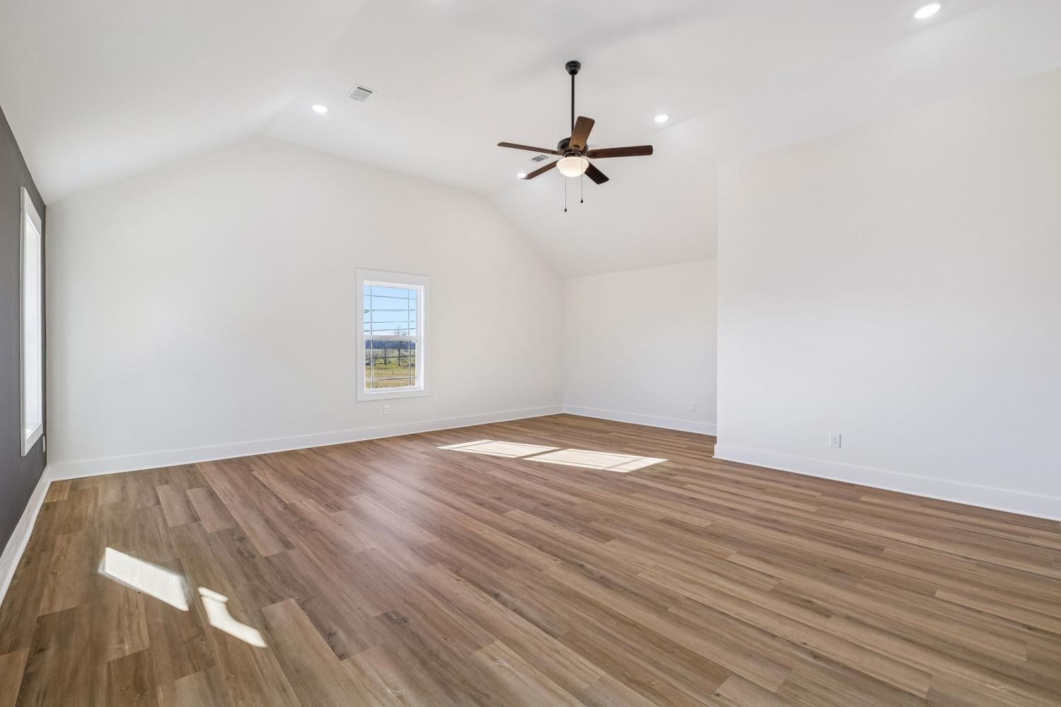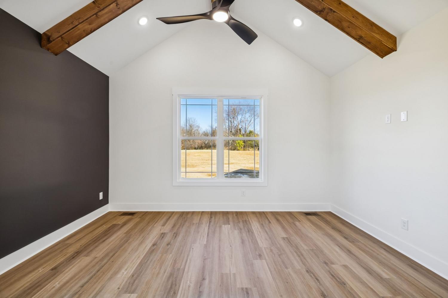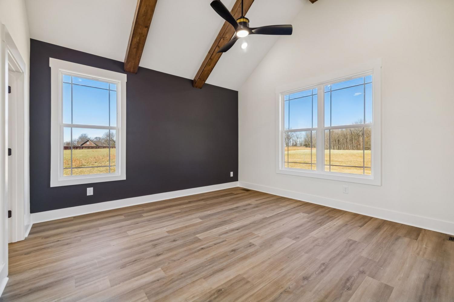 Beautiful new construction on 2 acres in Springfield, TN, offering open views of cattle from the front yard & a peaceful, tree-lined backdrop behind the home. This thoughtfully designed layout is filled with natural light & features cathedral ceilings with exposed beams in both the main living area & the primary bedroom, creating a warm, inviting atmosphere. The kitchen flows seamlessly into the living space & is ideal for cooking, gathering, and entertaining. Highlights include oversized cabinetry, a large island perfect for meal prep & hosting, a pot filler, and a custom vent hood. The living room is anchored by a fireplace, making it a comfortable space for everyday living or entertaining friends & family. The spacious primary suite offers custom built-in closets with accent lighting & a well-appointed bathroom with a separate soaking tub & tiled shower. Just off the primary bedroom is a dedicated space with washer and dryer hookups, providing the option for a second laundry area. The home also features a large main laundry room with soaking sink, ample storage, & a mud bench, along with a dedicated office. Upstairs includes a large bonus room, two additional bedrooms, & a full bath, offering flexible living space. Enjoy outdoor living on the covered back deck with cathedral ceilings & beautiful views. Smart-home features include separate Wi-Fi–enabled speaker zones for the living area, primary bedroom, & back porch. With ample storage throughout & a peaceful setting, this home offers modern comfort with room to gather, while enjoying rural living.