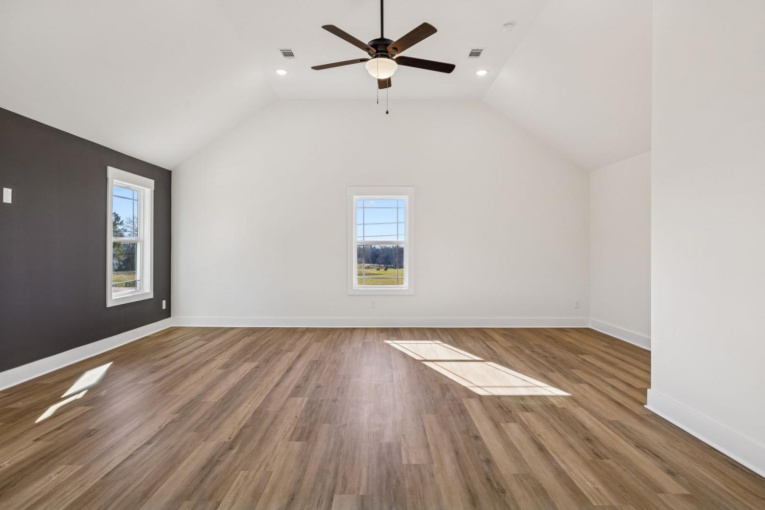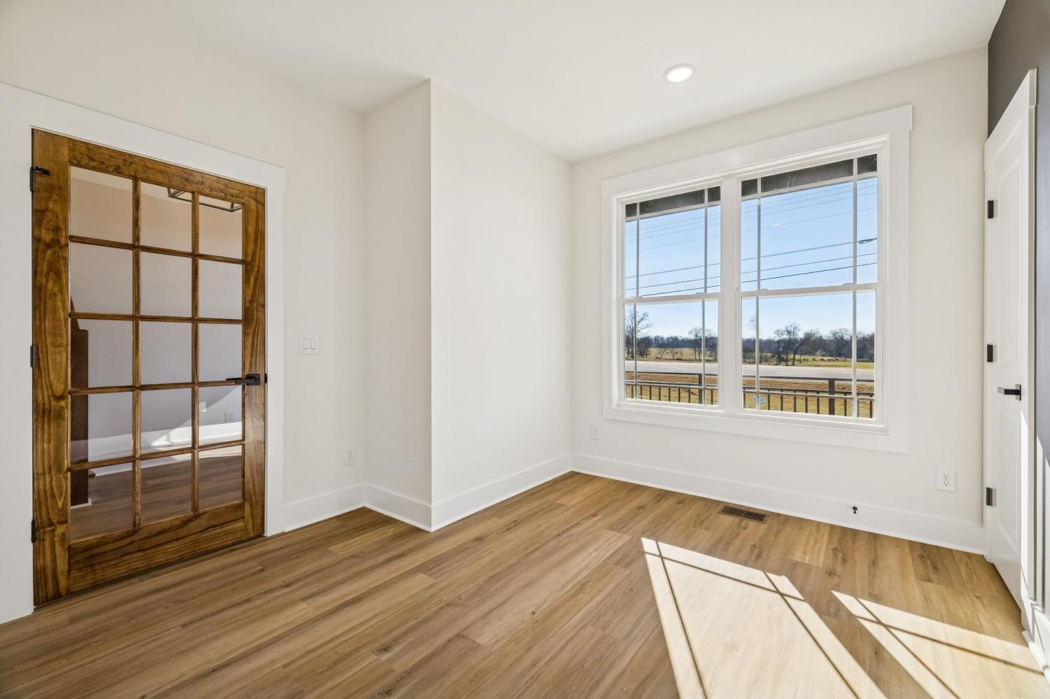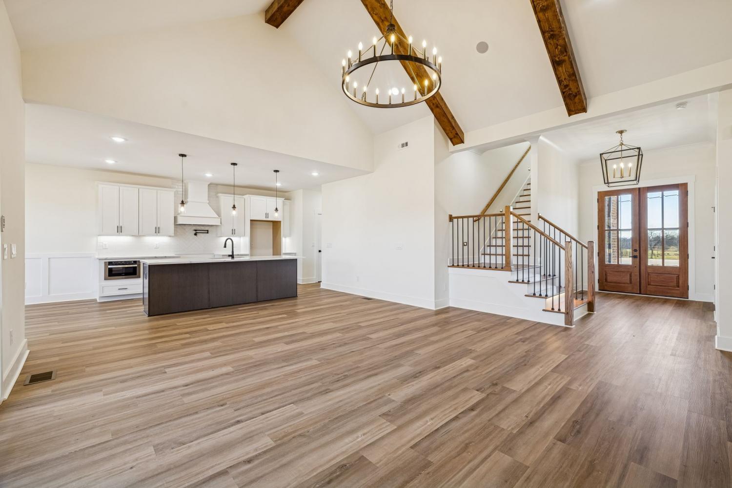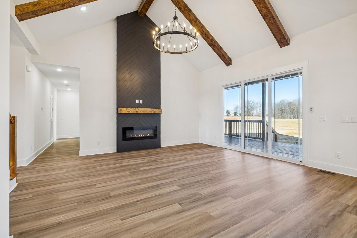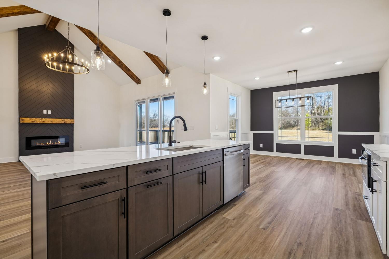 Beautiful new construction on 2 acres in Springfield, TN, offering open views of cattle from the front yard & a peaceful, tree-lined backdrop behind the home. This thoughtfully designed layout is filled with natural light & features cathedral ceilings with exposed beams in both the main living area & the primary bedroom, creating a warm, inviting atmosphere. The kitchen flows seamlessly into the living space & is ideal for cooking, gathering, and entertaining. Highlights include oversized cabinetry, a large island perfect for meal prep & hosting, a pot filler, and a custom vent hood. The living room is anchored by a fireplace, making it a comfortable space for everyday living or entertaining friends & family. The spacious primary suite offers custom built-in closets with accent lighting & a well-appointed bathroom with a separate soaking tub & tiled shower. Just off the primary bedroom is a dedicated space with washer and dryer hookups, providing the option for a second laundry area. The home also features a large main laundry room with soaking sink, ample storage, & a mud bench, along with a dedicated office. Upstairs includes a large bonus room, two additional bedrooms, & a full bath, offering flexible living space. Enjoy outdoor living on the covered back deck with cathedral ceilings & beautiful views. Smart-home features include separate Wi-Fi–enabled speaker zones for the living area, primary bedroom, & back porch. With ample storage throughout & a peaceful setting, this home offers modern comfort with room to gather, while enjoying rural living.