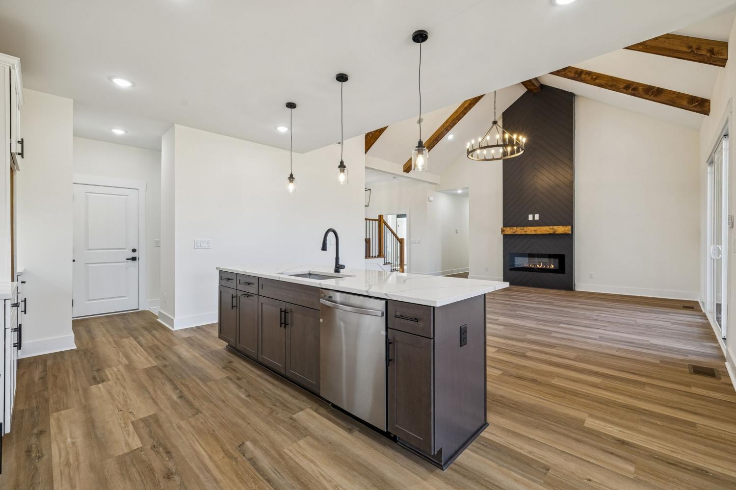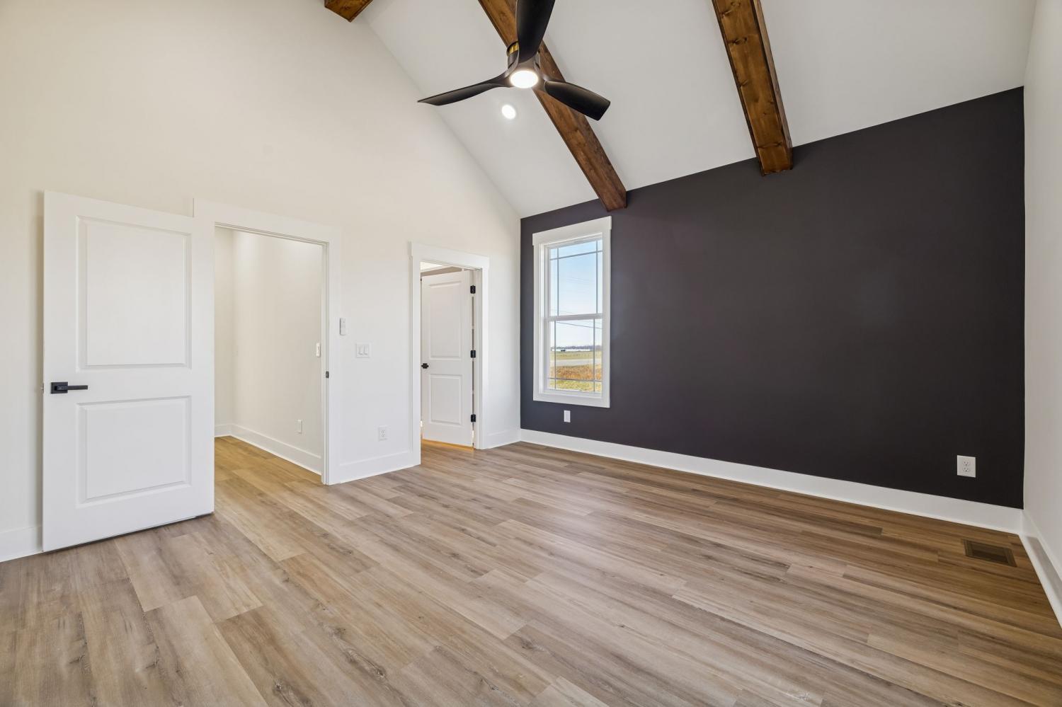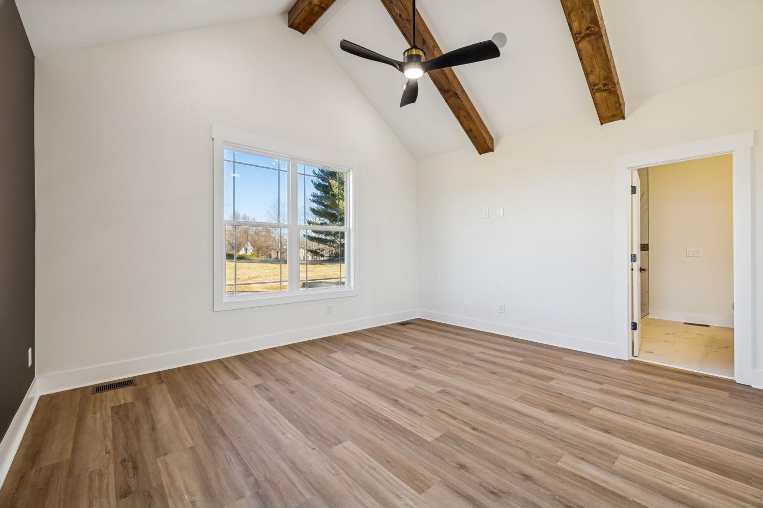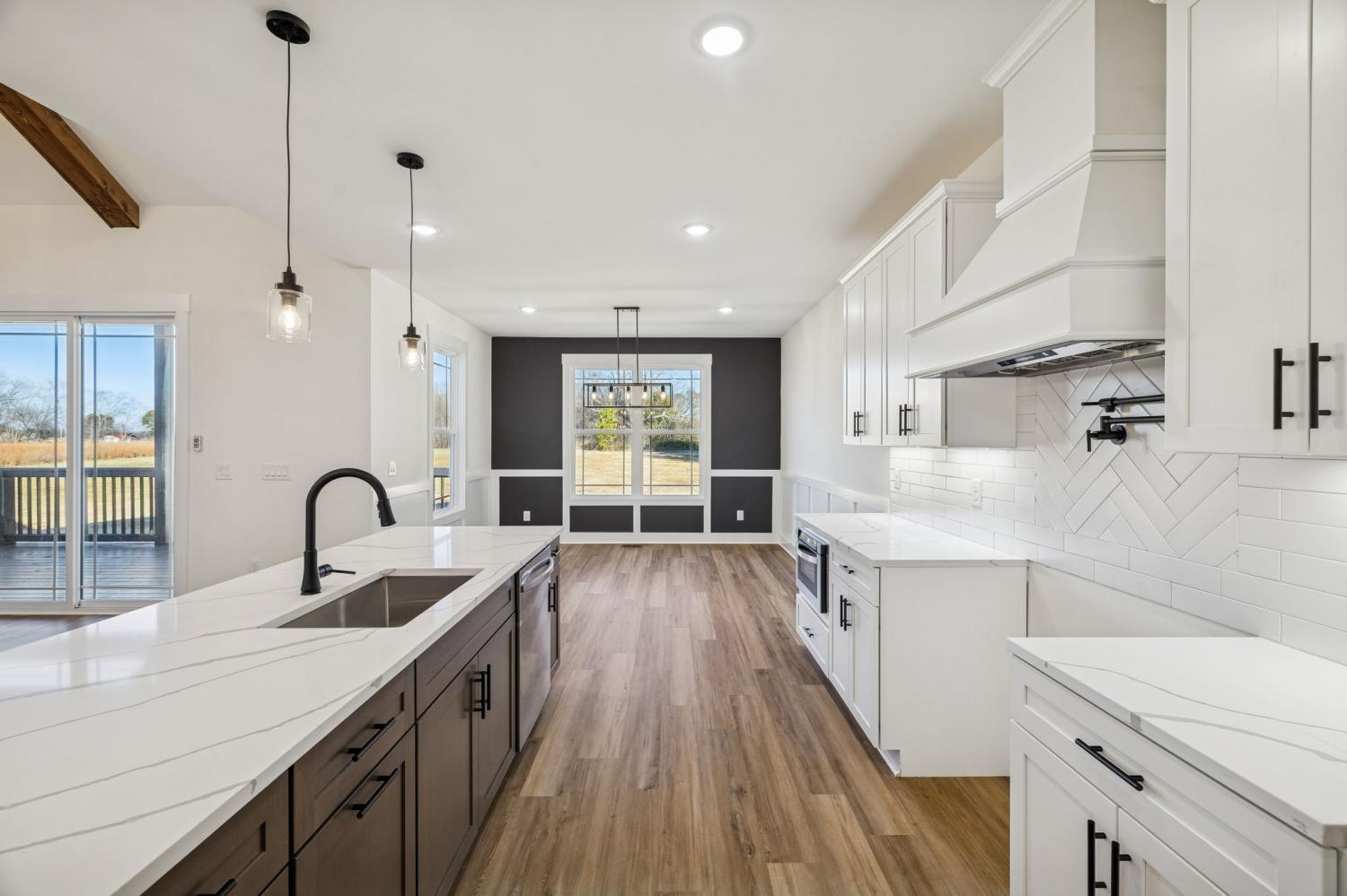 Beautiful new construction on 2 acres in Springfield, TN, offering open views of cattle from the front yard & a peaceful, tree-lined backdrop behind the home. This thoughtfully designed layout is filled with natural light & features cathedral ceilings with exposed beams in both the main living area & the primary bedroom, creating a warm, inviting atmosphere. The kitchen flows seamlessly into the living space & is ideal for cooking, gathering, and entertaining. Highlights include oversized cabinetry, a large island perfect for meal prep & hosting, a pot filler, and a custom vent hood. The living room is anchored by a fireplace, making it a comfortable space for everyday living or entertaining friends & family. The spacious primary suite offers custom built-in closets with accent lighting & a well-appointed bathroom with a separate soaking tub & tiled shower. Just off the primary bedroom is a dedicated space with washer and dryer hookups, providing the option for a second laundry area. The home also features a large main laundry room with soaking sink, ample storage, & a mud bench, along with a dedicated office. Upstairs includes a large bonus room, two additional bedrooms, & a full bath, offering flexible living space. Enjoy outdoor living on the covered back deck with cathedral ceilings & beautiful views. Smart-home features include separate Wi-Fi–enabled speaker zones for the living area, primary bedroom, & back porch. With ample storage throughout & a peaceful setting, this home offers modern comfort with room to gather, while enjoying rural living.