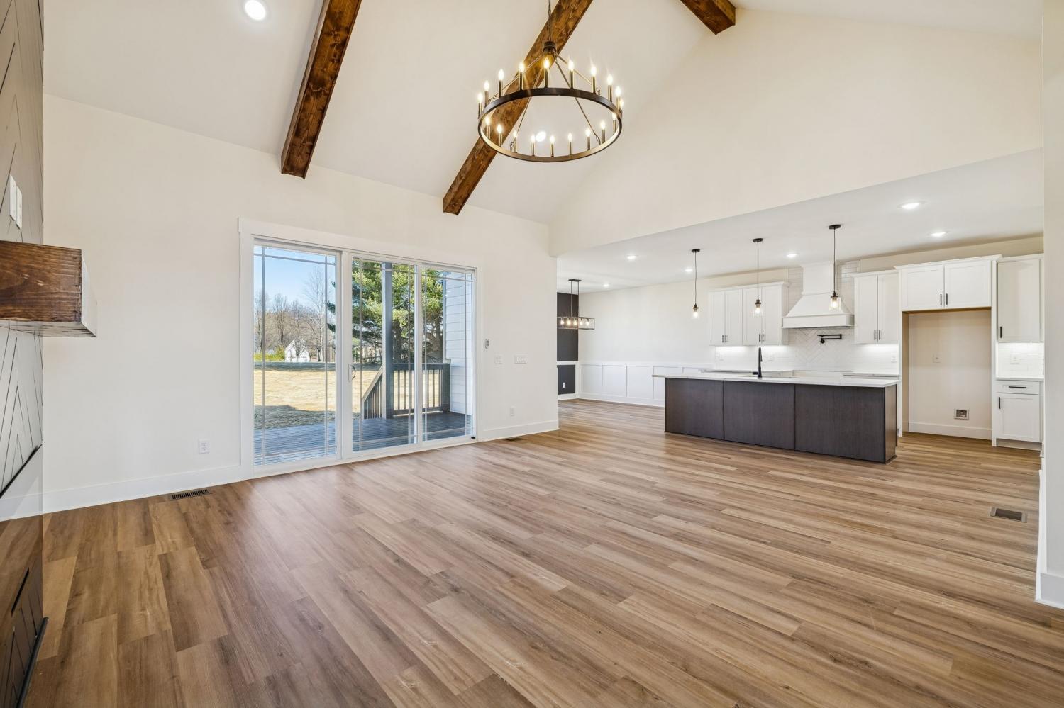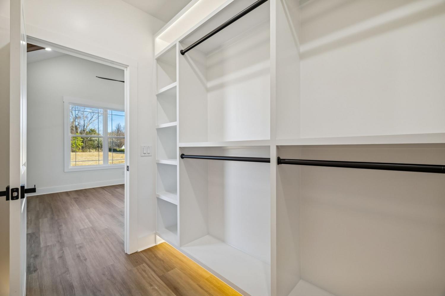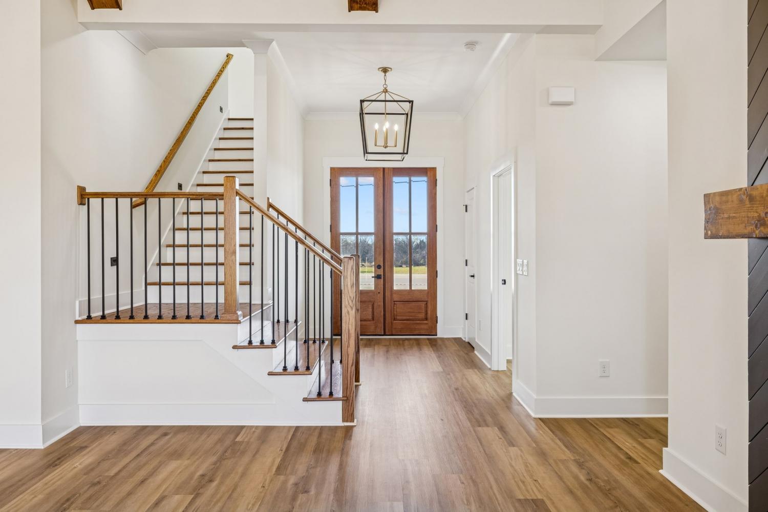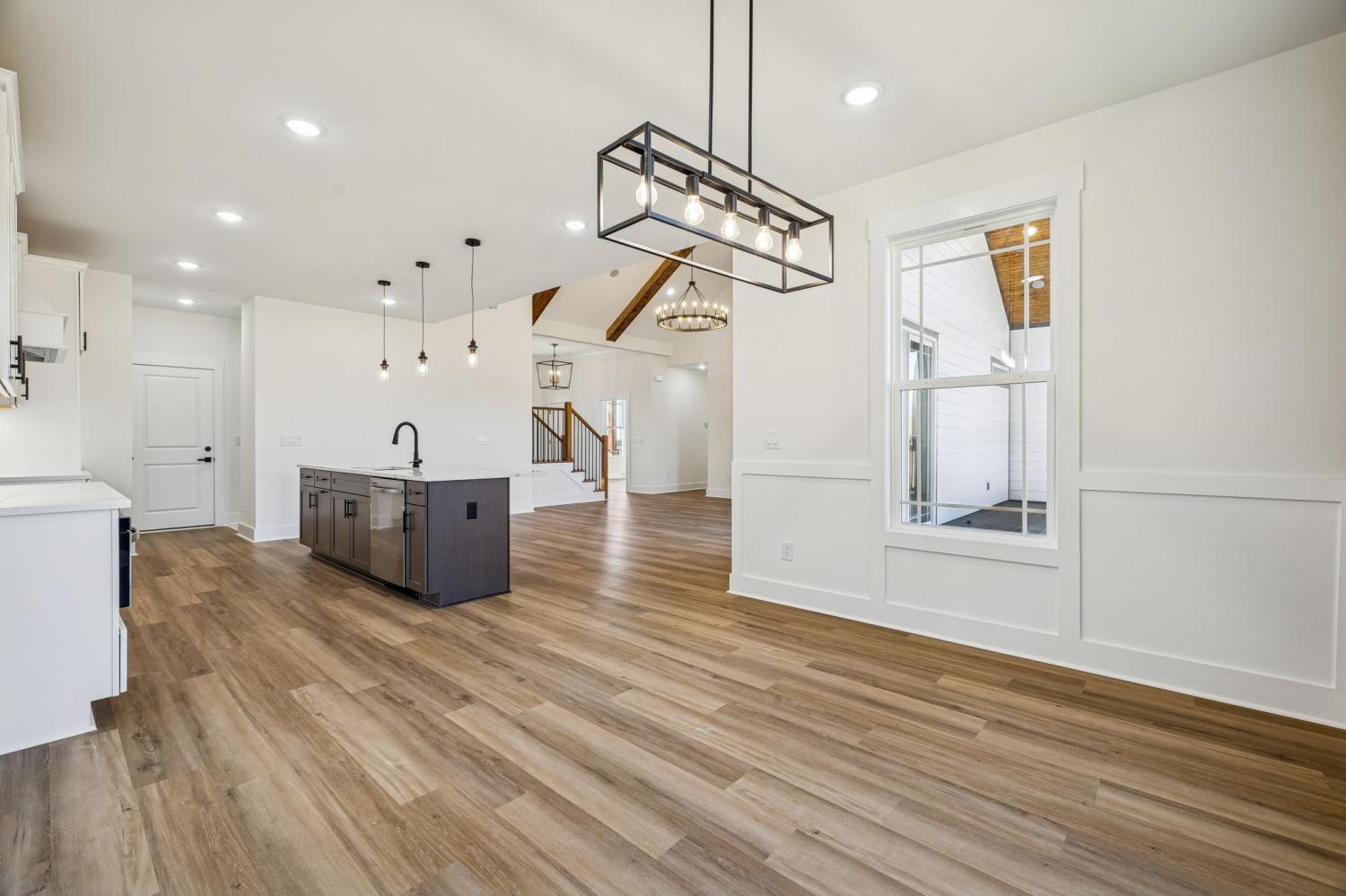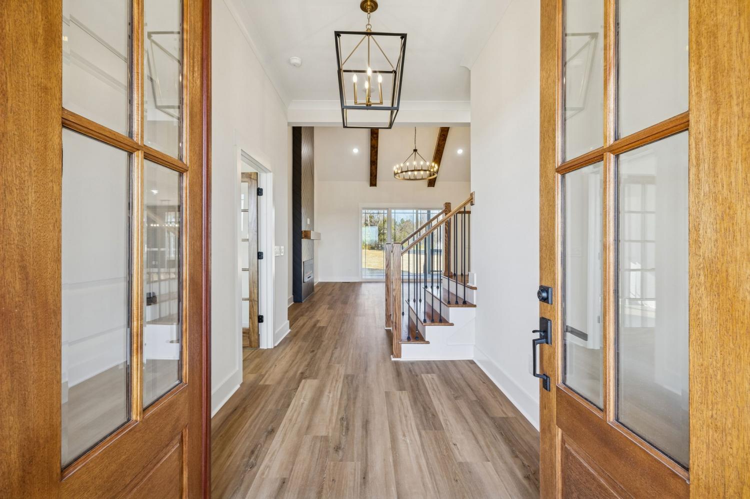 Beautiful new construction on 2 acres in Springfield, TN, offering open views of cattle from the front yard & a peaceful, tree-lined backdrop behind the home. This thoughtfully designed layout is filled with natural light & features cathedral ceilings with exposed beams in both the main living area & the primary bedroom, creating a warm, inviting atmosphere. The kitchen flows seamlessly into the living space & is ideal for cooking, gathering, and entertaining. Highlights include oversized cabinetry, a large island perfect for meal prep & hosting, a pot filler, and a custom vent hood. The living room is anchored by a fireplace, making it a comfortable space for everyday living or entertaining friends & family. The spacious primary suite offers custom built-in closets with accent lighting & a well-appointed bathroom with a separate soaking tub & tiled shower. Just off the primary bedroom is a dedicated space with washer and dryer hookups, providing the option for a second laundry area. The home also features a large main laundry room with soaking sink, ample storage, & a mud bench, along with a dedicated office. Upstairs includes a large bonus room, two additional bedrooms, & a full bath, offering flexible living space. Enjoy outdoor living on the covered back deck with cathedral ceilings & beautiful views. Smart-home features include separate Wi-Fi–enabled speaker zones for the living area, primary bedroom, & back porch. With ample storage throughout & a peaceful setting, this home offers modern comfort with room to gather, while enjoying rural living.