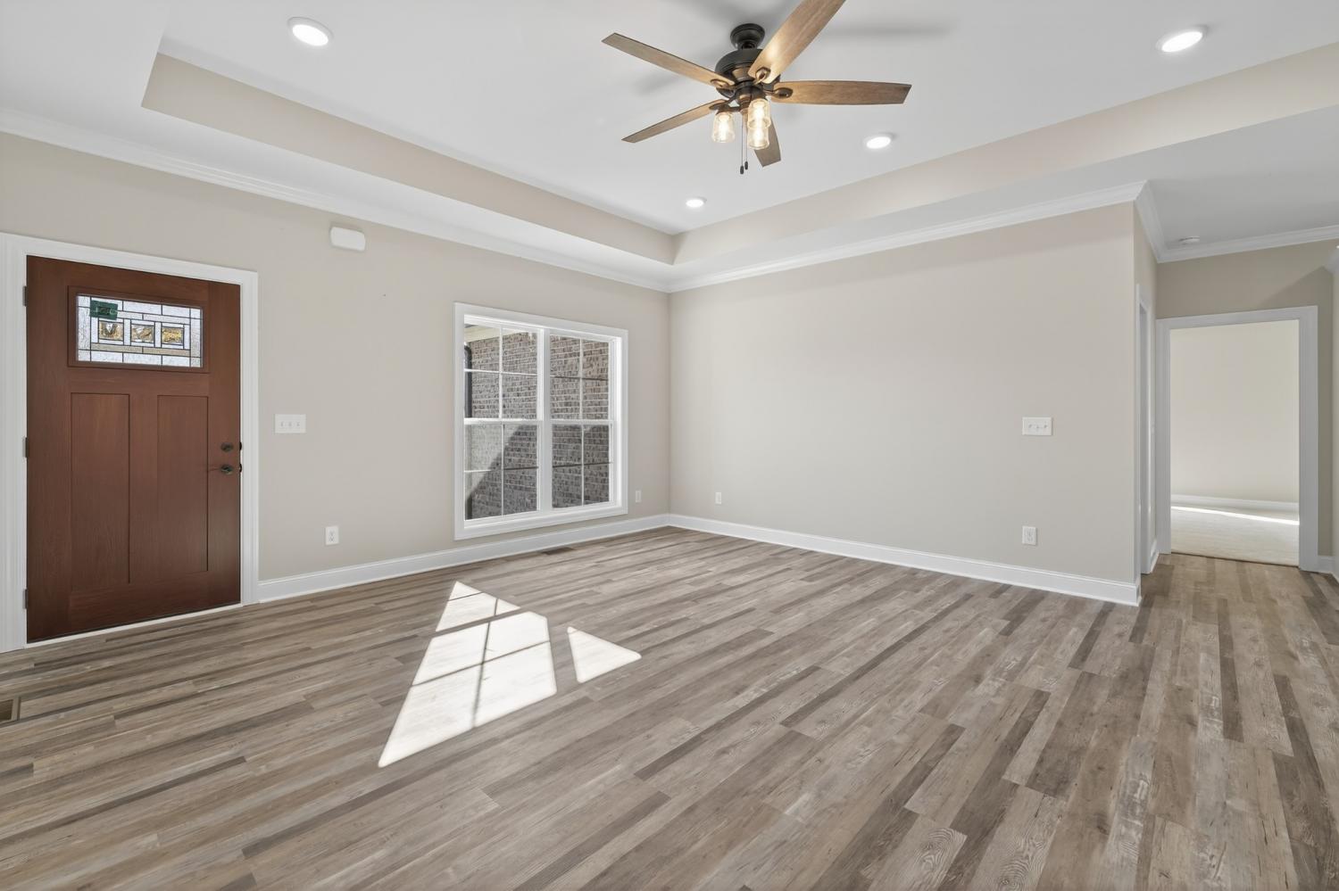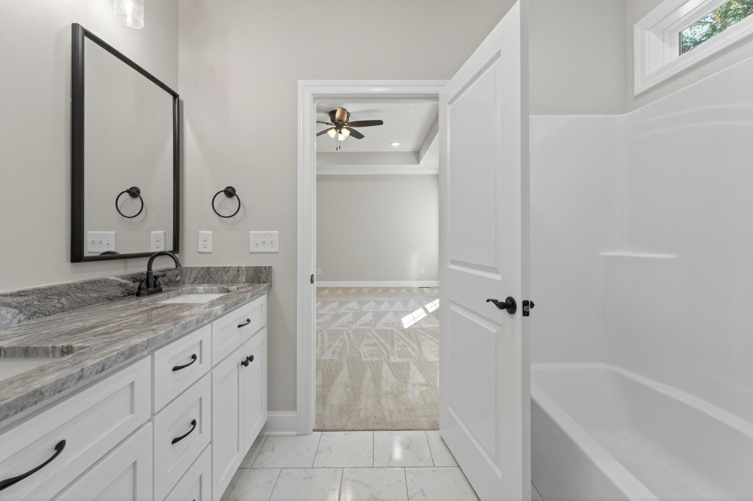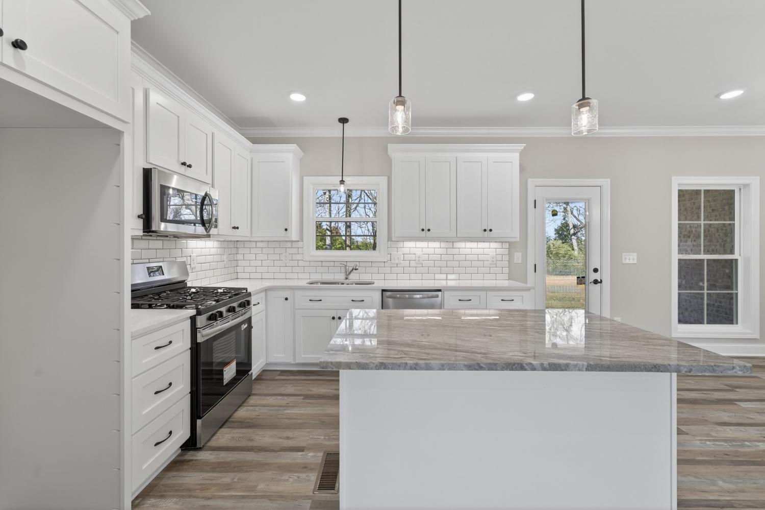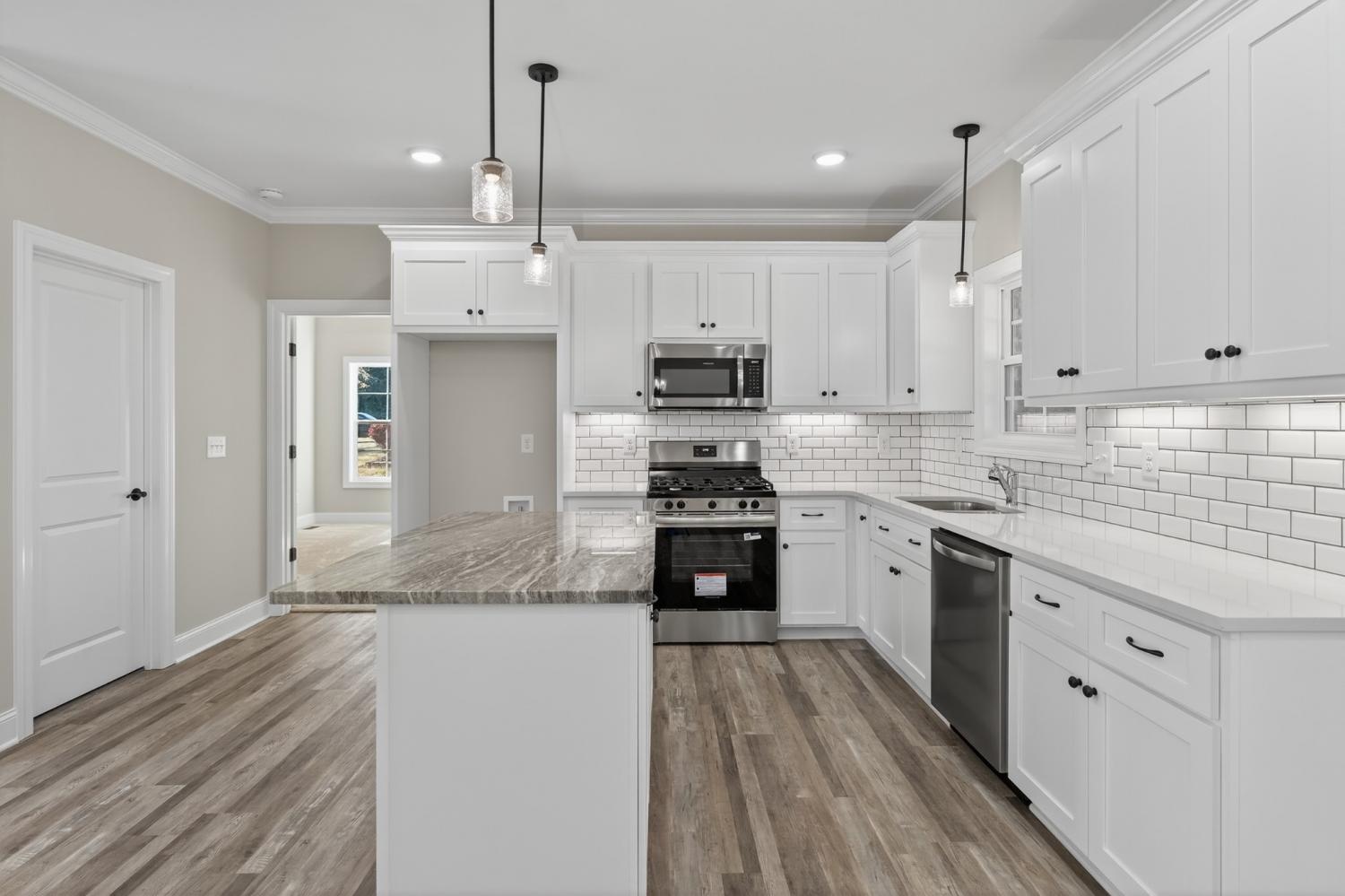 Brand-new all-brick construction offering modern comfort and timeless style. This beautifully crafted home features well-designed living space on a generous 0.3-acre level homesite. Step inside to an inviting open layout accented by stone countertops, quality finishes, and abundant natural light. The spacious kitchen flows seamlessly into the main living area, creating the perfect setting for everyday living or entertaining. The private master suite is thoughtfully appointed with a walk-in closet and a double-vanity bath, providing a relaxing retreat at the end of the day. Enjoy outdoor living on the covered, private back porch, ideal for quiet mornings or evening gatherings. An attached 2-car garage with an epoxy floor adds convenience and extra storage. This stunning new construction home combines comfort, style, and modern amenities—ready for you to move in and make it your own.