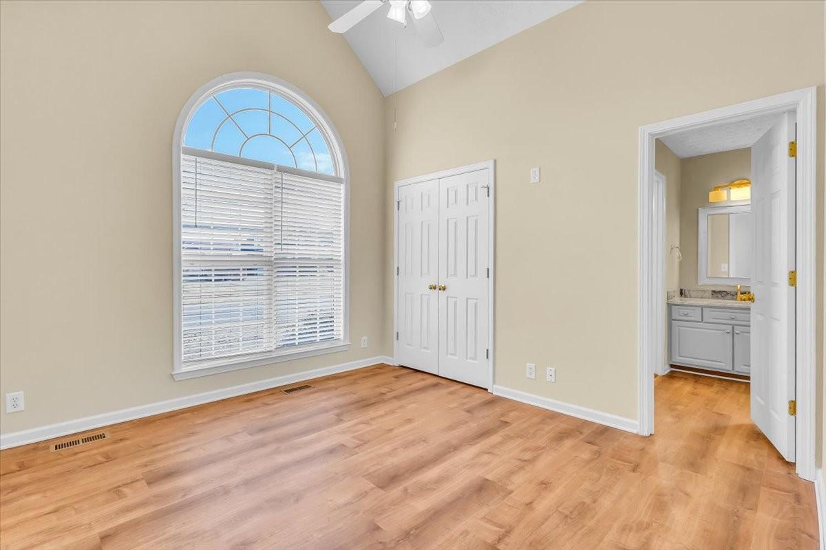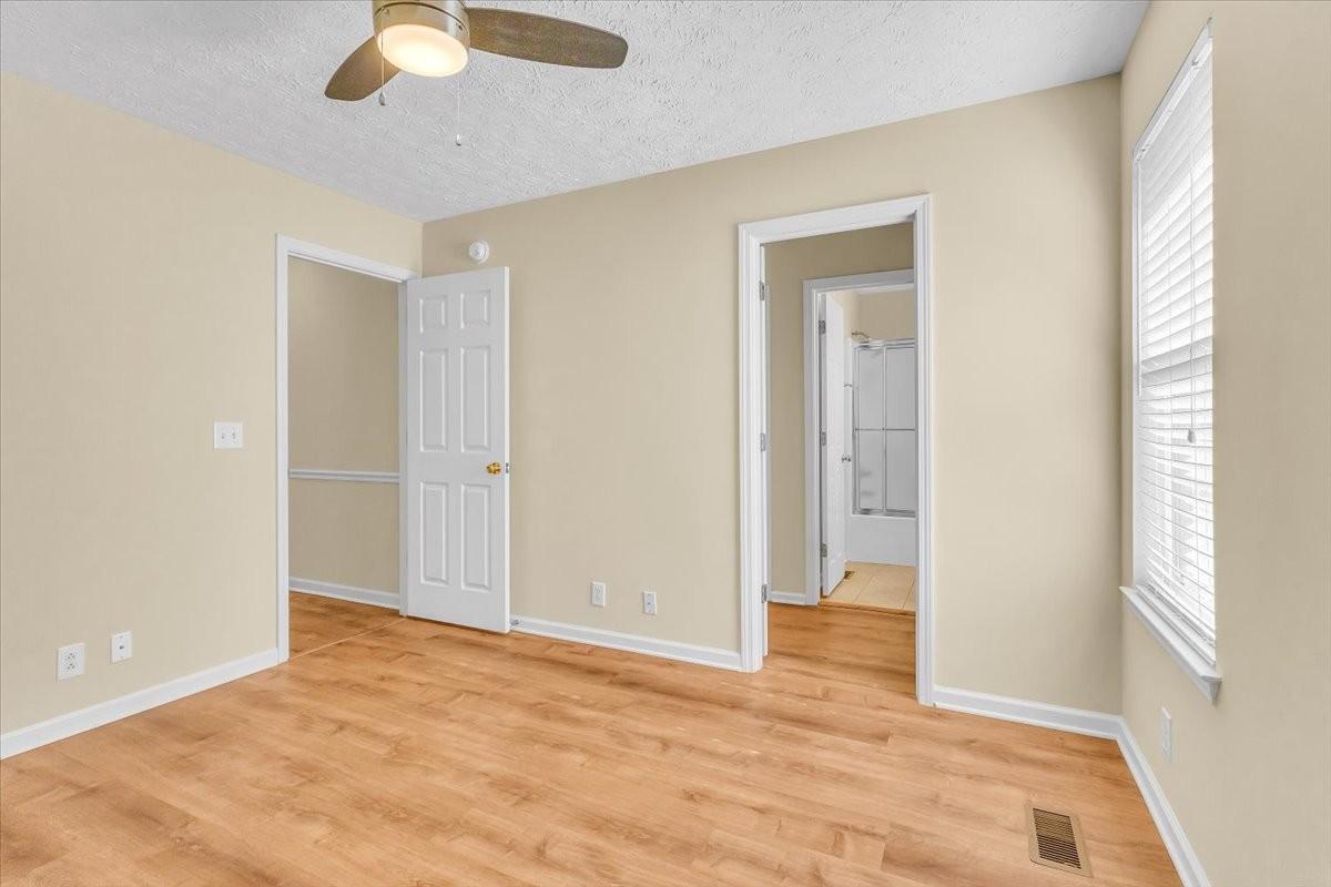Meticulously maintained and upgraded home in Huntington Place! Three bedrooms down with a fourth bedroom and bonus room upstairs. Upgrades galore! Newer flooring in living area, bedrooms and primary suite. New energy efficient 2 stage HVAC system and water heater. Kitchen boasts granite countertops, subway tile backsplash, crown molding, upgraded lighting, pullouts and more. Spacious primary bedroom suite has new custom tile shower and granite countertops. Private backyard with a covered patio. Storage shed offers extra space with electricity. Driveway has been extended for extra parking. Garage is heated and cooled.