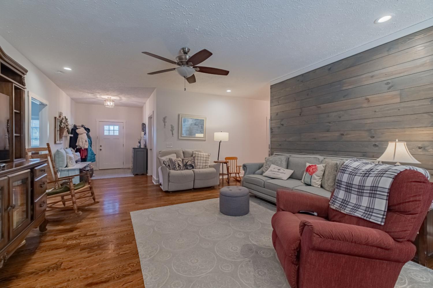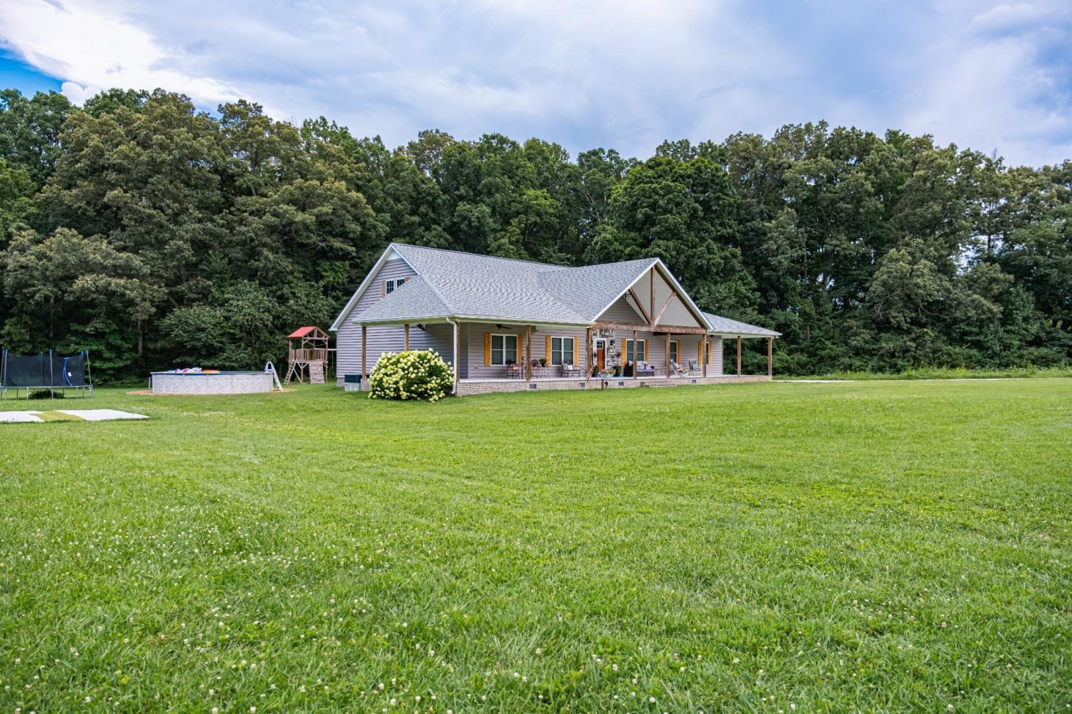 Custom-built in 2018, this beautifully designed home offers space, privacy, and modern comfort on 8.5± acres. Tucked away for a peaceful setting yet conveniently located just minutes from I-24, shopping, and dining, this property gives you the best of both worlds. Enjoy county taxes only and the rare bonus of paved walking access to Old Stone Fort State Park and its scenic hiking trails. The interior features 9-foot ceilings throughout, an open-concept design, and wood flooring that creates a warm, inviting feel. The kitchen is both functional and stylish with granite countertops and ample workspace, flowing naturally into the main living and dining areas—perfect for gatherings of any size. Oversized front and back porches extend your living space outdoors, offering ideal spots for morning coffee or evening entertaining. The primary suite includes a spacious walk-in closet, while the secondary bedrooms share an oversized connecting closet, adding smart storage and convenience. A separate home office supports today’s work-from-home lifestyle, and the garage bonus/exercise room with 11-foot ceilings provides a versatile space for fitness, hobbies, or additional storage. Additional features include an attached 2-car garage (21x29), an above-ground pool, and a fully floored attic that runs the length of the home. With electrical and plumbing already in place, the attic offers excellent potential for future expansion. The laundry room is thoughtfully designed with built-in storage and a folding station. Located just outside the city limits, this property delivers the freedom of country living while keeping you close to town conveniences. Seller’s preferred lender is offering up to a 1% lender credit, making this exceptional home an even better value.