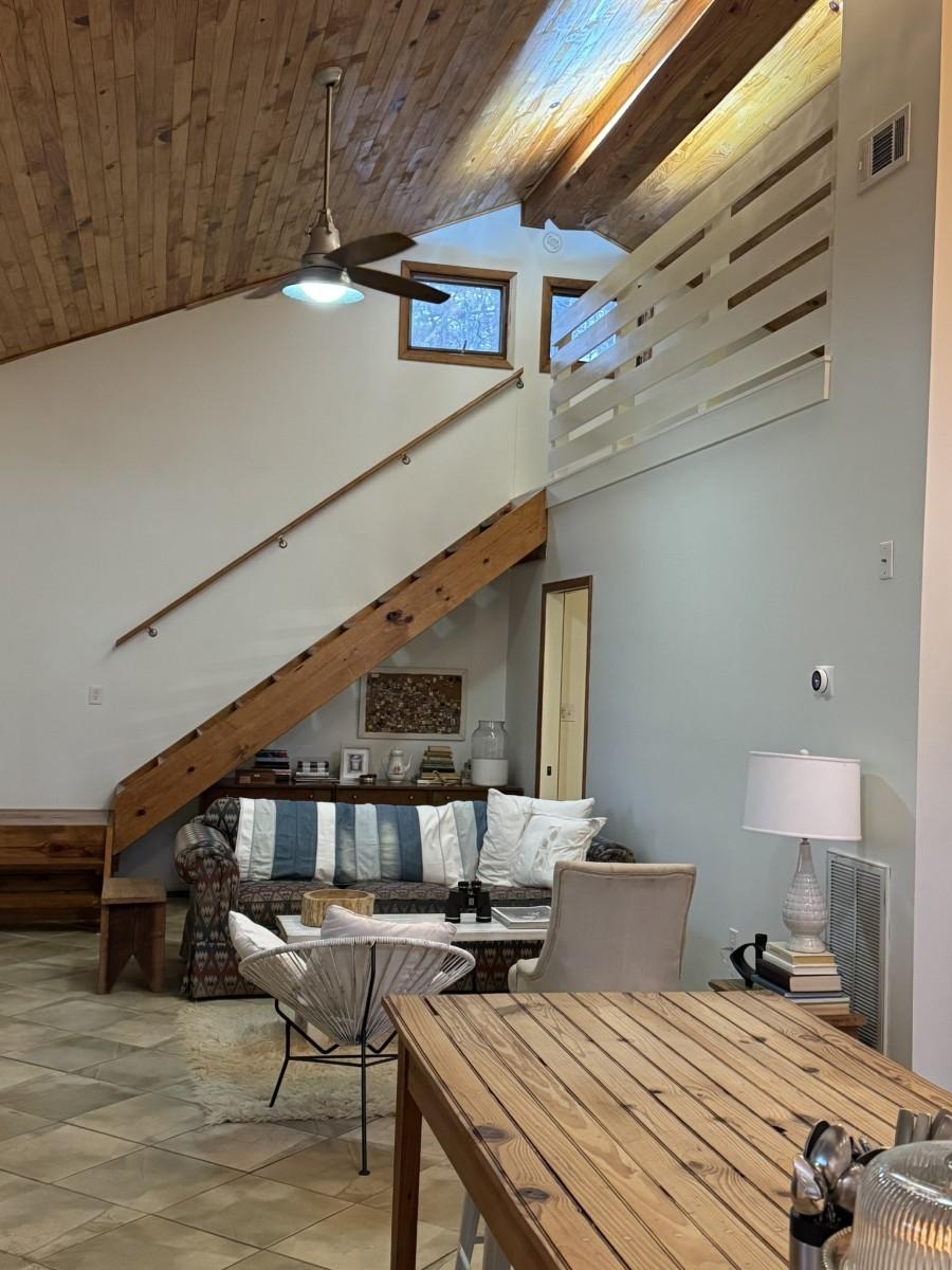 Escape to this private 40-acre retreat in the peaceful Rhodesville community, conveniently positioned near Pickwick Lake, Waterloo’s renowned off-road trails, and the shopping and dining of Florence, Alabama. A gated entrance leads to a secluded rustic cabin surrounded by mature trees, offering both privacy and convenience. The cabin features an open-concept living space with vaulted pine ceilings, a loft overlooking the living area, and a wraparound screened porch ideal for relaxing or entertaining. The master suite includes a modern tiled bathroom with a luxury rain shower system. A chef-inspired kitchen anchors the home, showcasing a 60-inch Vulcan commercial gas range, farmhouse sink, butcher block countertops, and stainless appliances—perfect for hosting gatherings. An unfinished basement provides flexible space for a workshop or storage. With walking and riding trails, extensive road frontage, and thoughtful upgrades throughout, this unique property is well-suited for a recreational getaway, homestead, or weekend retreat.