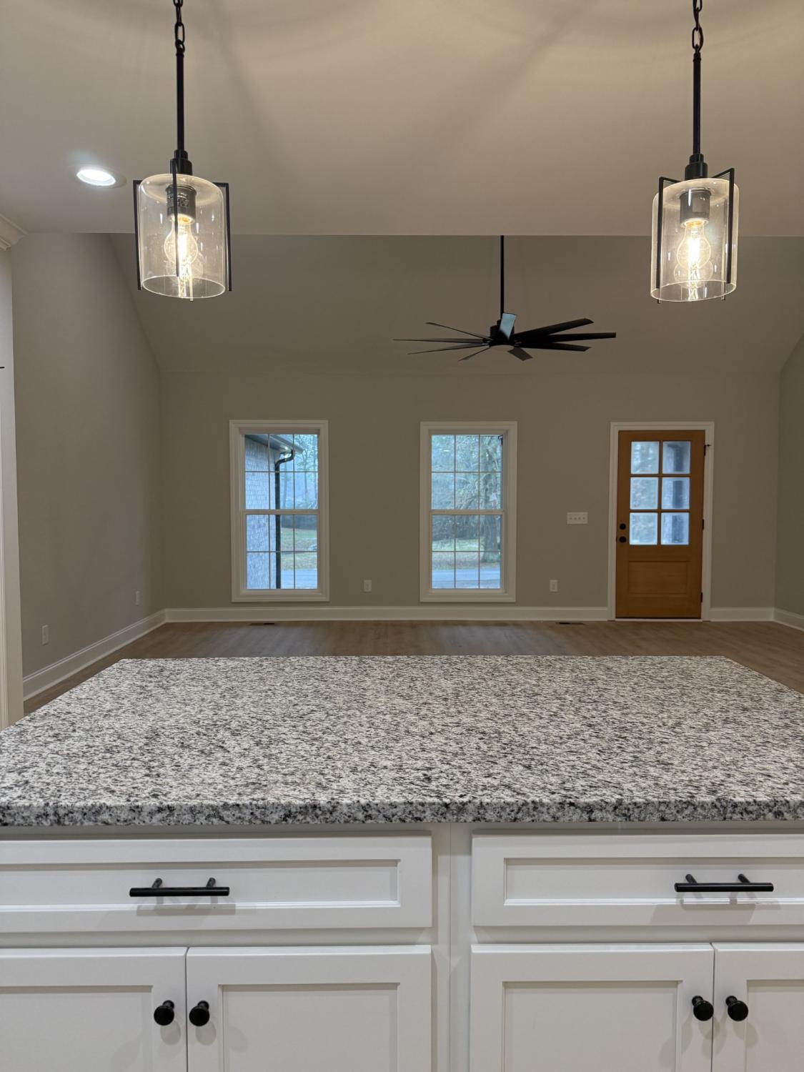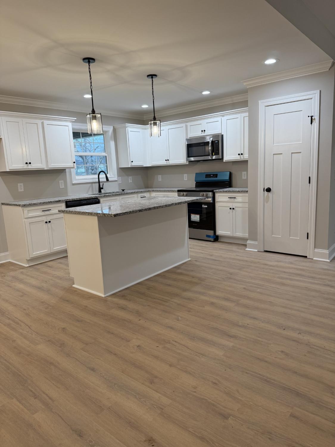Beautiful New Construction 3 bedroom, 2 bathroom open floor plan home with bonus room and $10,000 in closing cost assistance!!! This stunning property has upgrades throughout featuring a vaulted ceiling in the living room, custom lighting, granite countertops in kitchen and bathrooms, soft close cabinets, stainless steel appliances, farm style sink, pantry, luxury vinyl plank waterproof flooring, marbled tile shower and flooring in wet areas, moisture resistant mirrors in bathrooms, trey ceiling and large walk-in closet in primary bedroom. The exterior is just as impressive with a spacious 0.9 acre lot, covered front and back porches, in a beautiful neighborhood located across from the golf course.