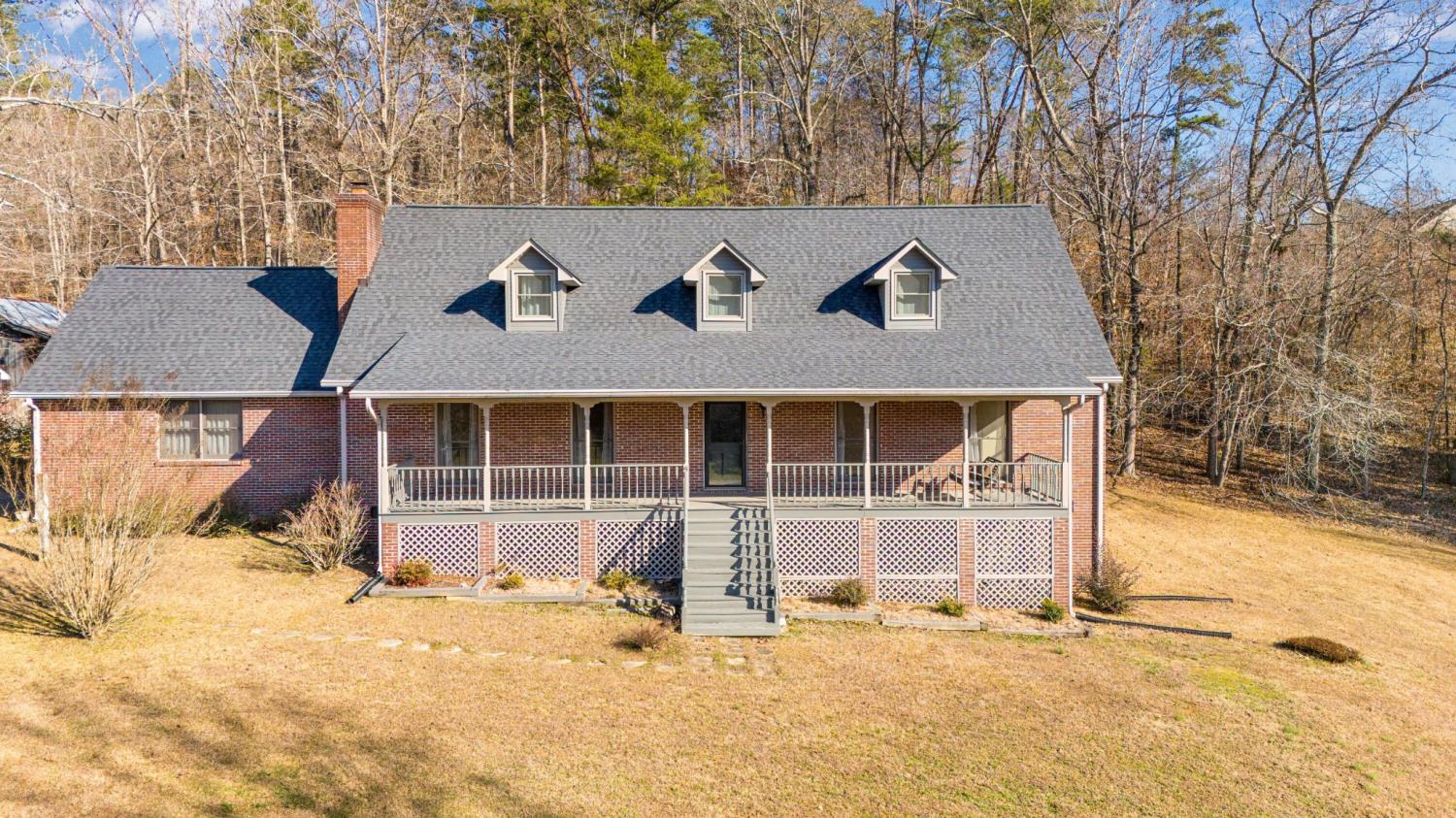 This all brick home has 4 bedroom and 3 bathrooms and is situated on 2.43 acre. The front porch which spans the front of the home is a wonderful area it sit and relax and enjoy the view of the surrounding hills. Also included is a small workshop/storage shed and 1 room primitive cabin.