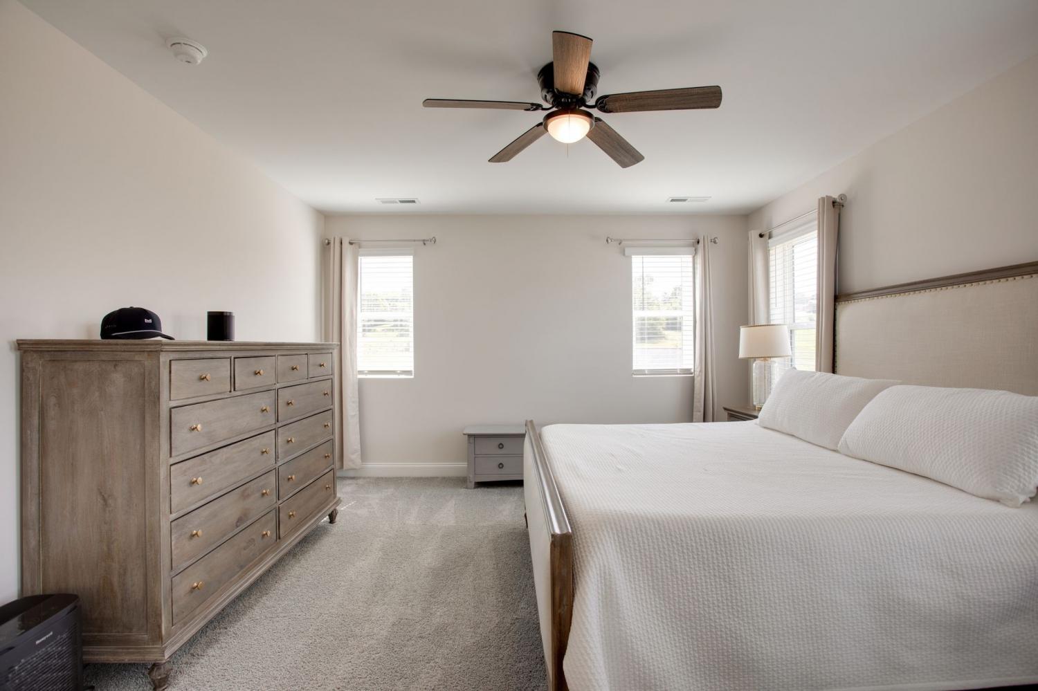 The Hopewell’s open great room and dining area are Ideal for gathering with friends and family, while the adjacent gourmet kitchen with HUGE island allows you to interact with guests without interrupting meal prep. The kitchen boasts ample windows & a massive amount of counter space, plus a butler's pantry & walk-in pantry. This home features a main level bedroom and full bath, along with an amazing sunroom and large patio. Upstairs, enjoy a spacious loft and three bedrooms, including a stunning primary suite with an immense shower & walk-in closet.